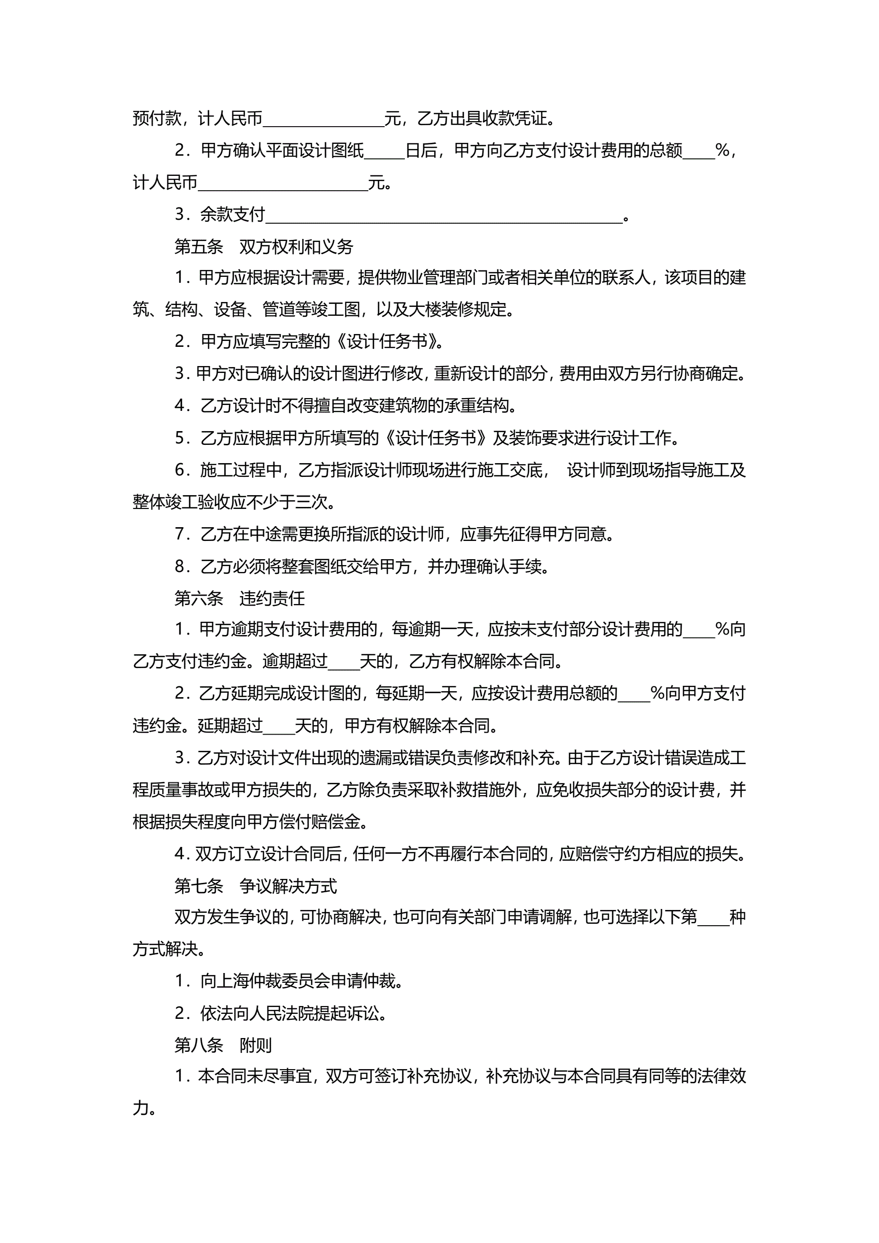 >上海市室内设计合同2011版