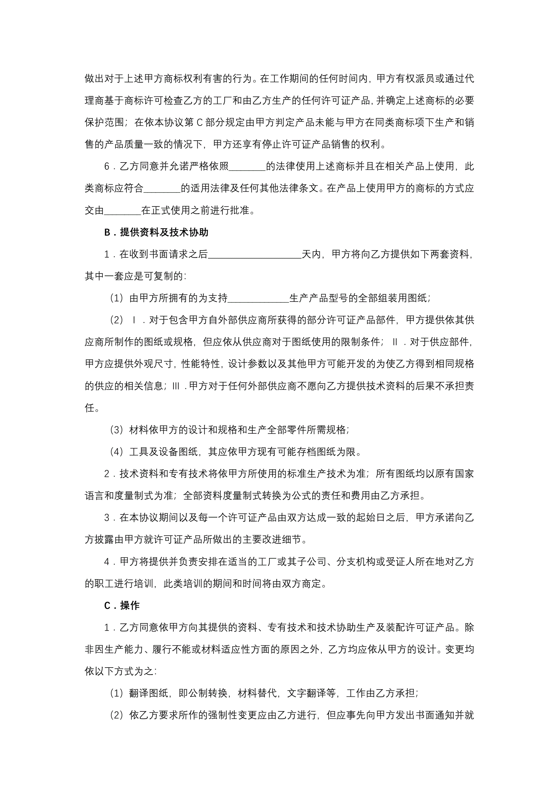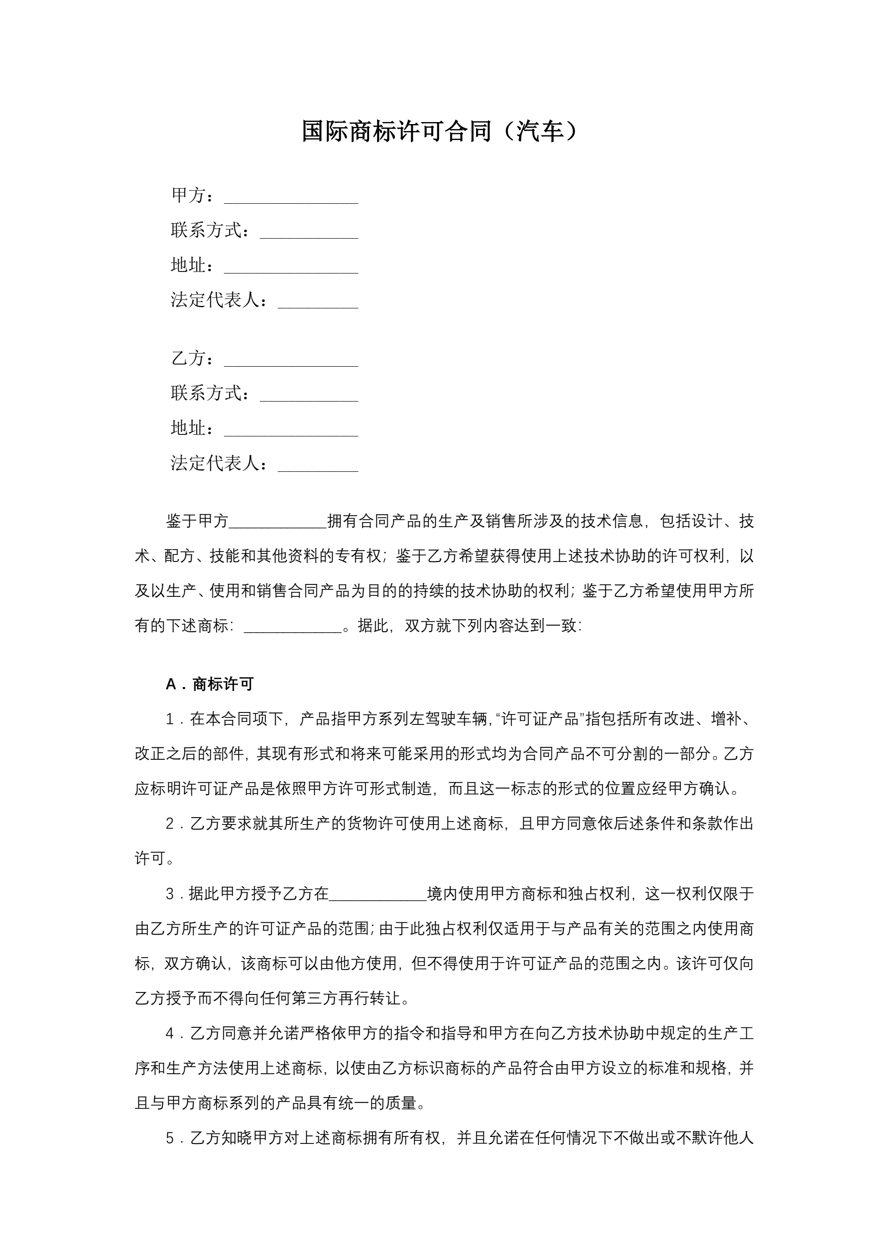 国际商标许可合同(汽车)