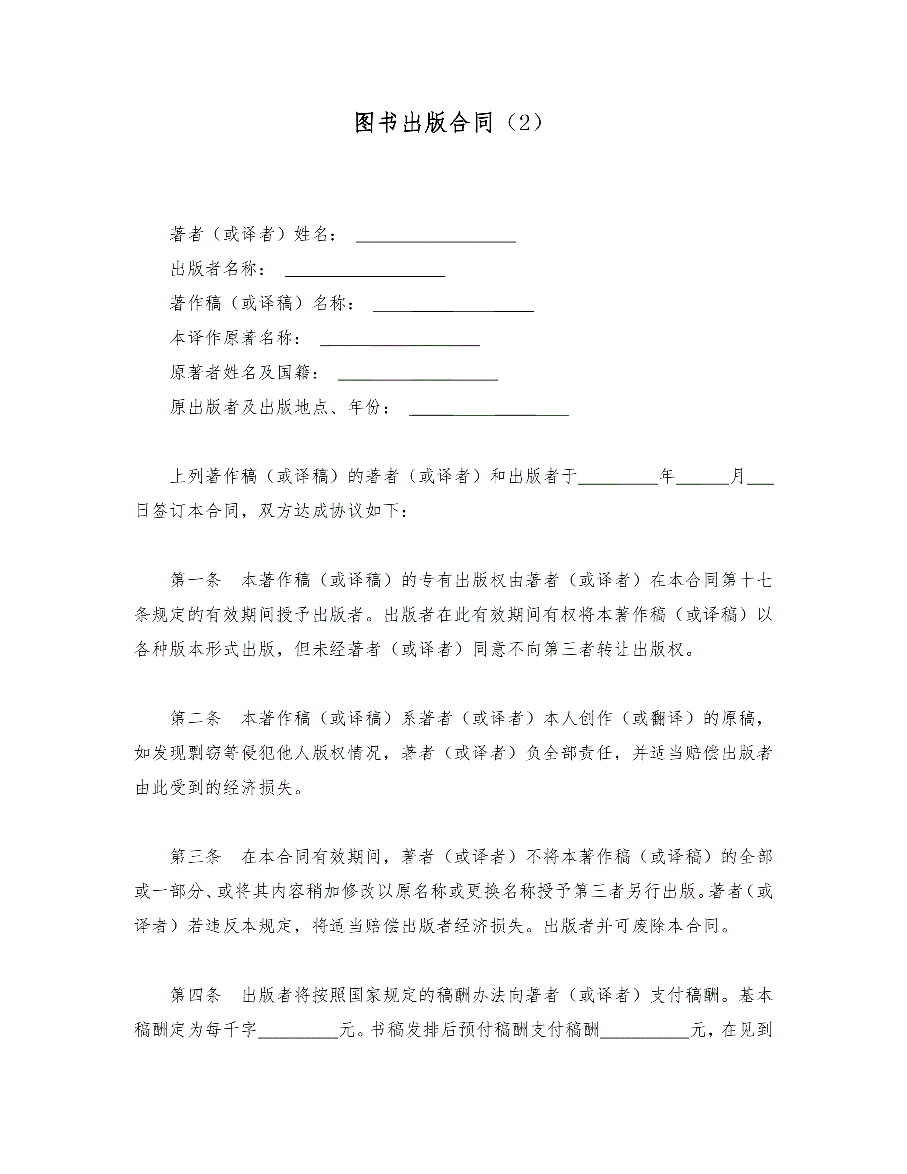 >图书出版合同(2)