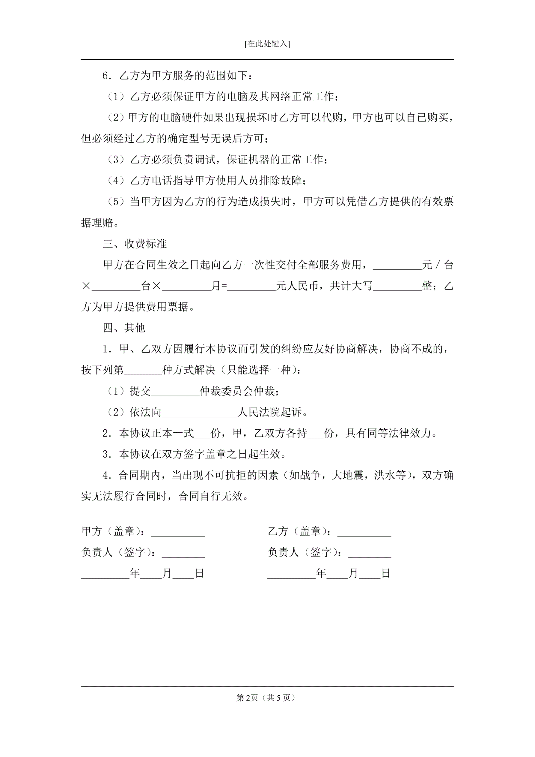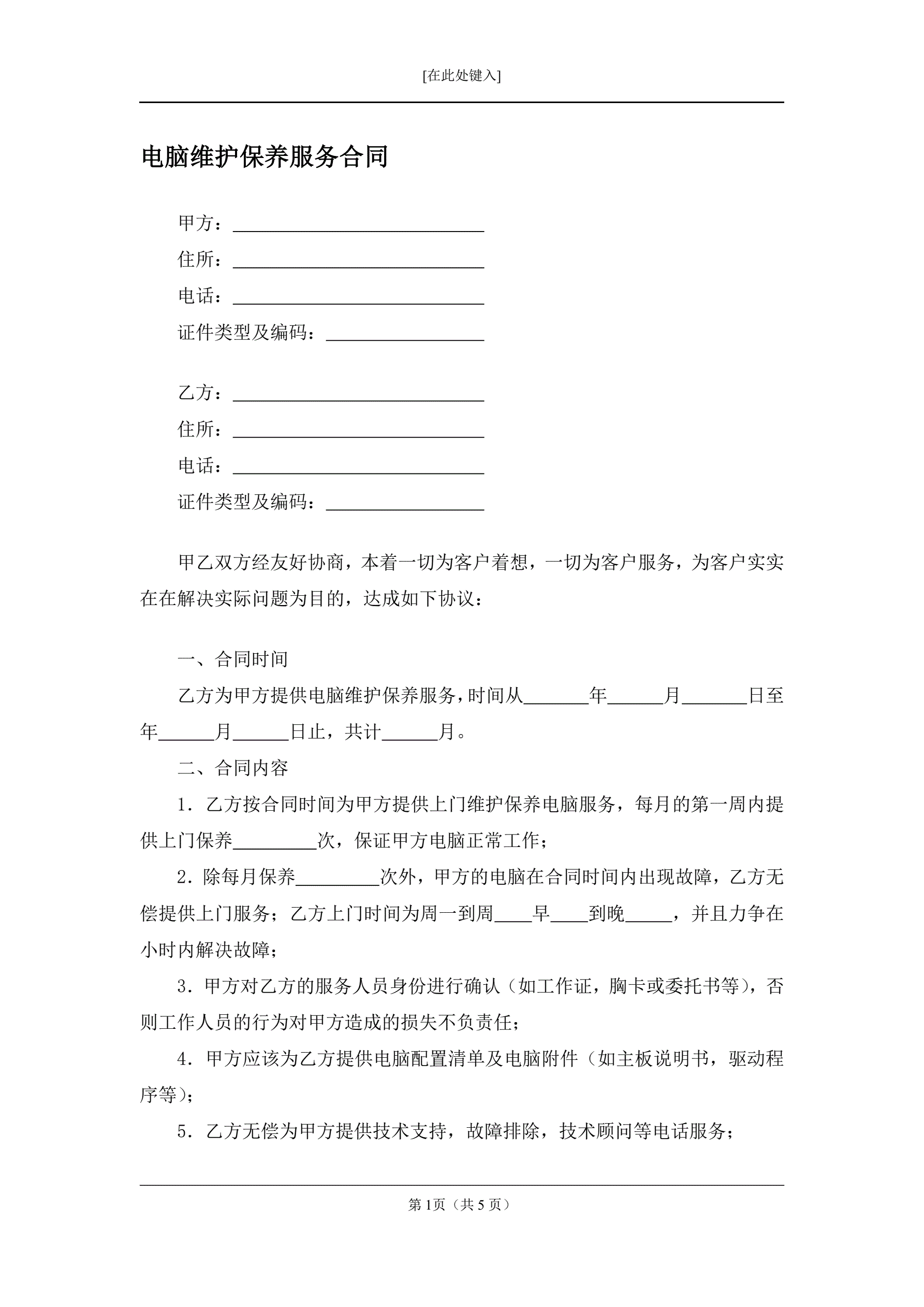 电脑维护保养服务合同