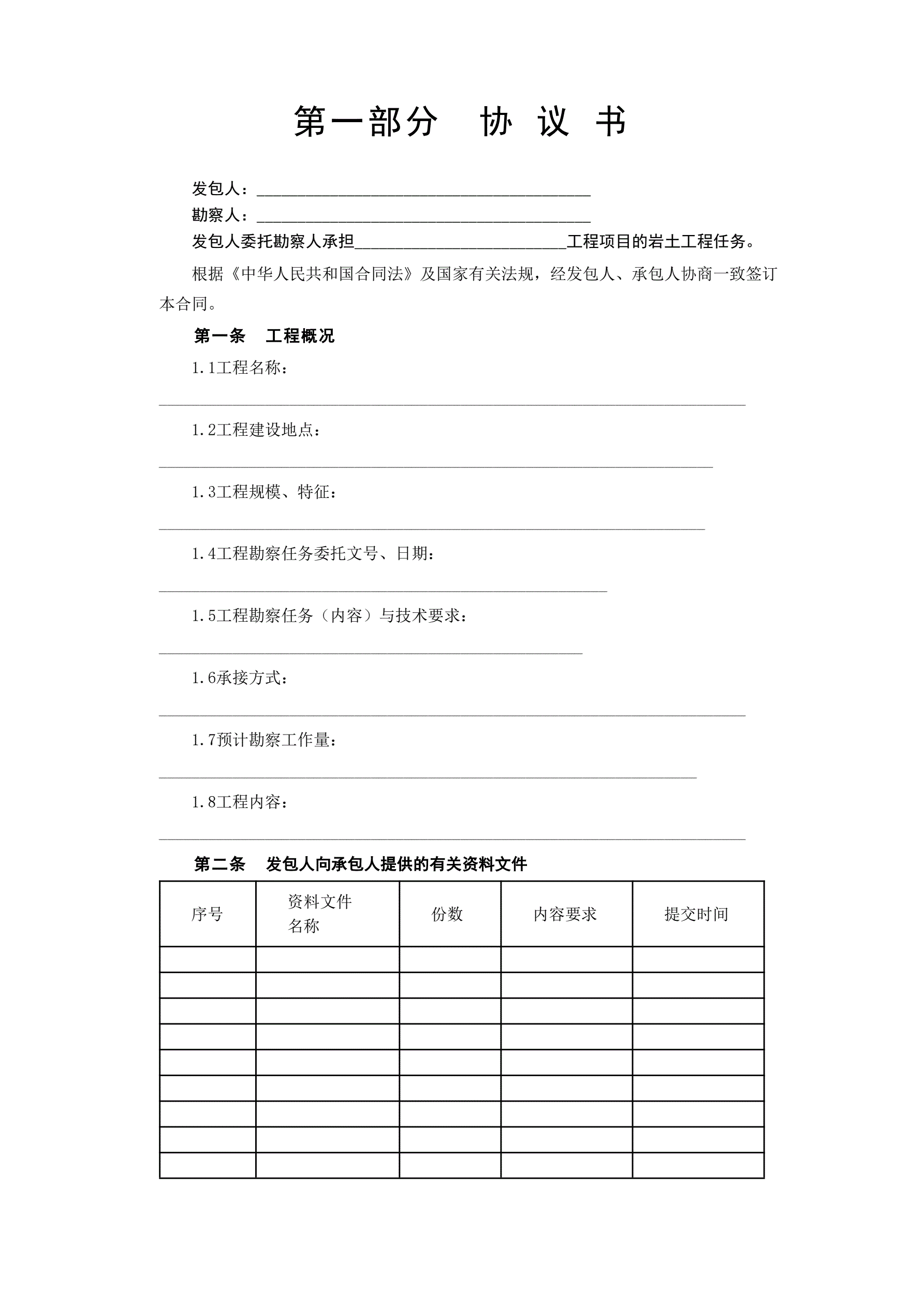 >建设工程勘察合同[岩土工程设计、治理、监测]