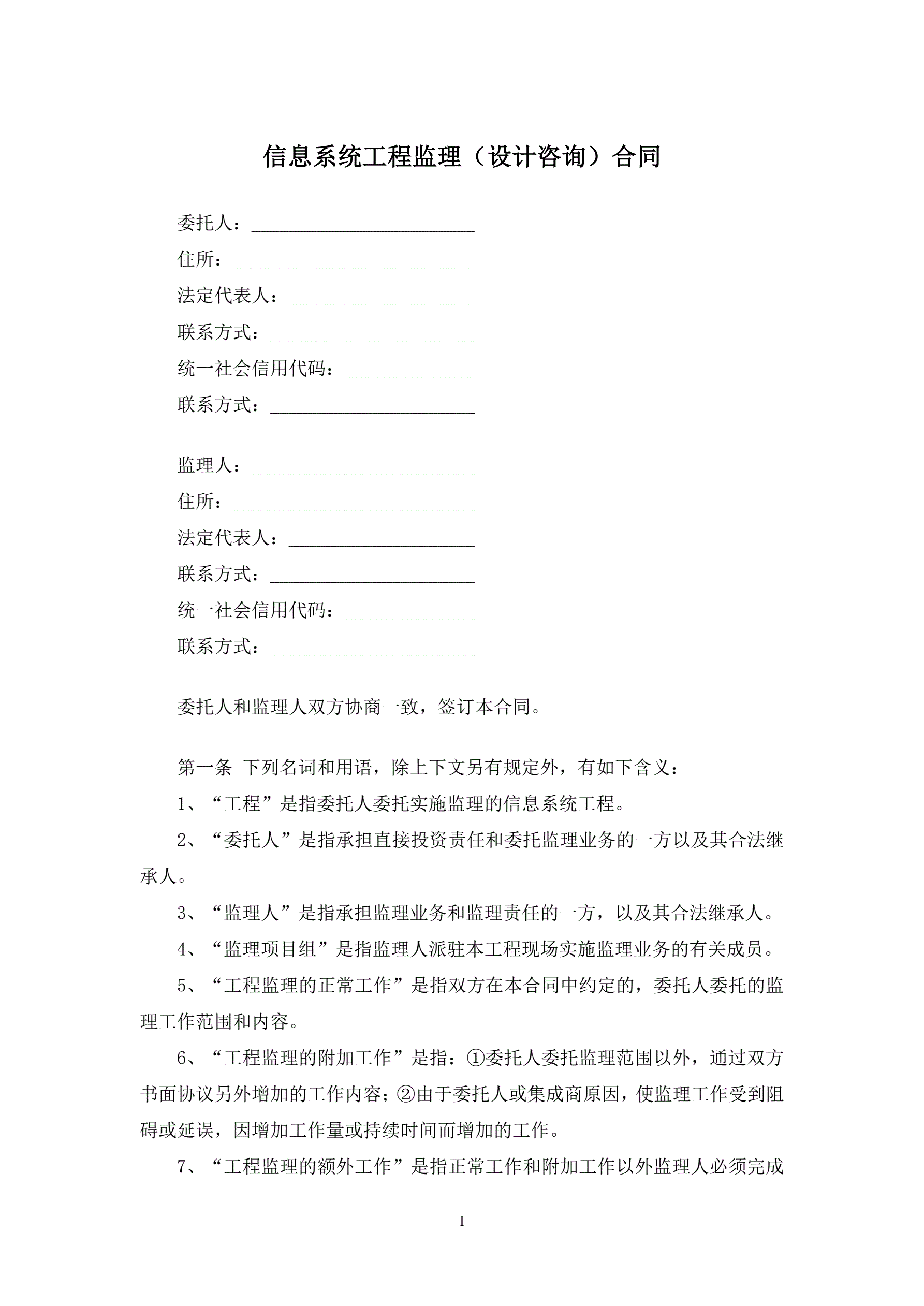 合同名称:信息系统工程监理(设计咨询)合同