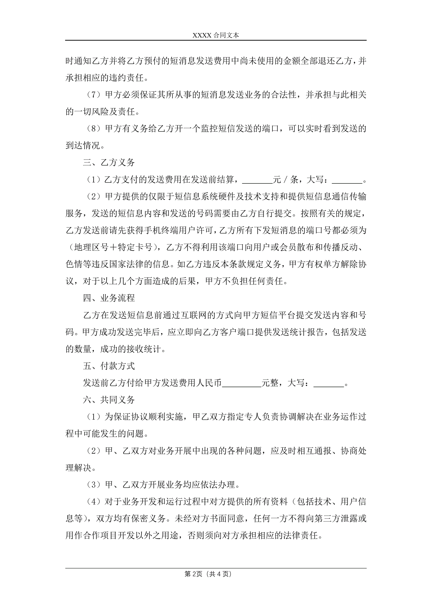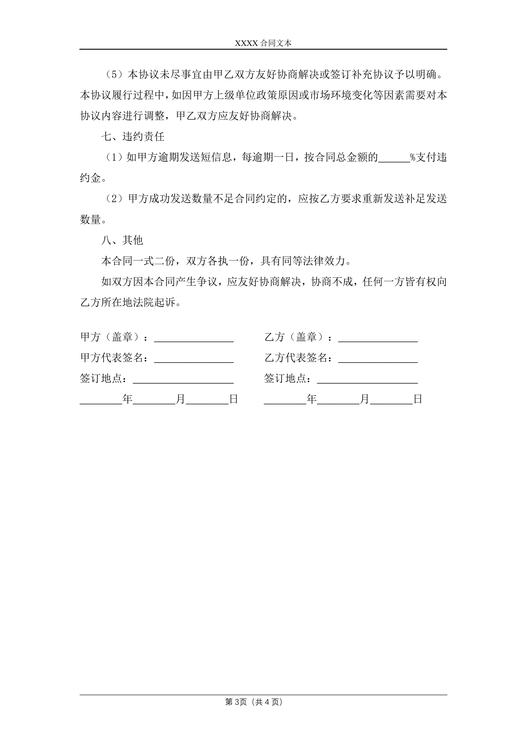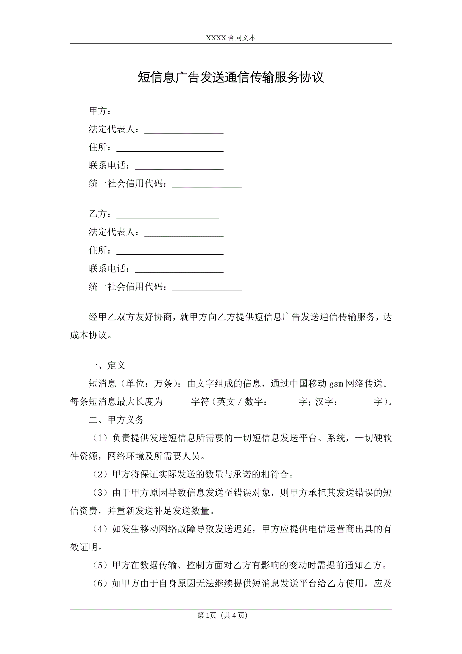 短信息广告发送通信传输服务协议