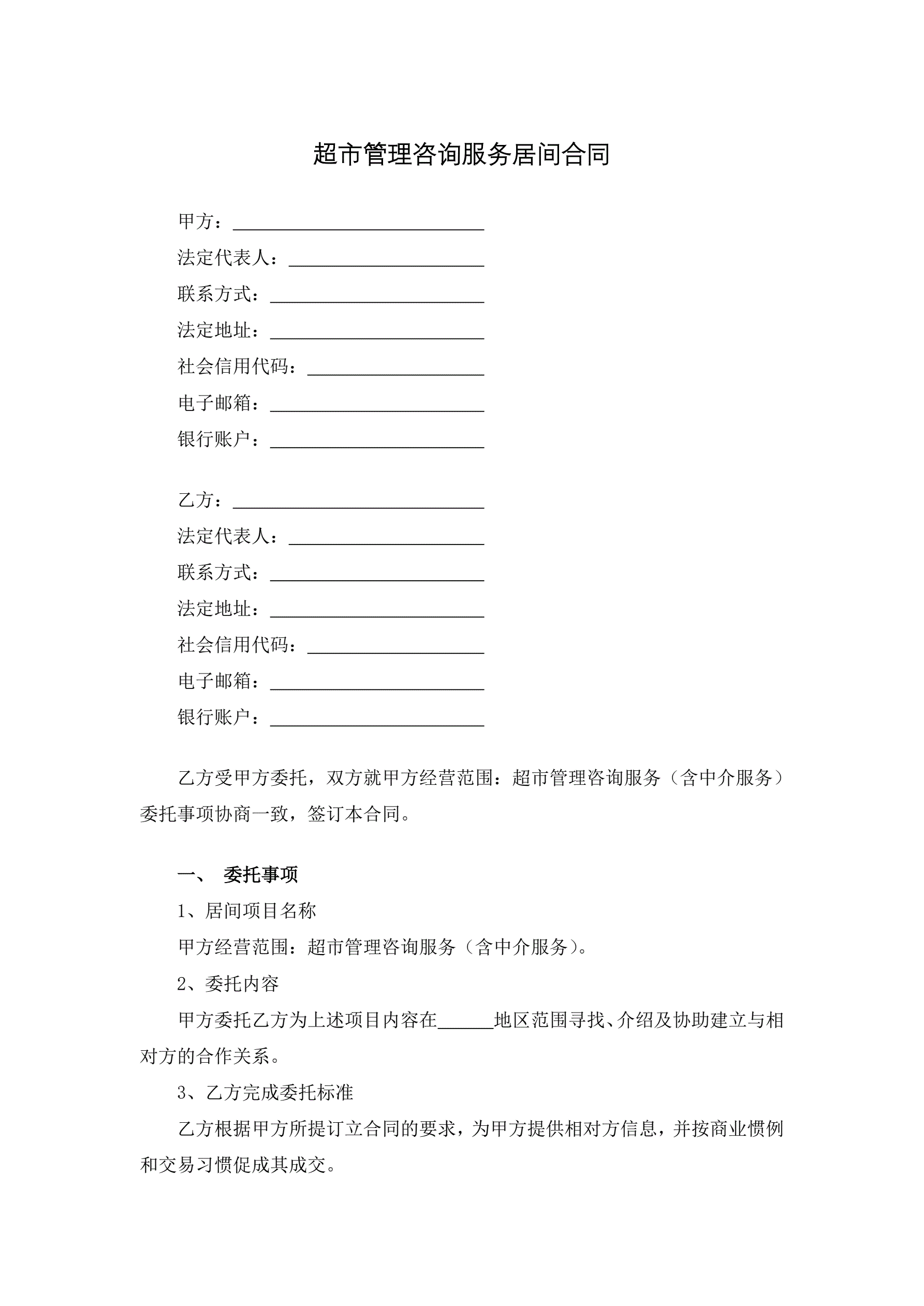 >超市管理咨询服务居间合同