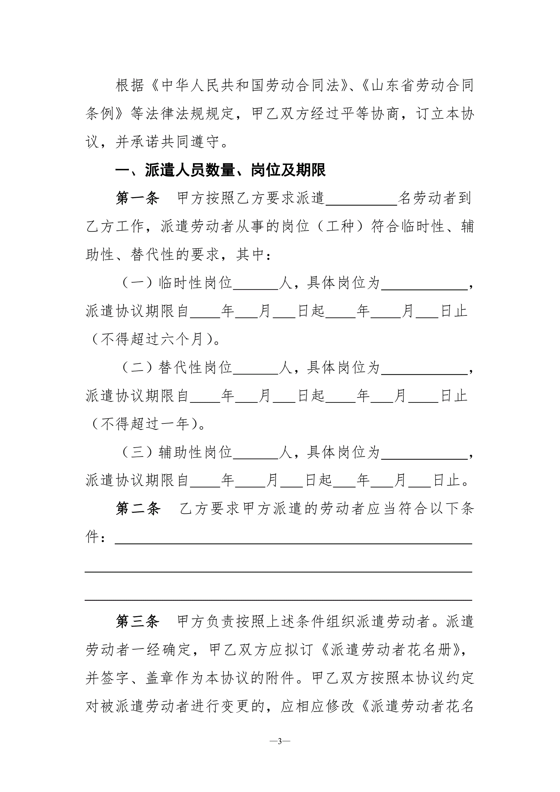 >劳务派遣协议示范文本