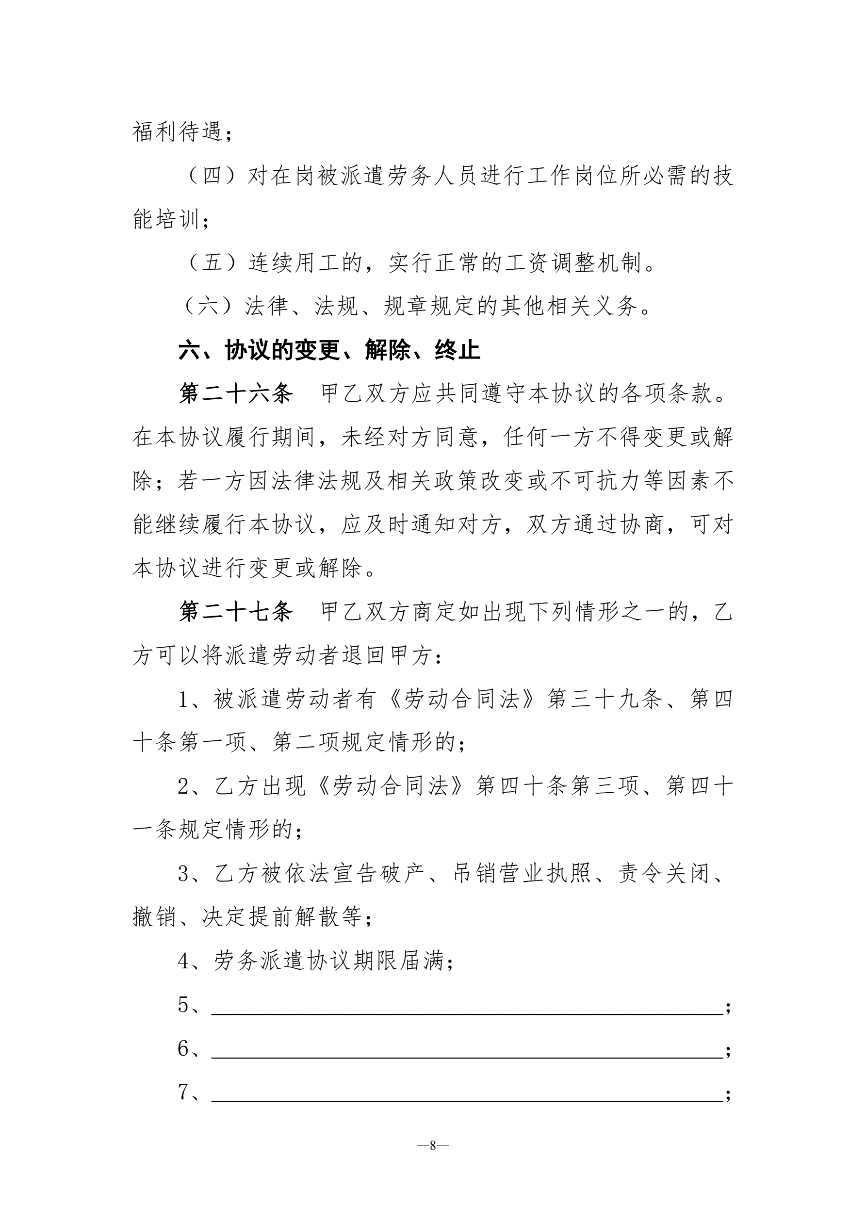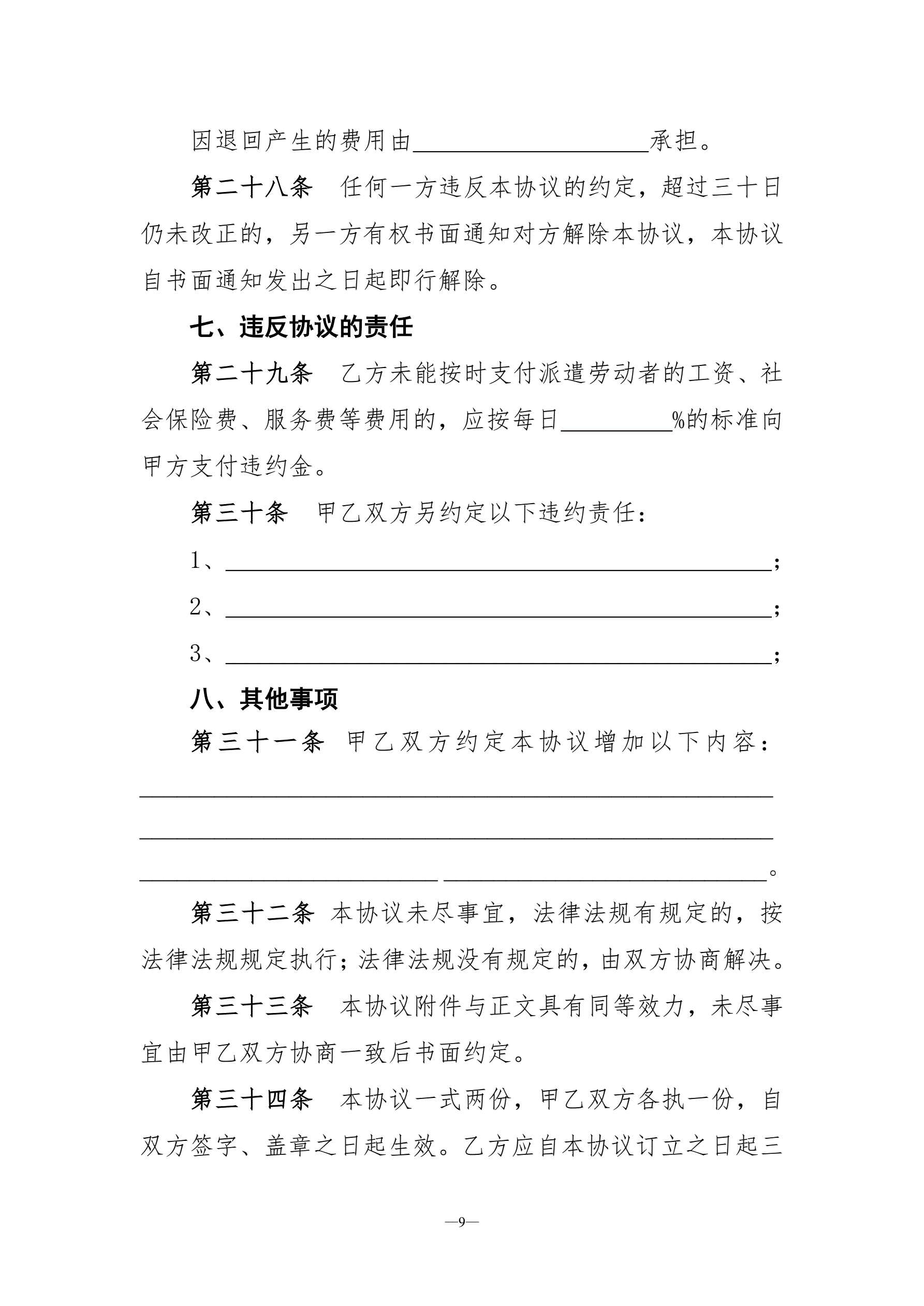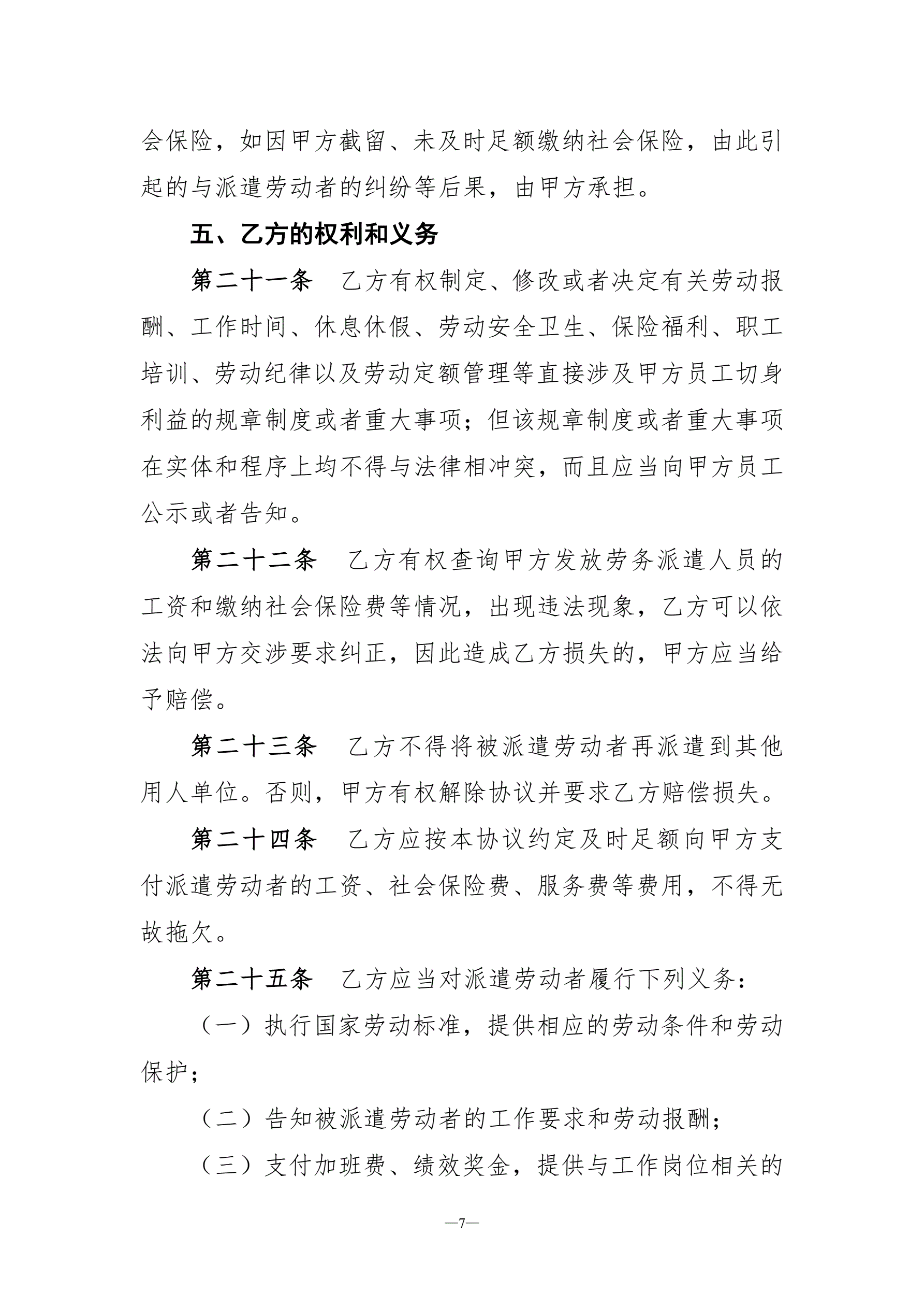 劳务派遣协议示范文本
