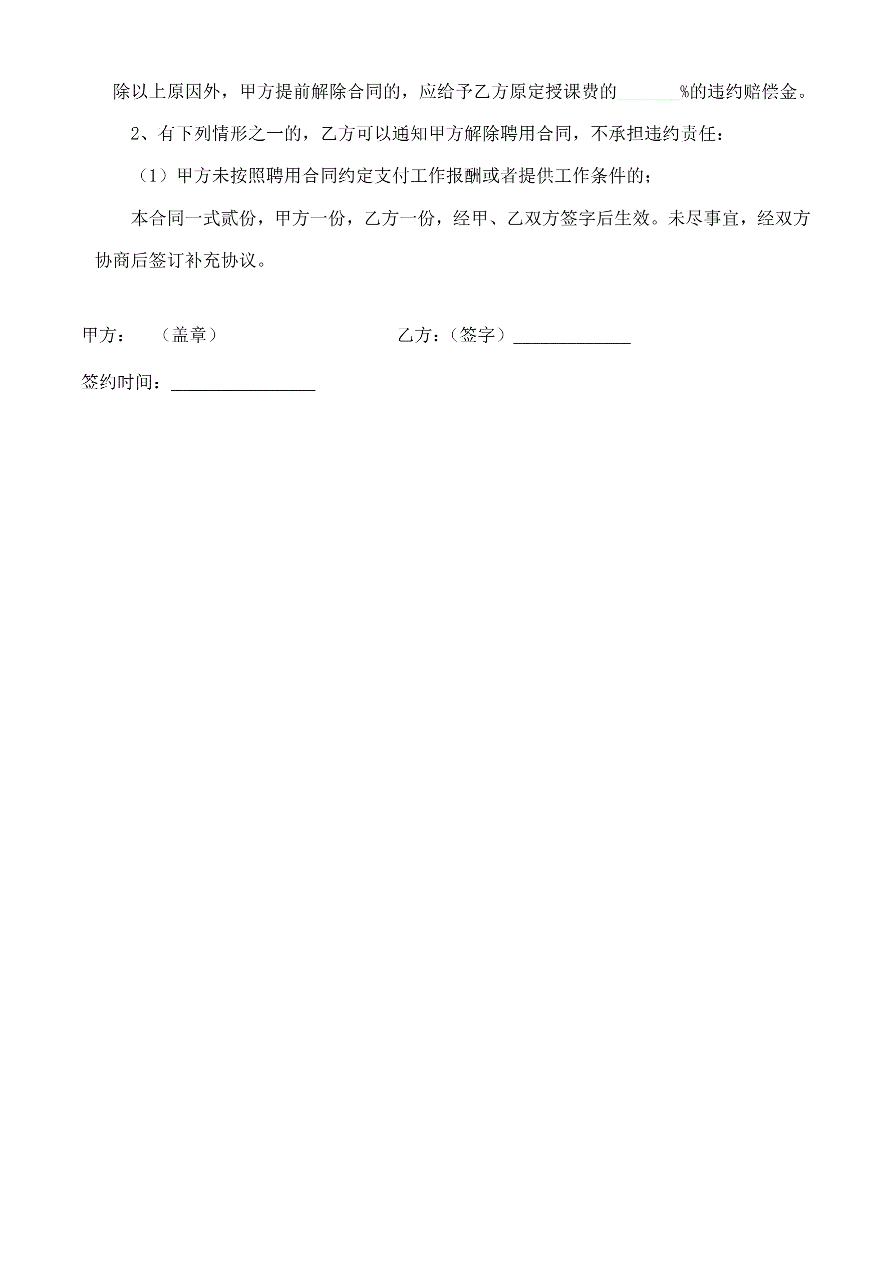 合同名称:培训机构教师聘用合同可用