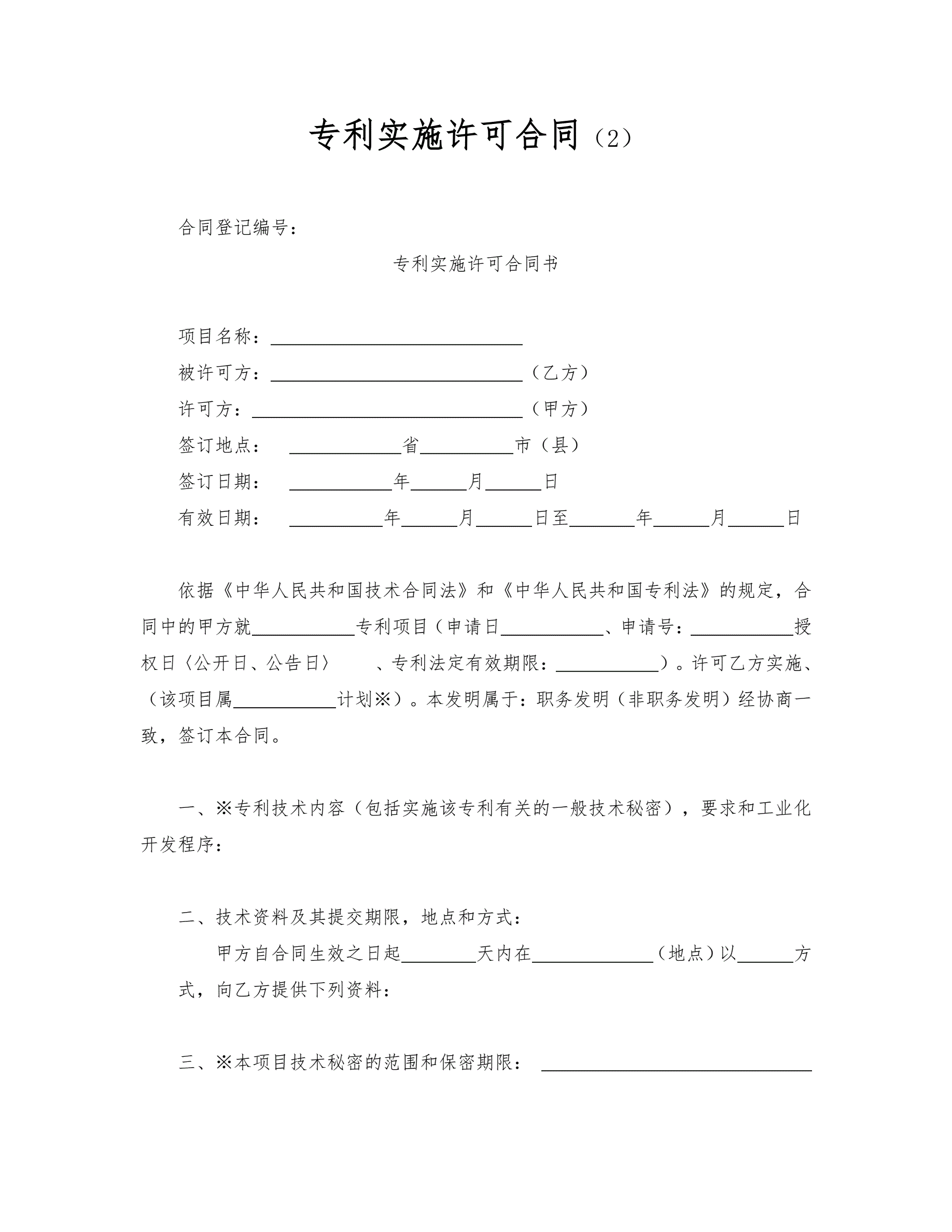 >专利实施许可合同(2)