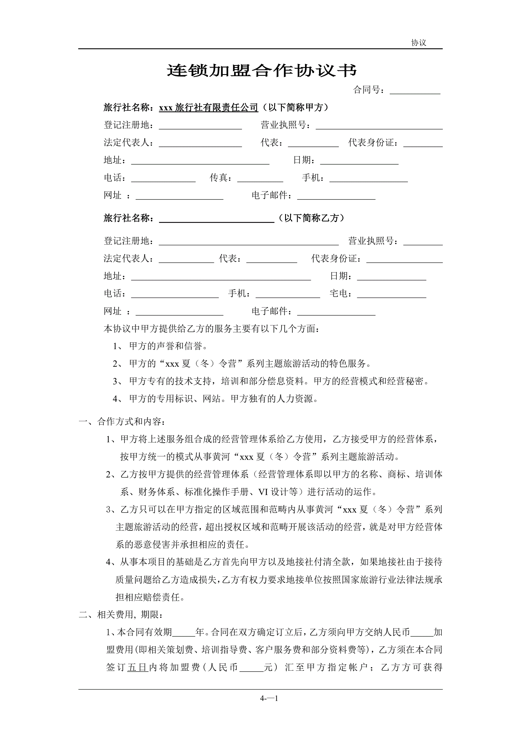连锁加盟合作协议书