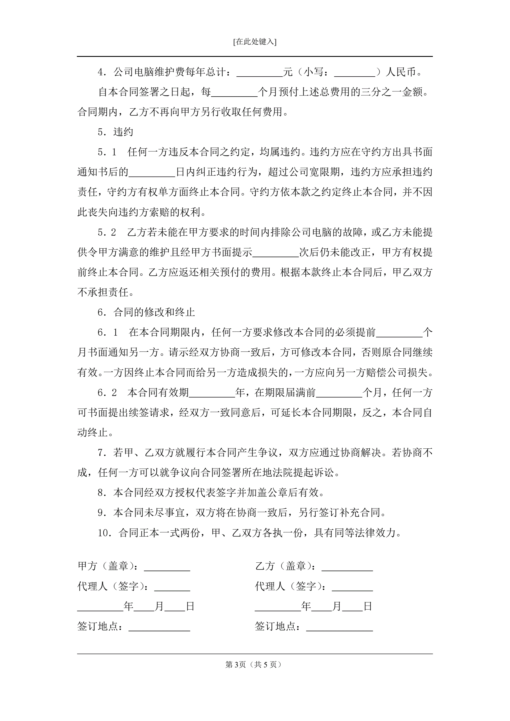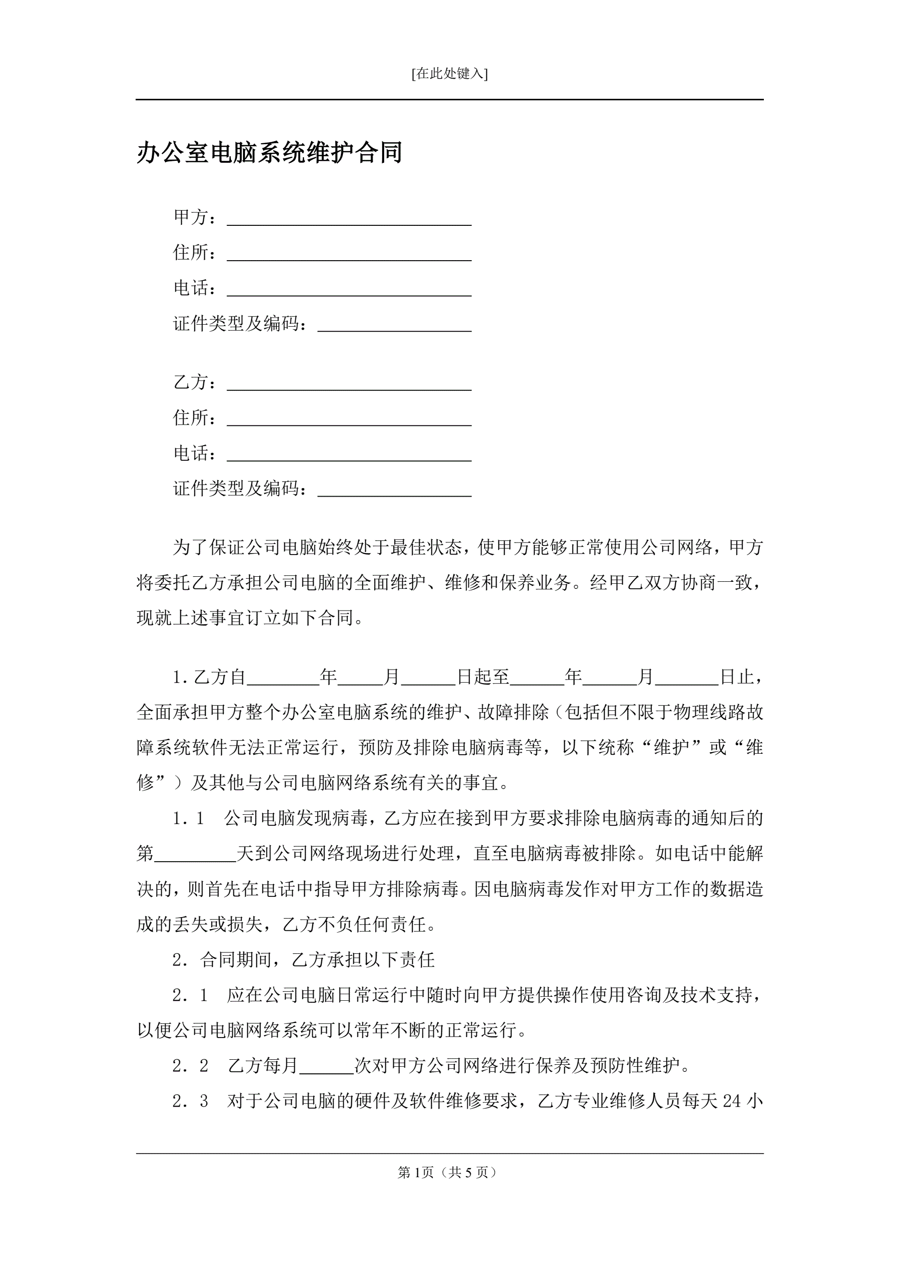 >办公室电脑系统维护合同