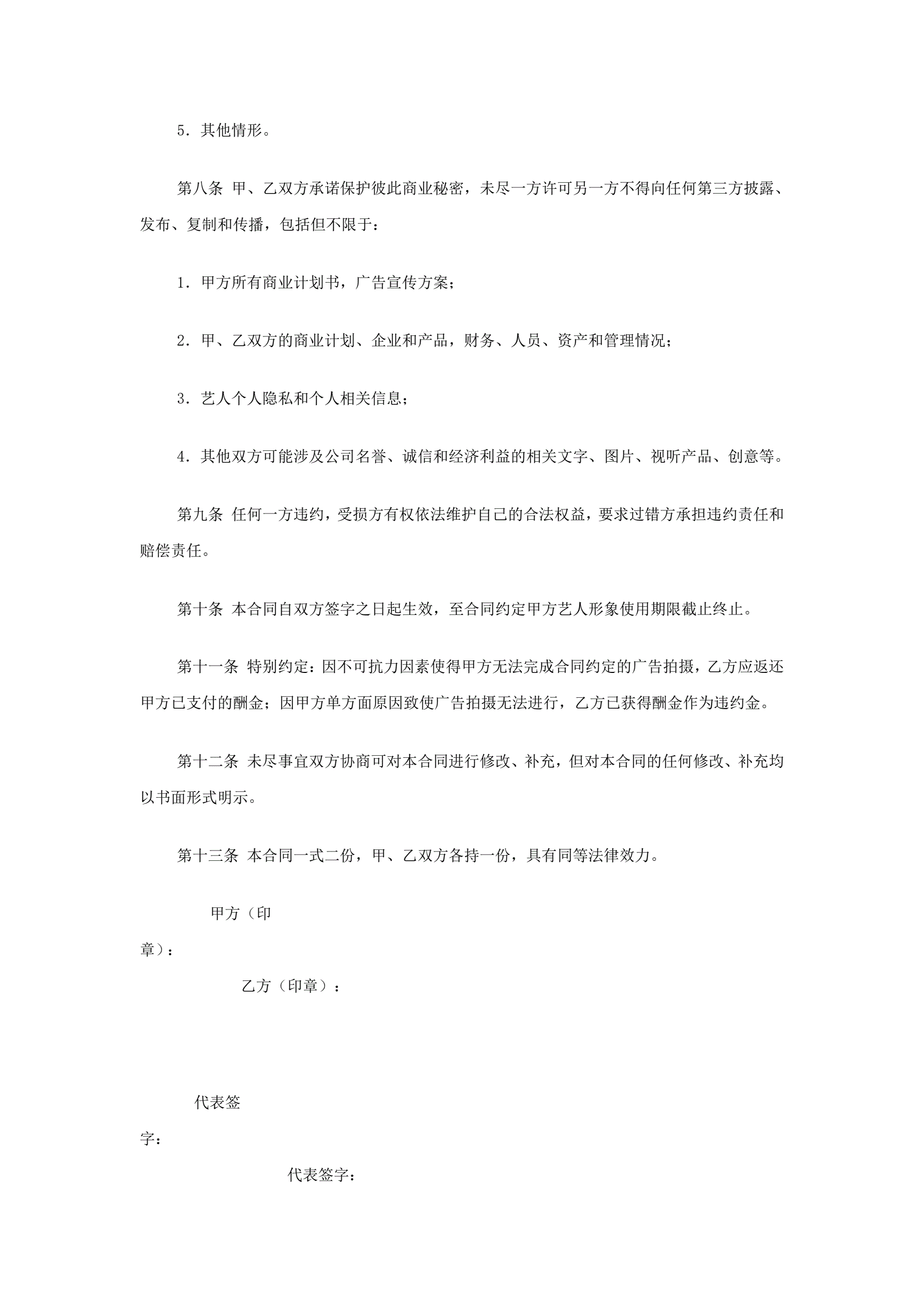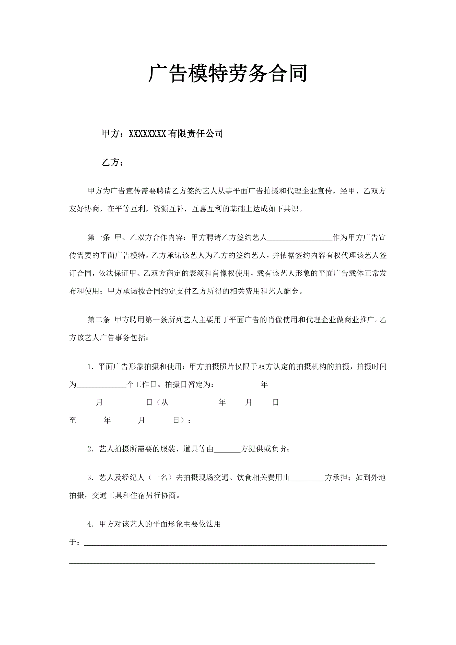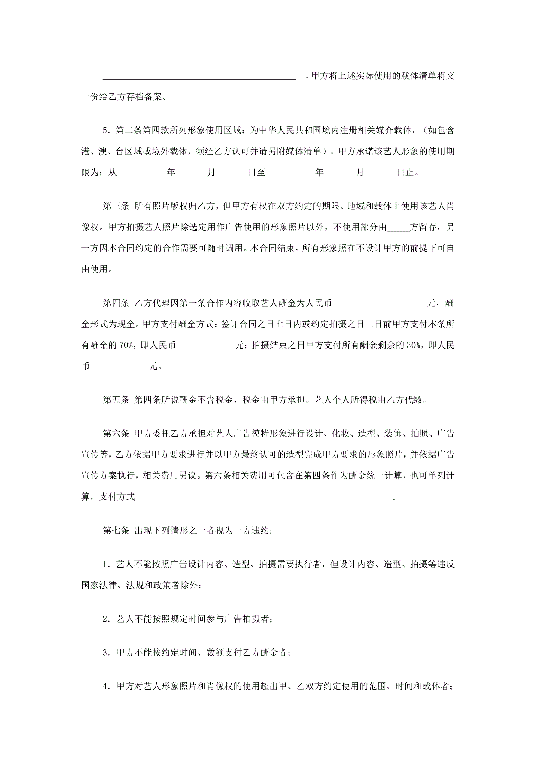 >模特合同