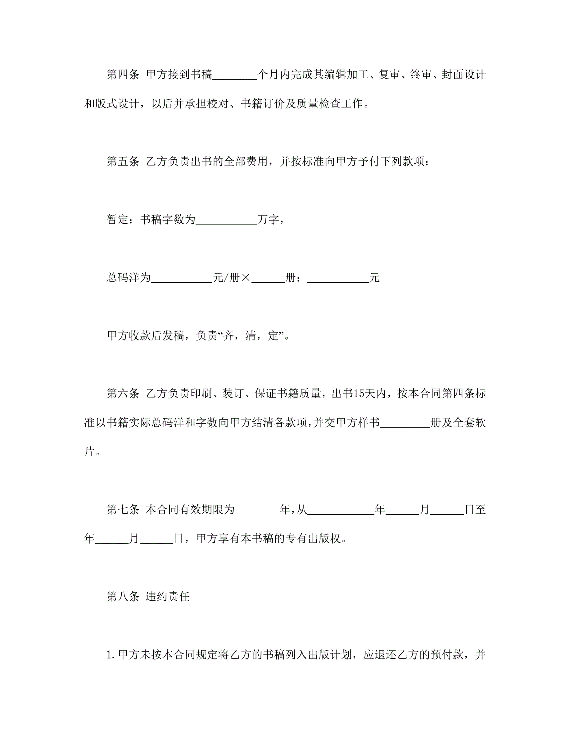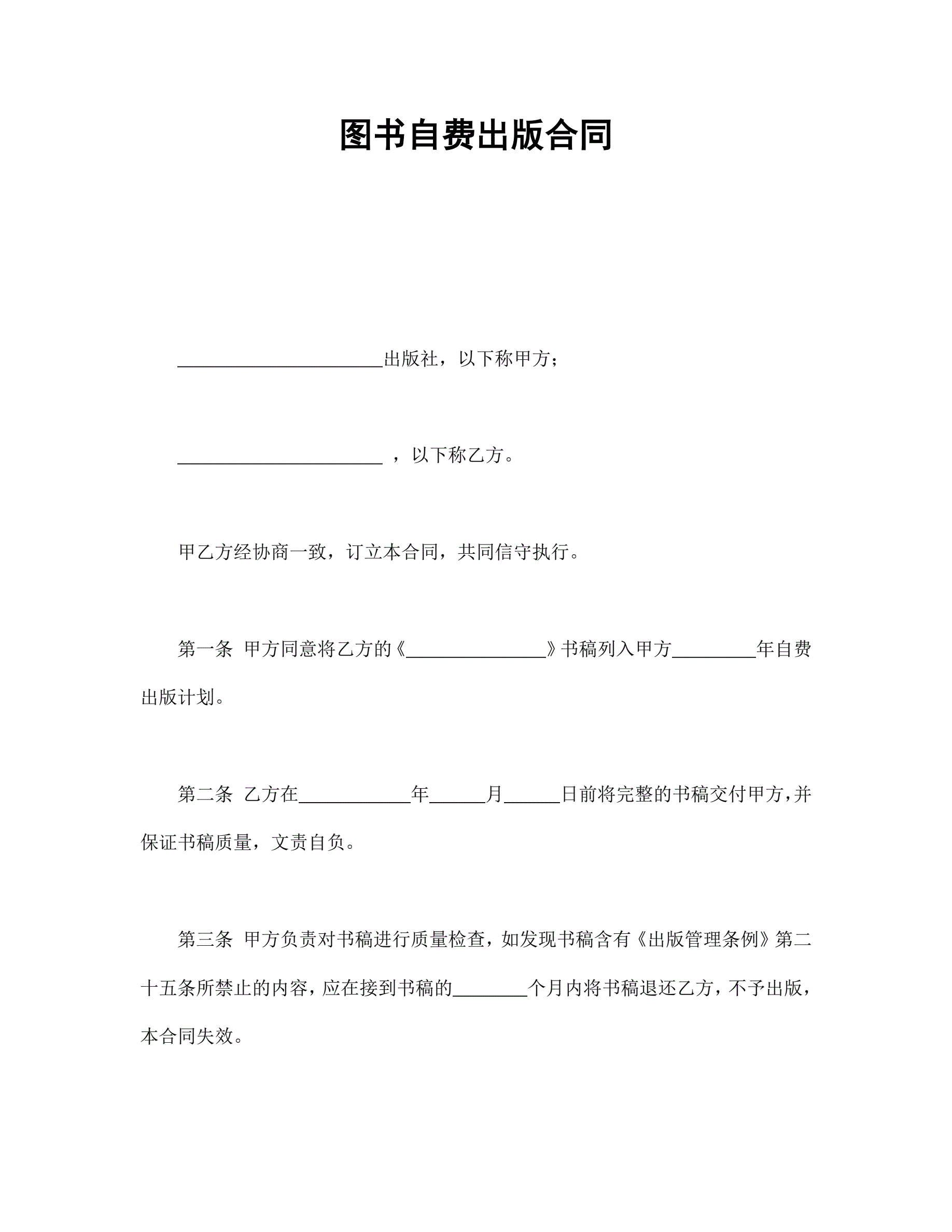 图书自费出版合同