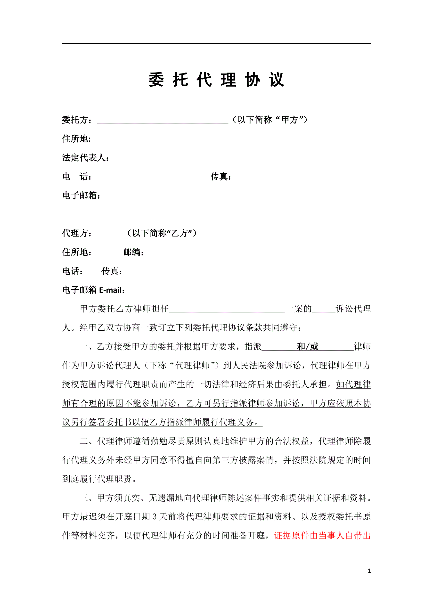 >委托代理协议