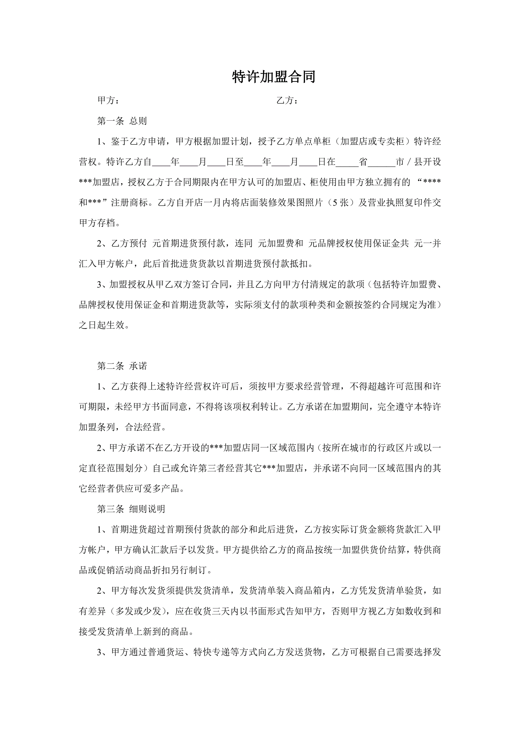 特许加盟合同