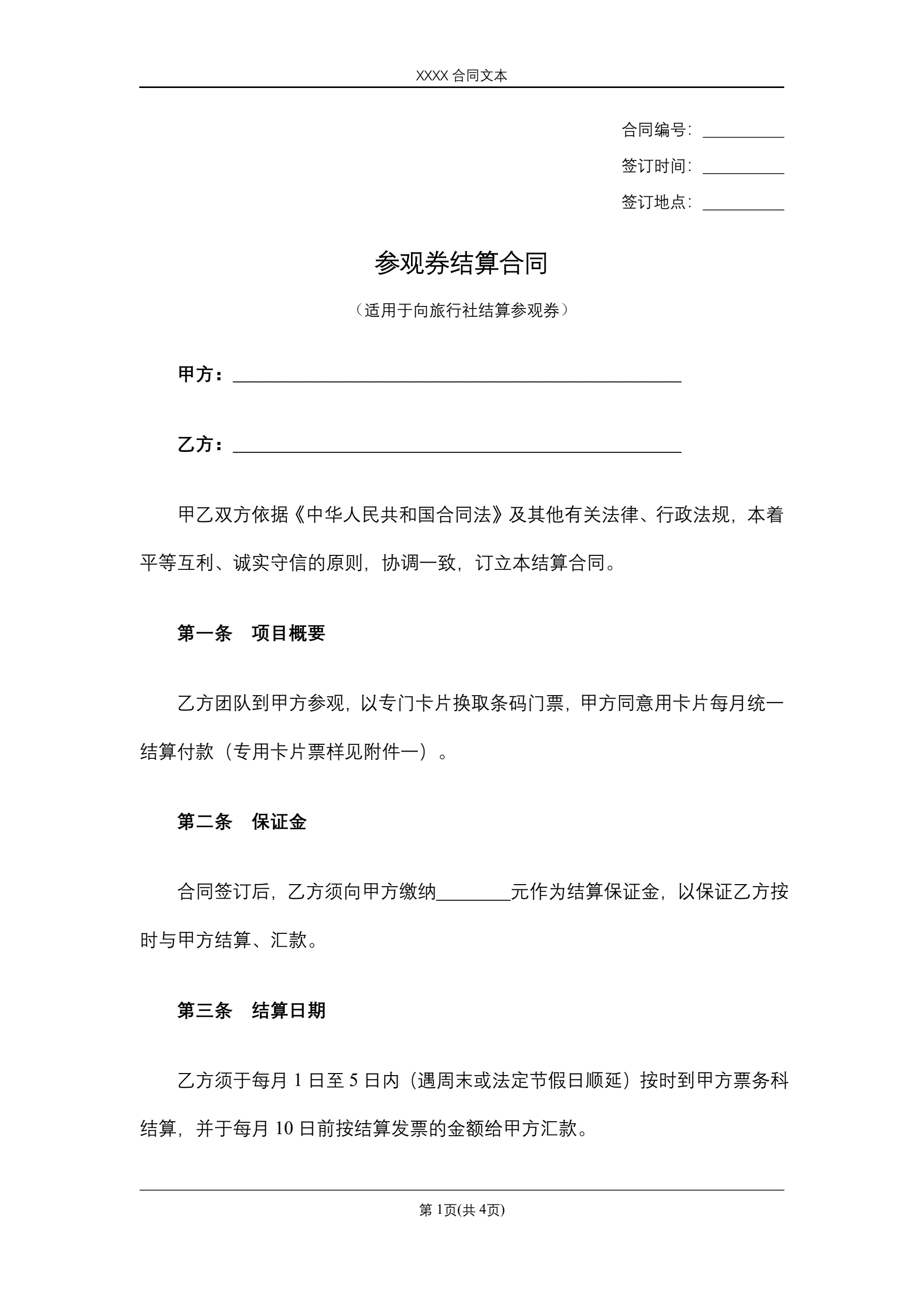 合同名称:参观券结算合同