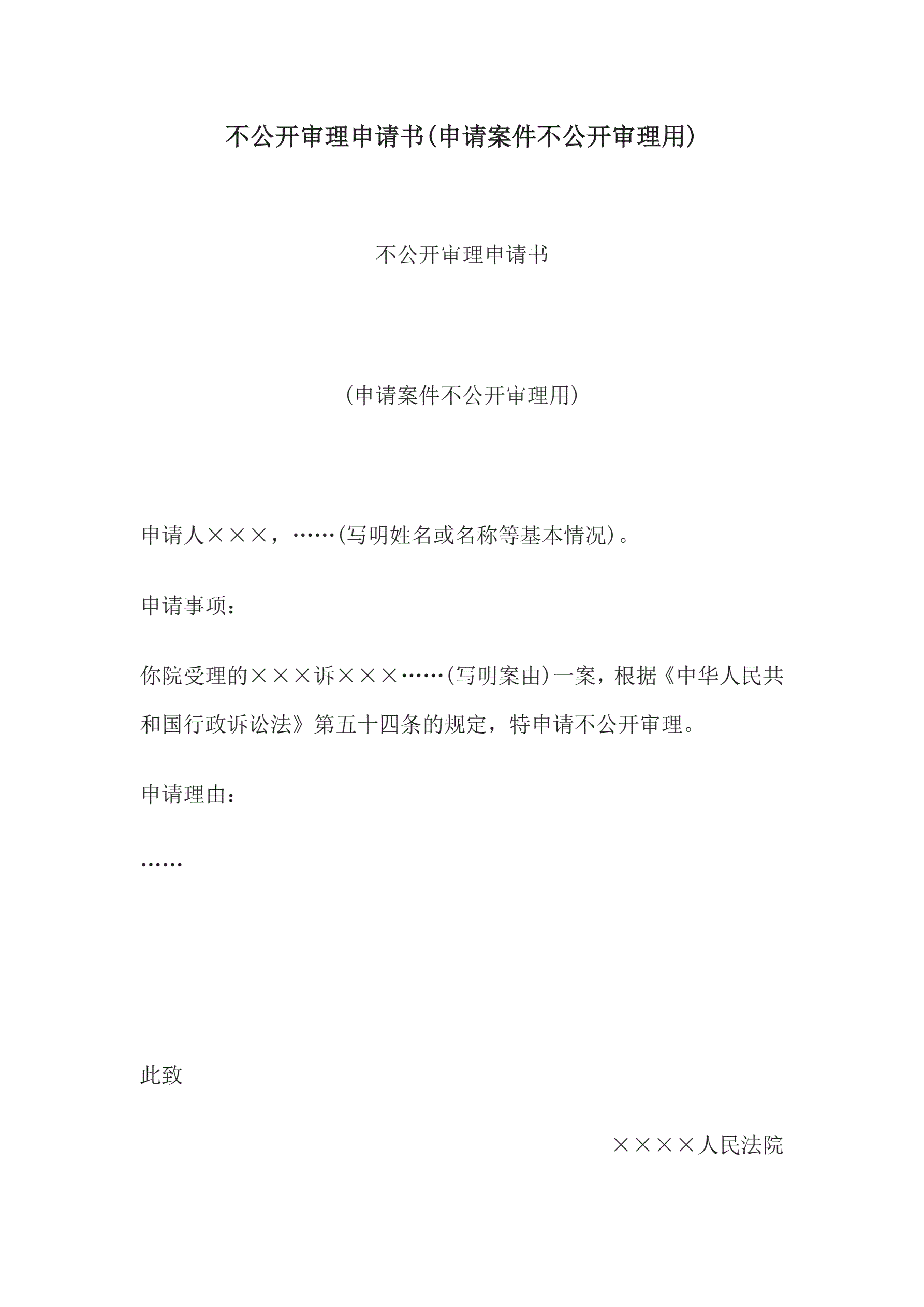 合同名称:不公开审理申请书(申请案件不公开审理用)