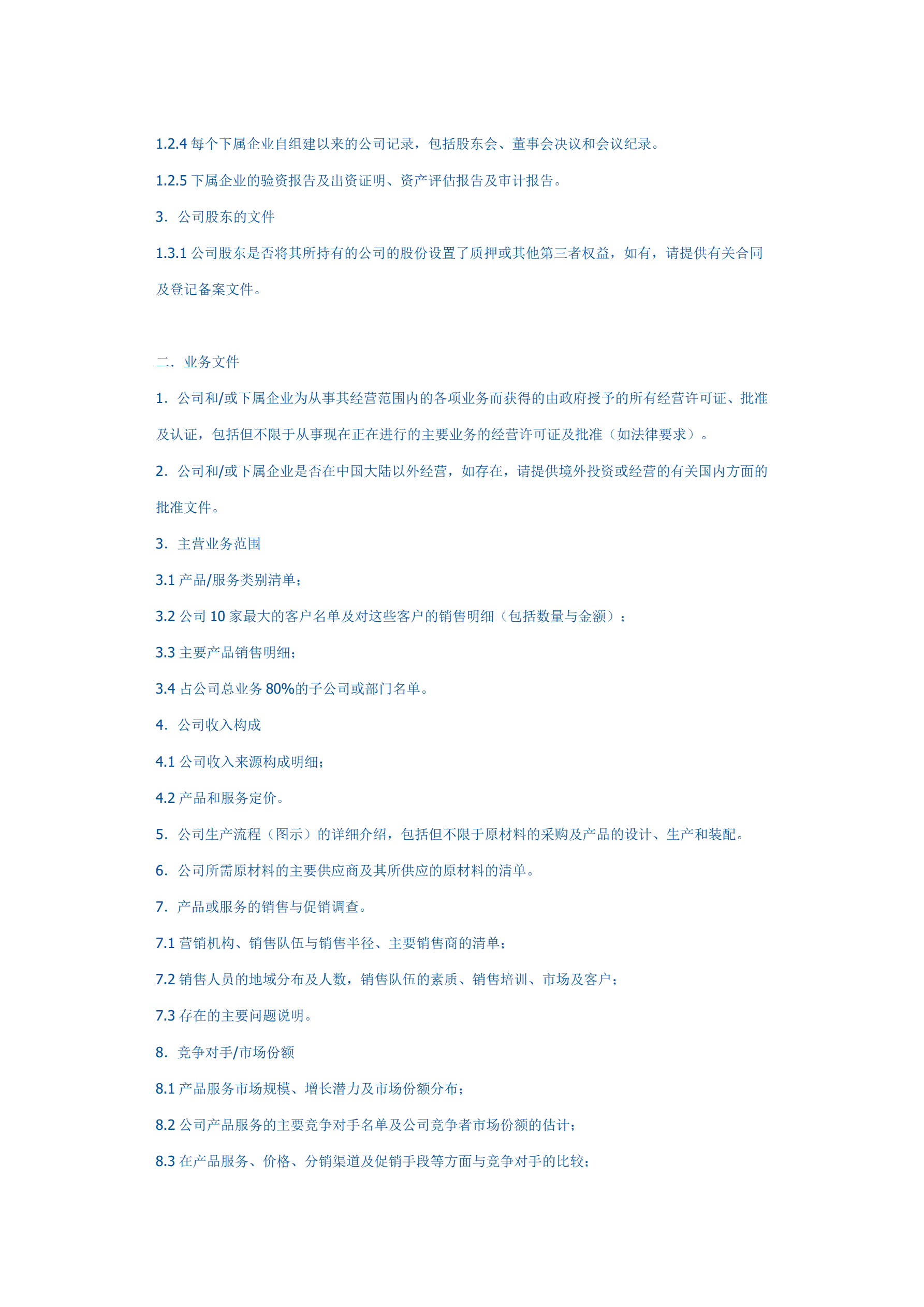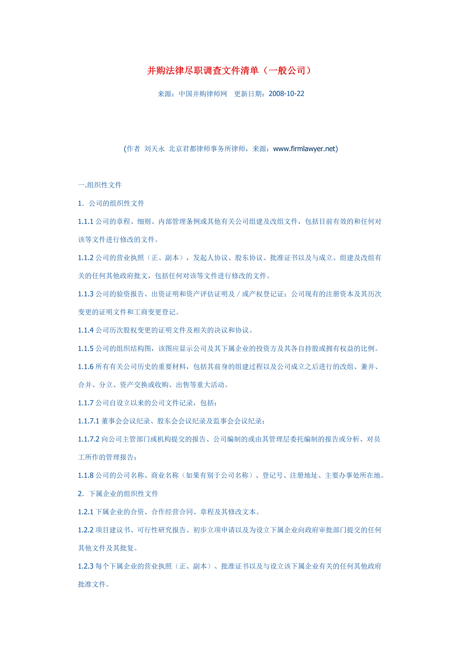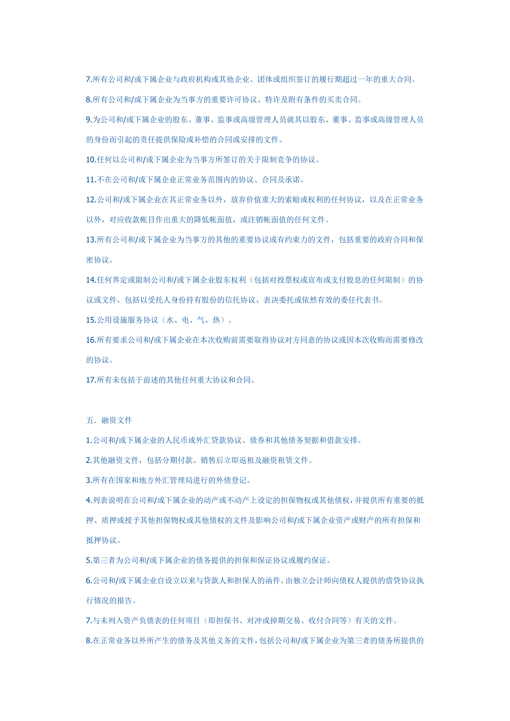 并购法律尽职调查文件清单