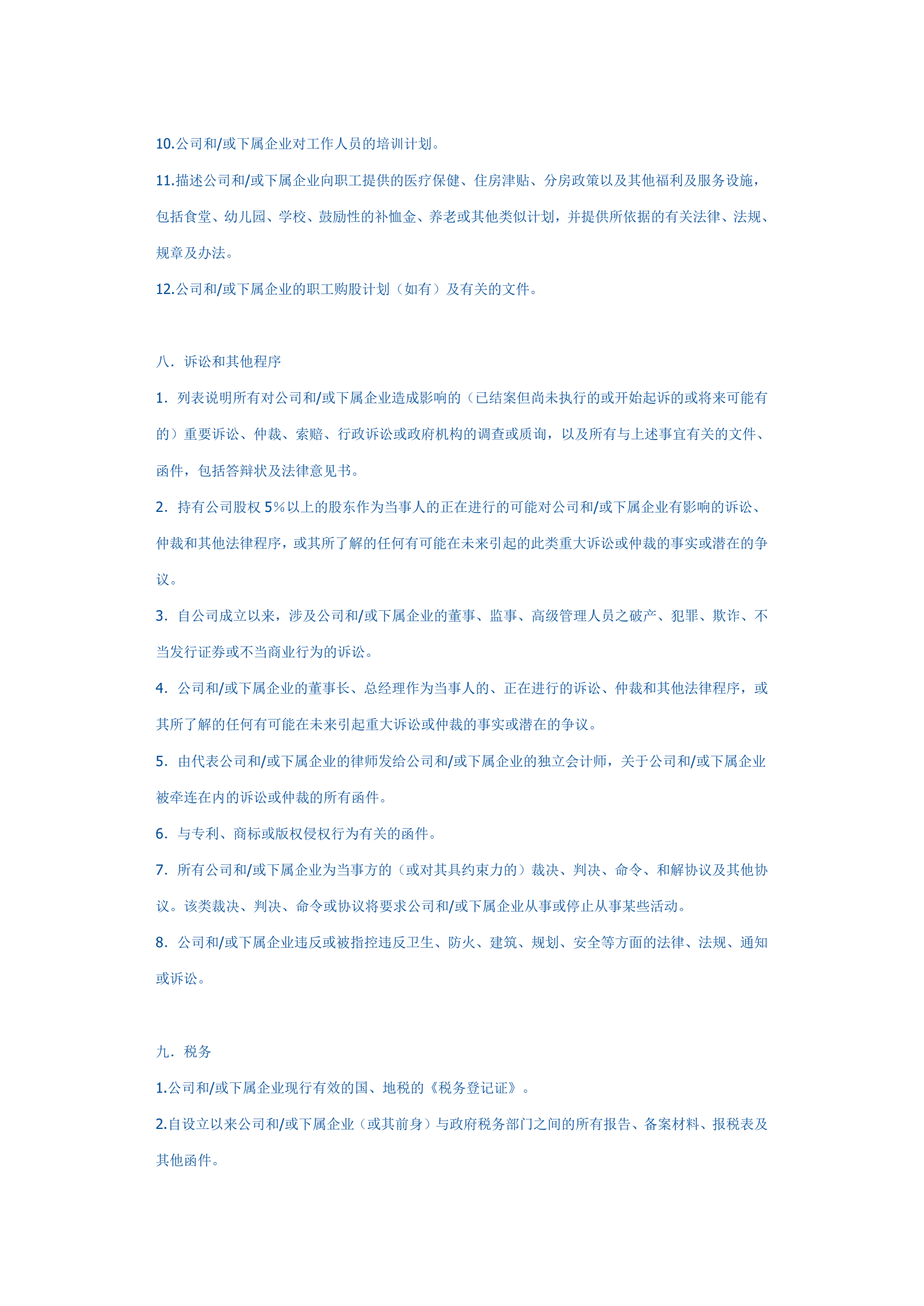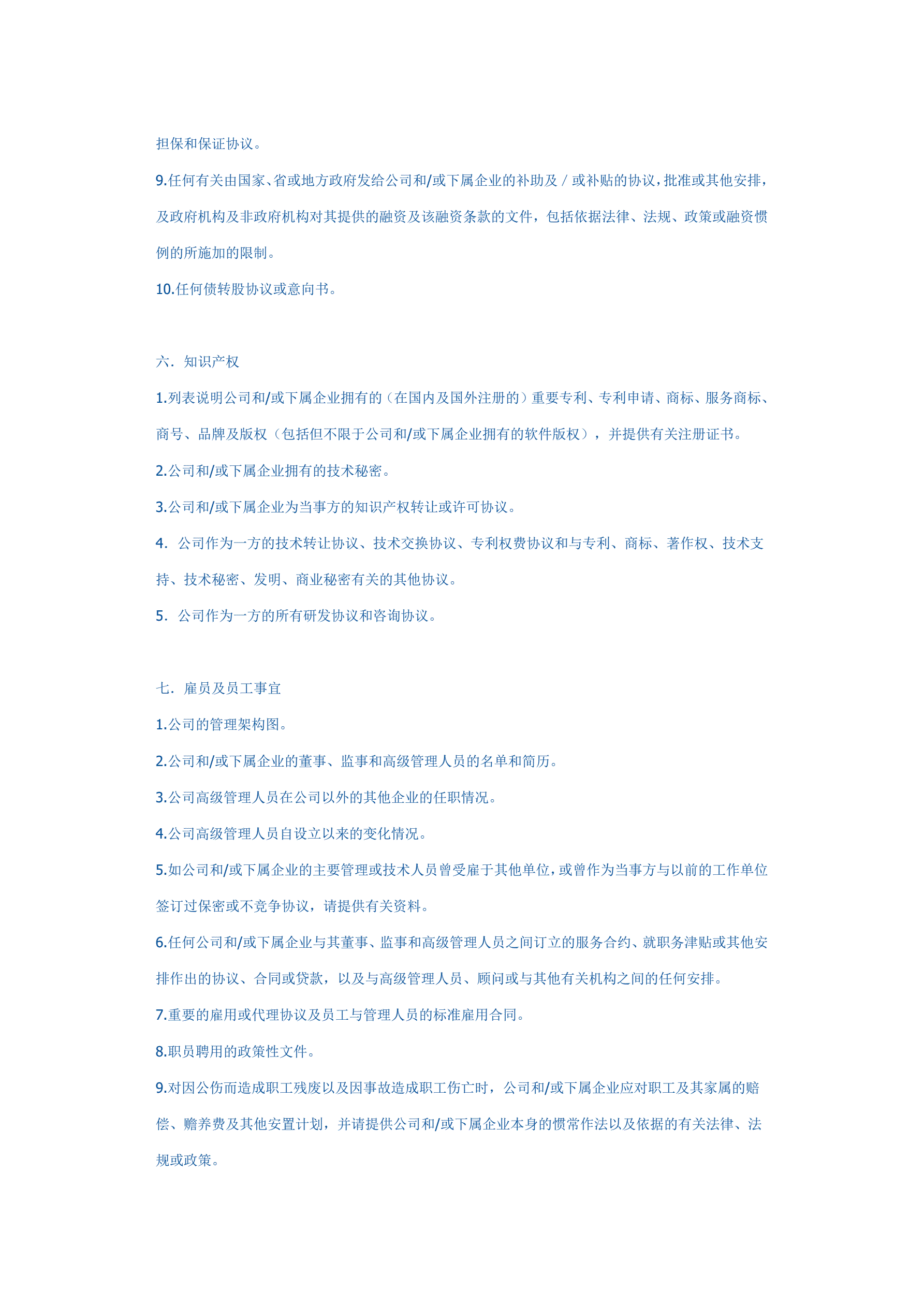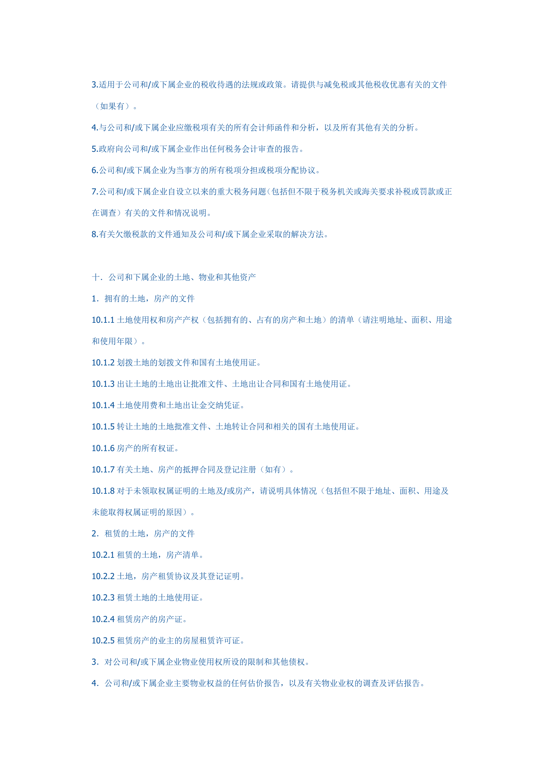 并购法律尽职调查文件清单