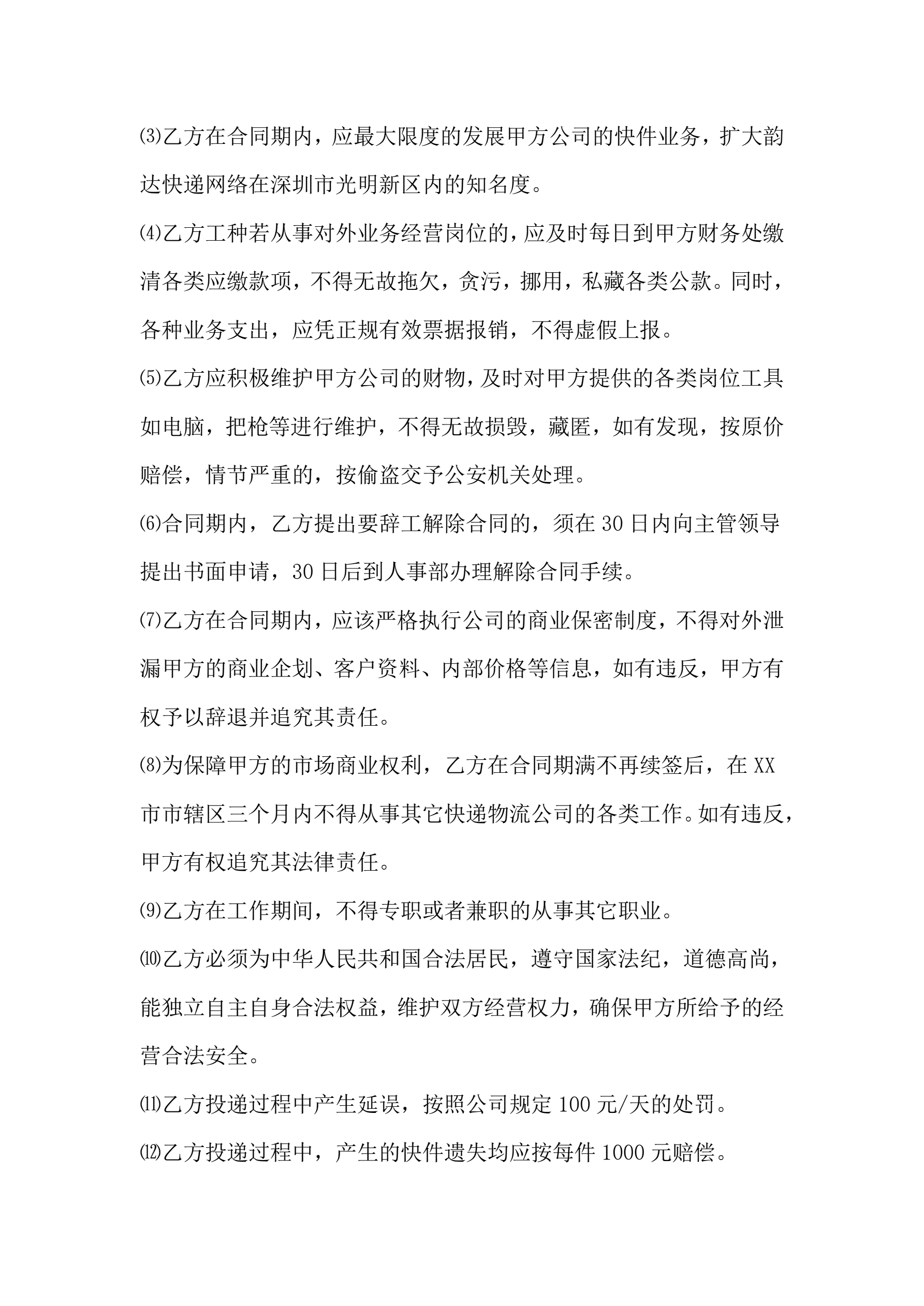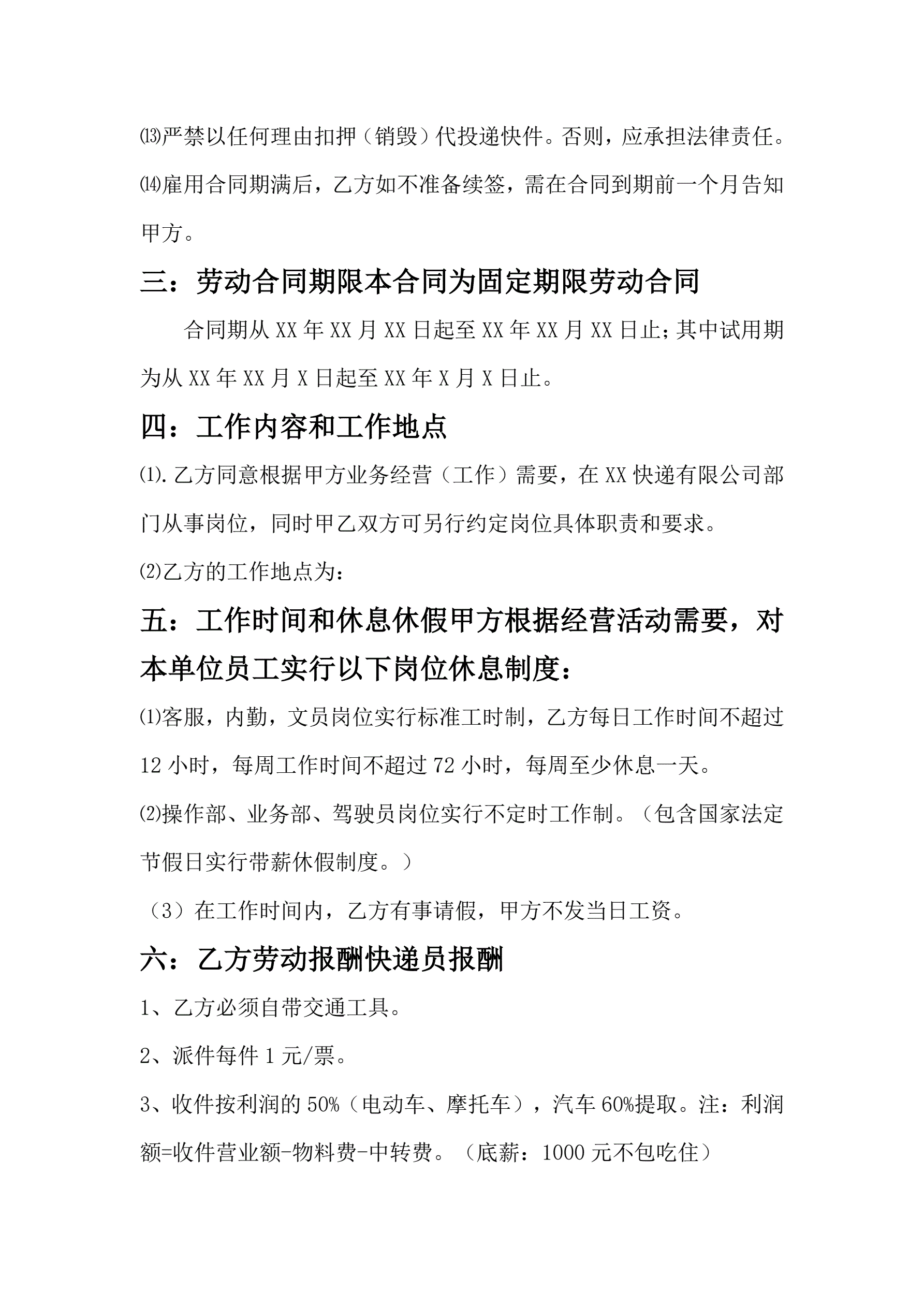 >快递企业员工劳动合同范本