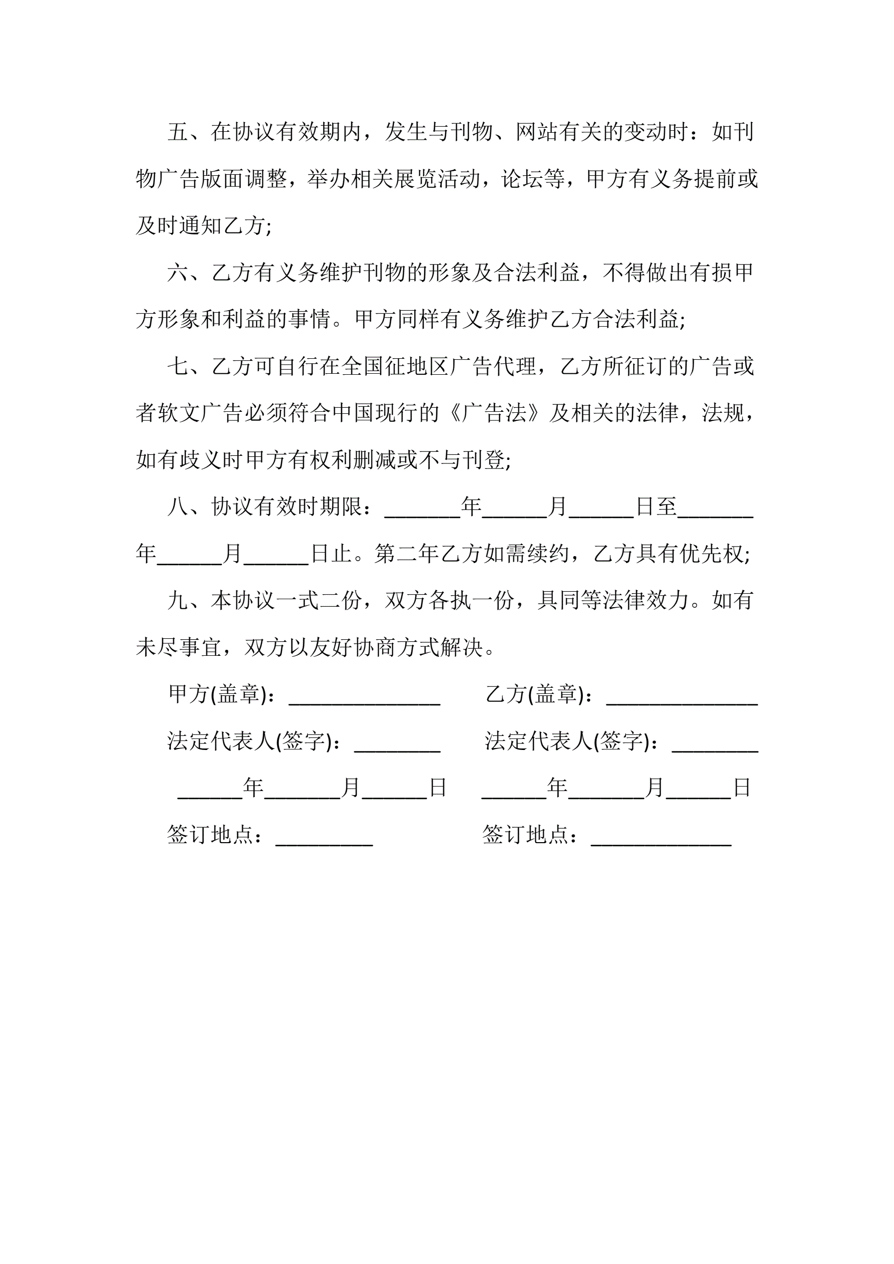 广告杂志总代理合同