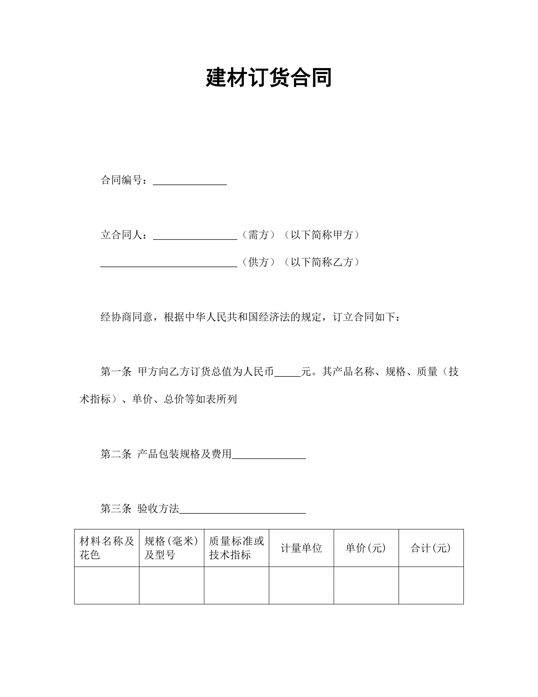 建材订货合同