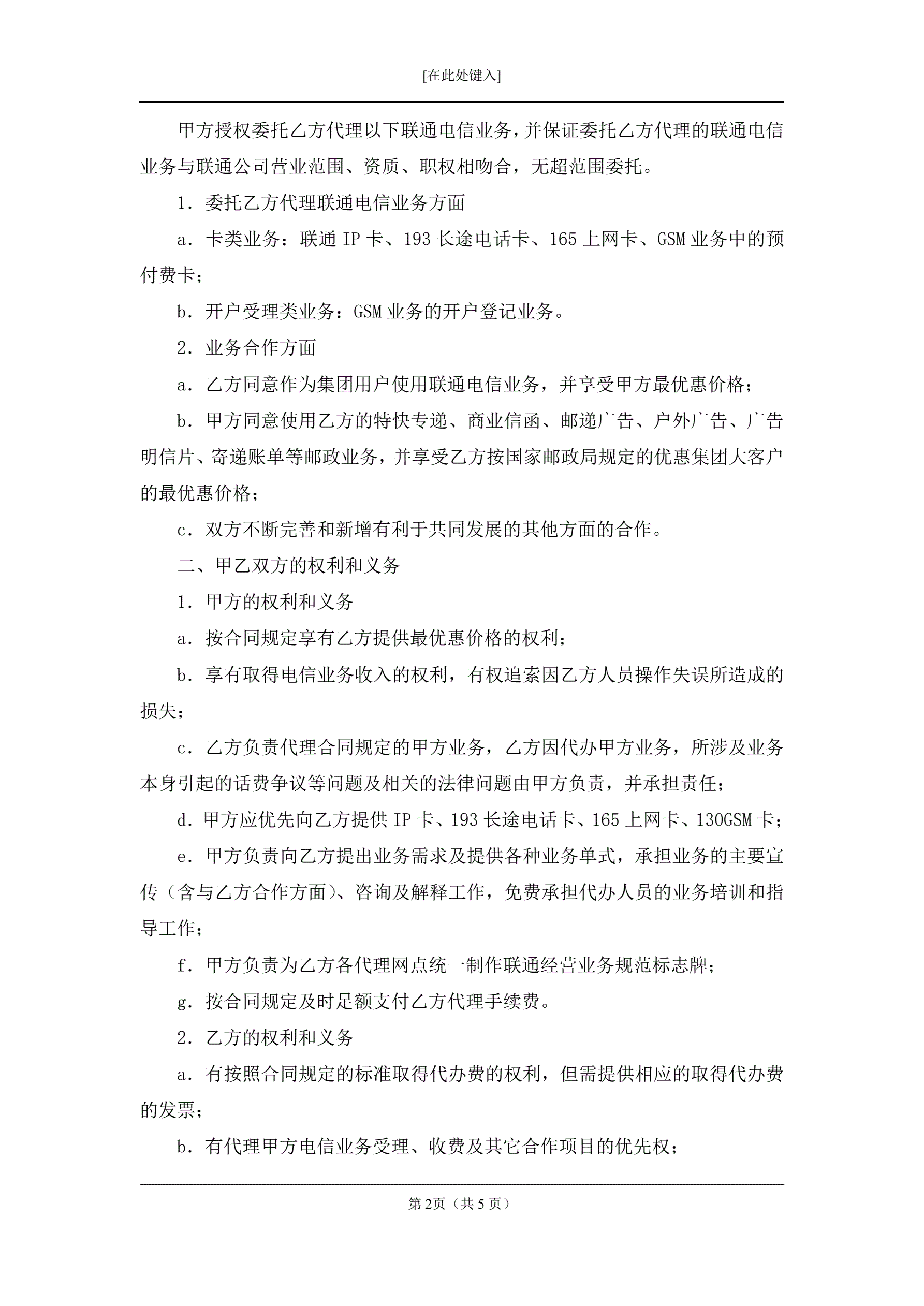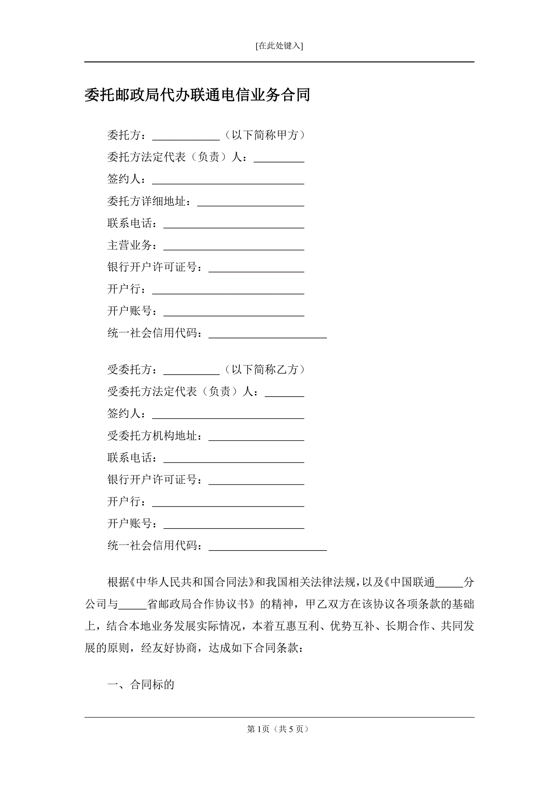 委托邮政局代办联通电信业务合同