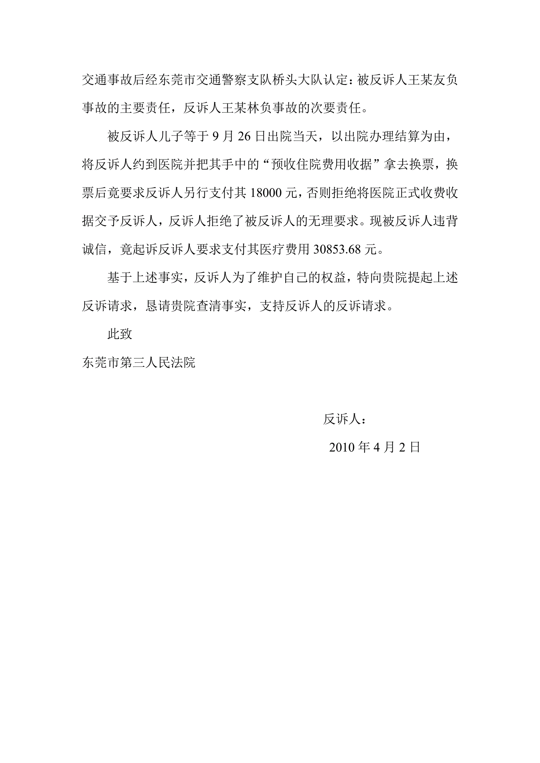 >民事反诉状(王贞林)
