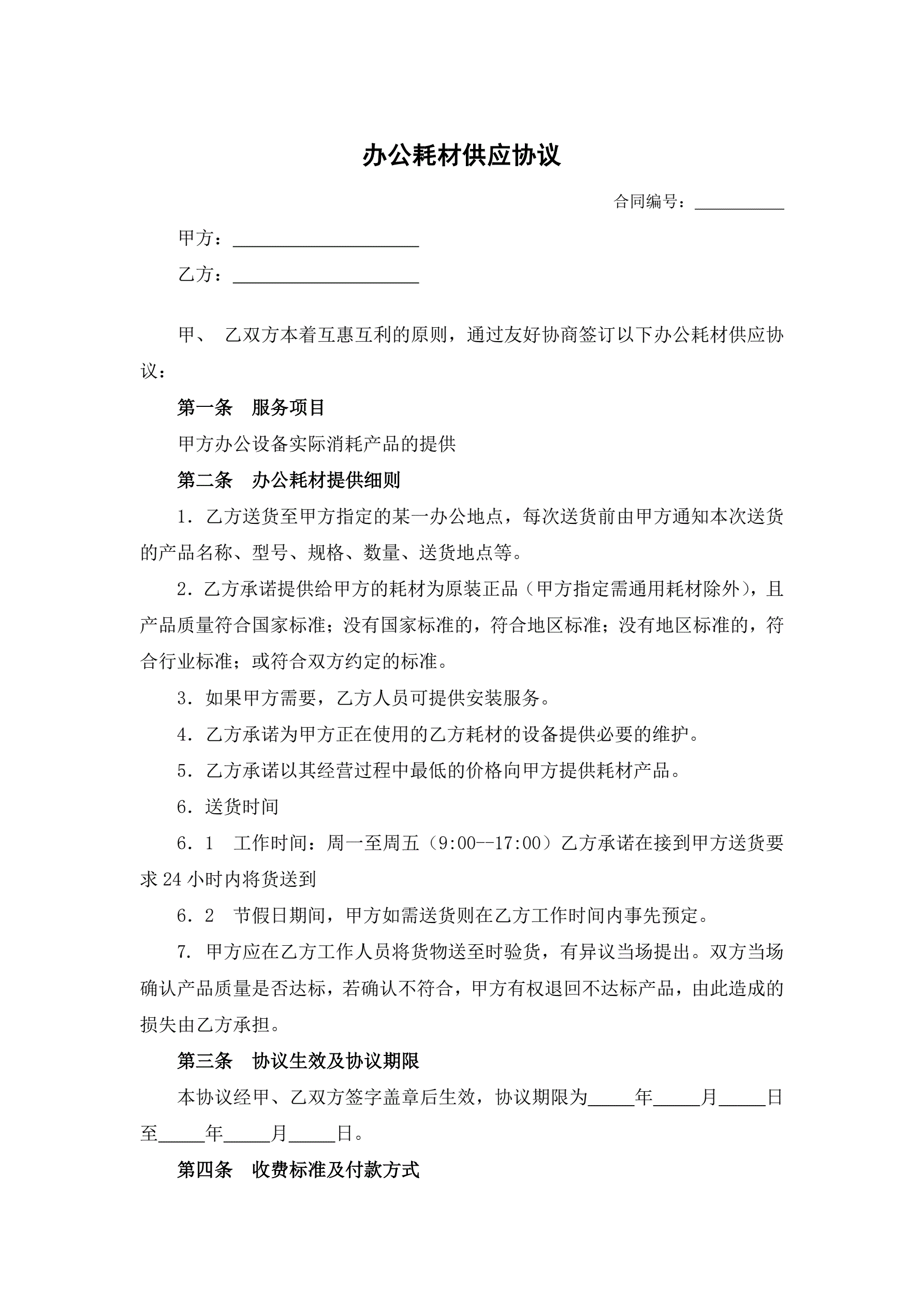 办公耗材供应协议