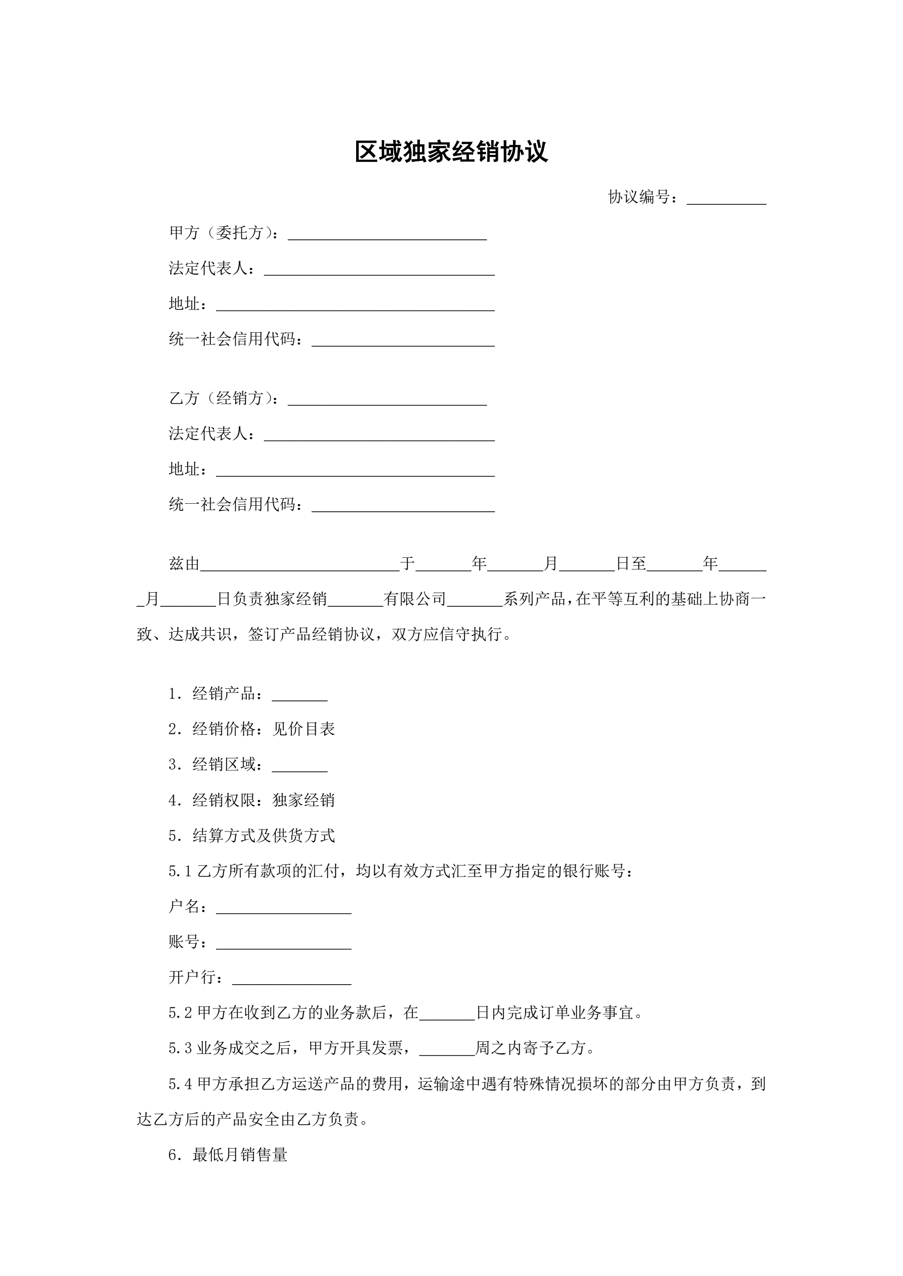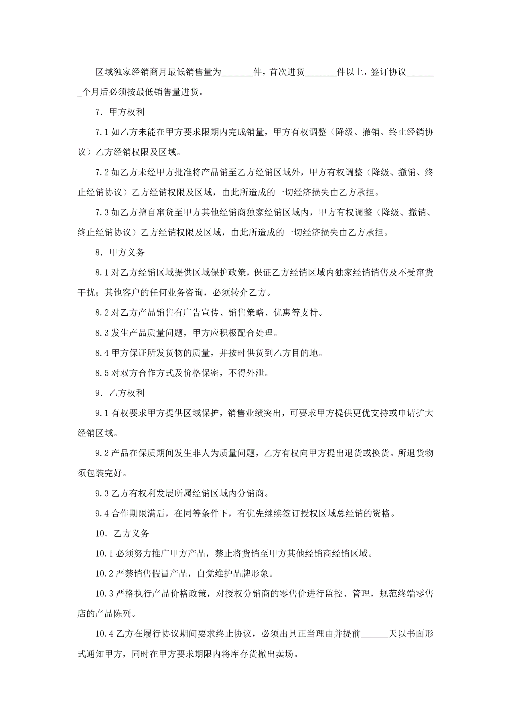 >区域独家经销协议