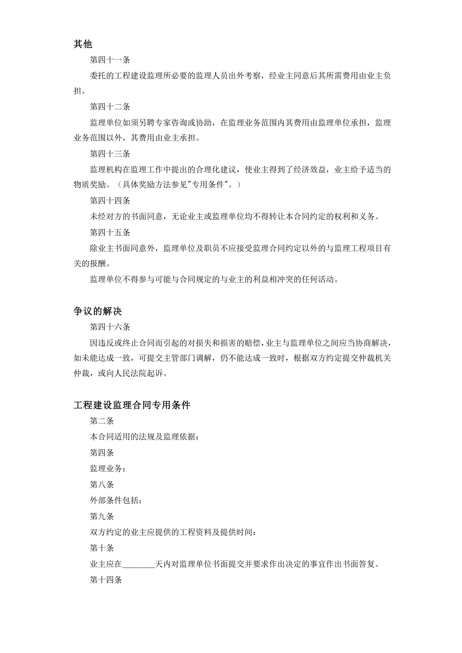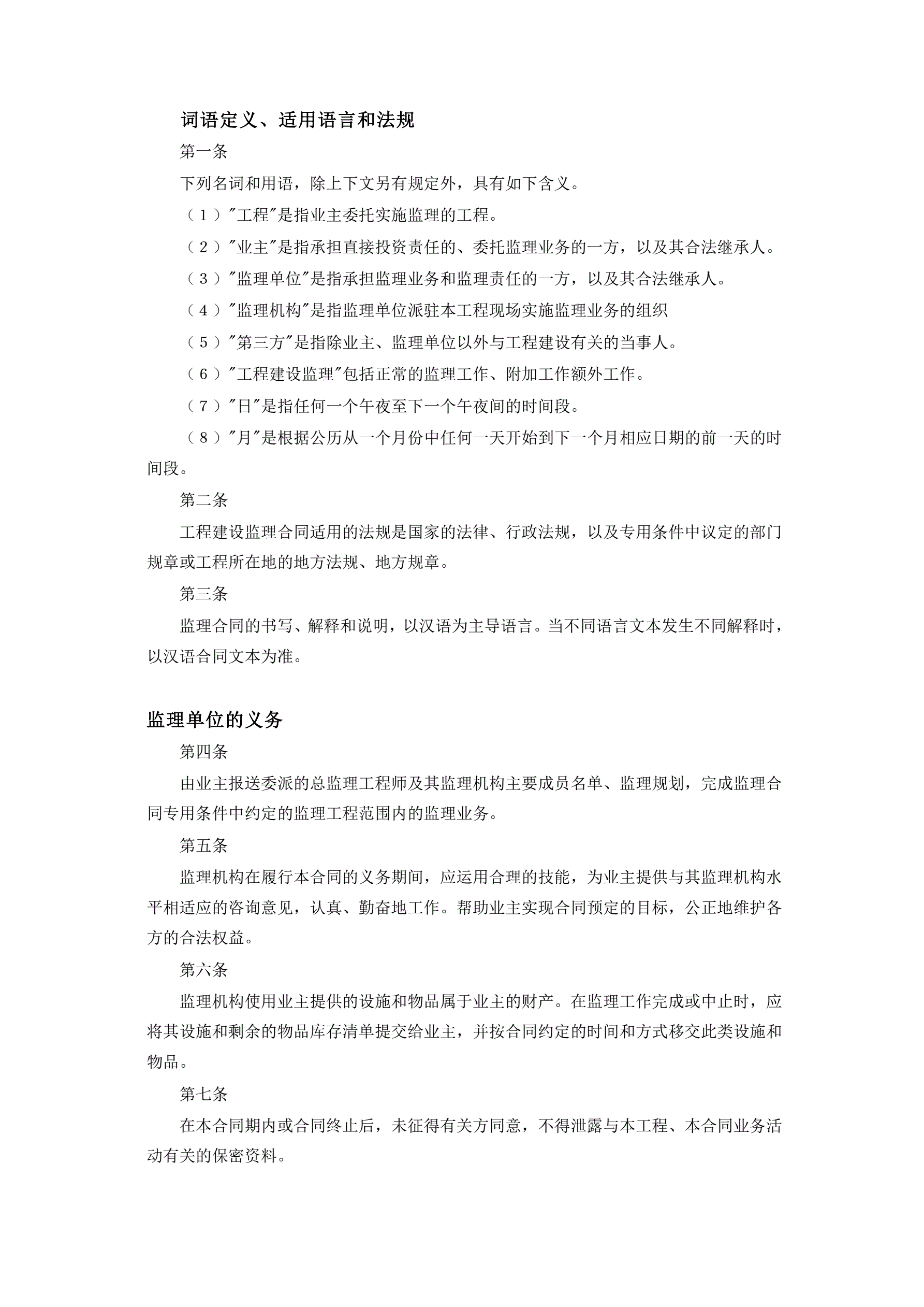 >工程建设监理合同标准条件