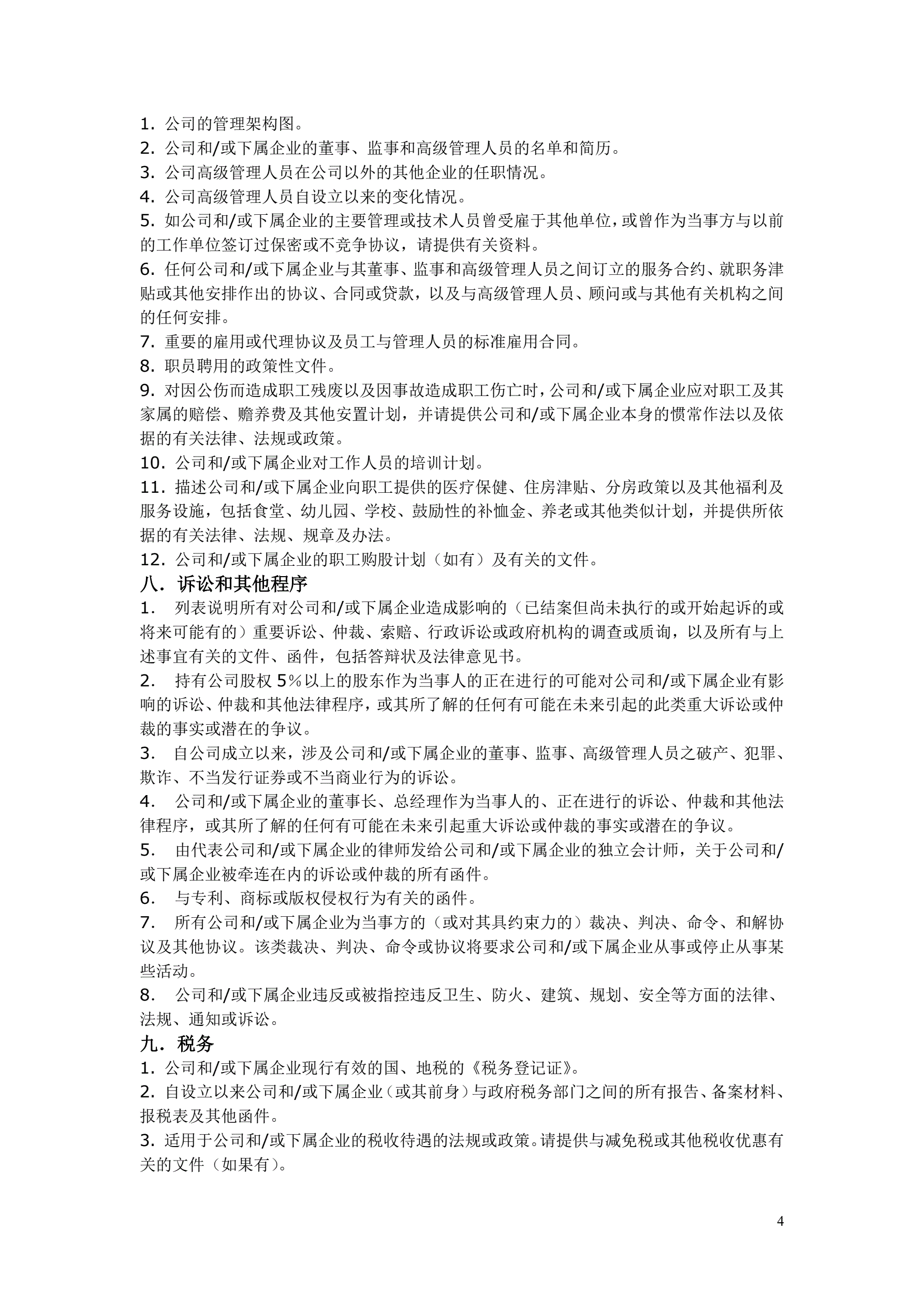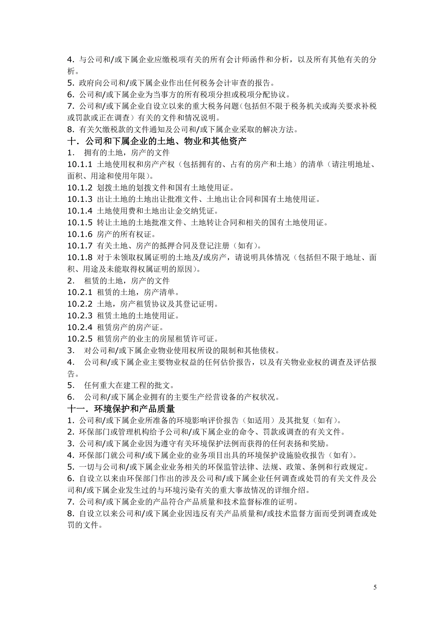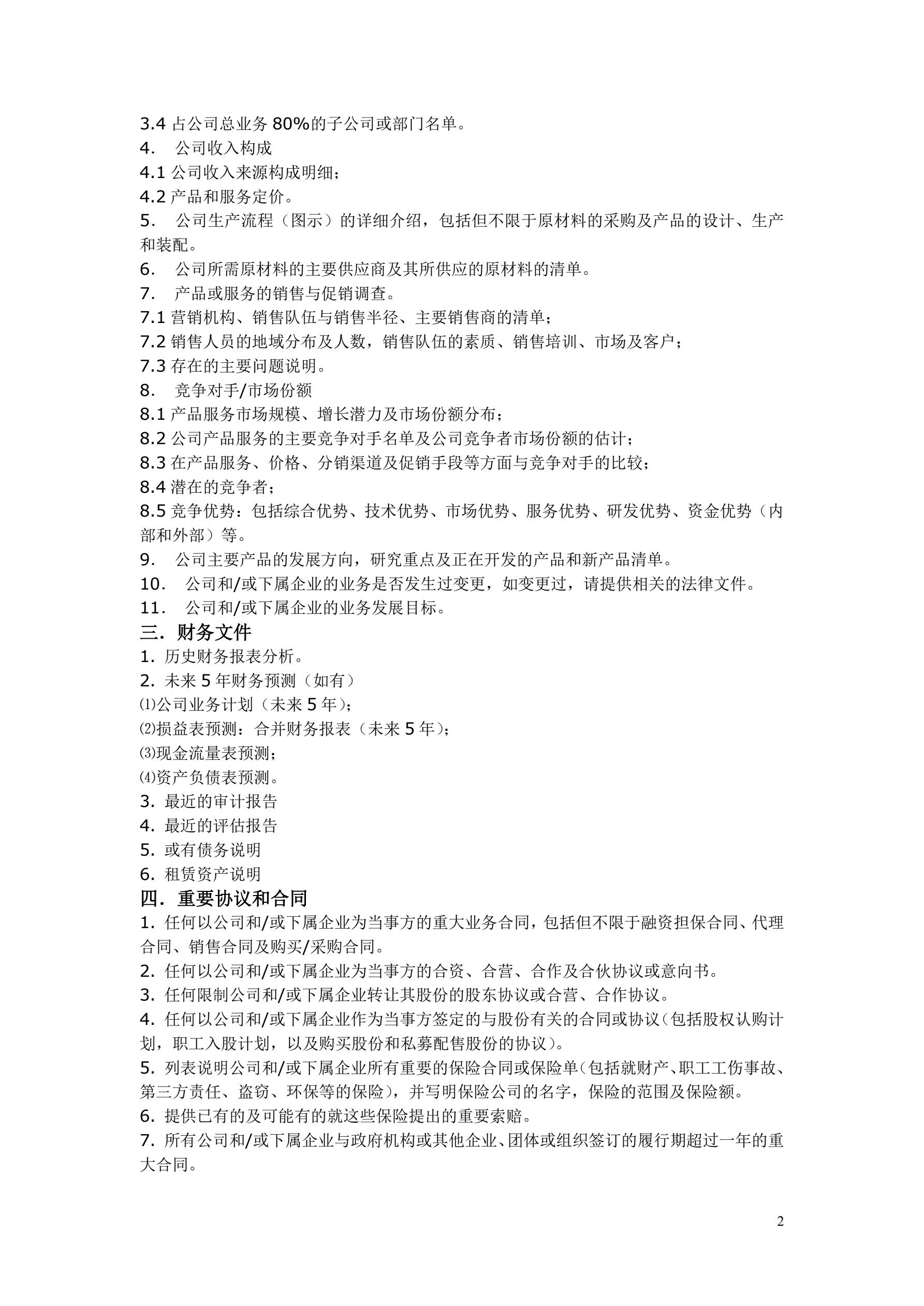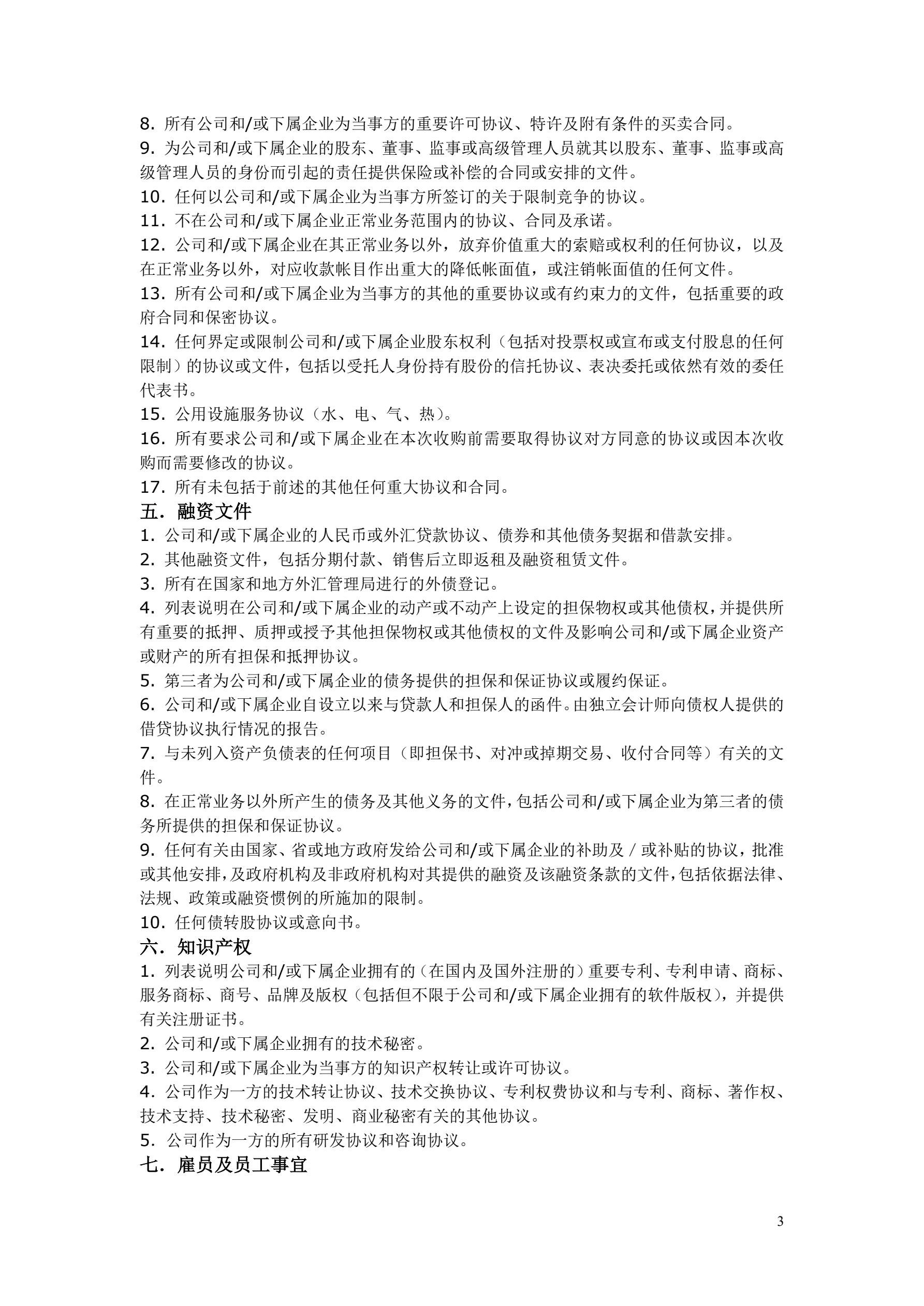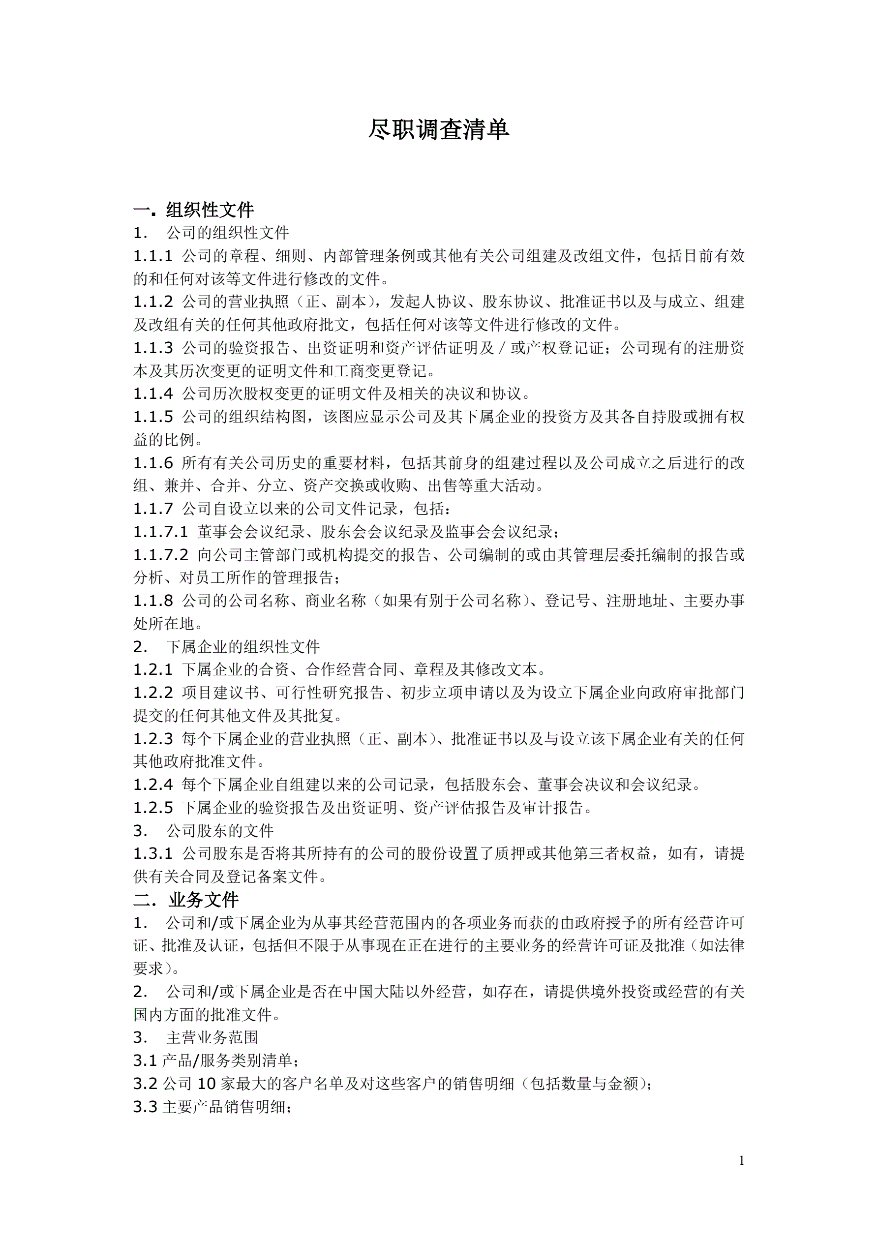 并购项目尽职调查清单