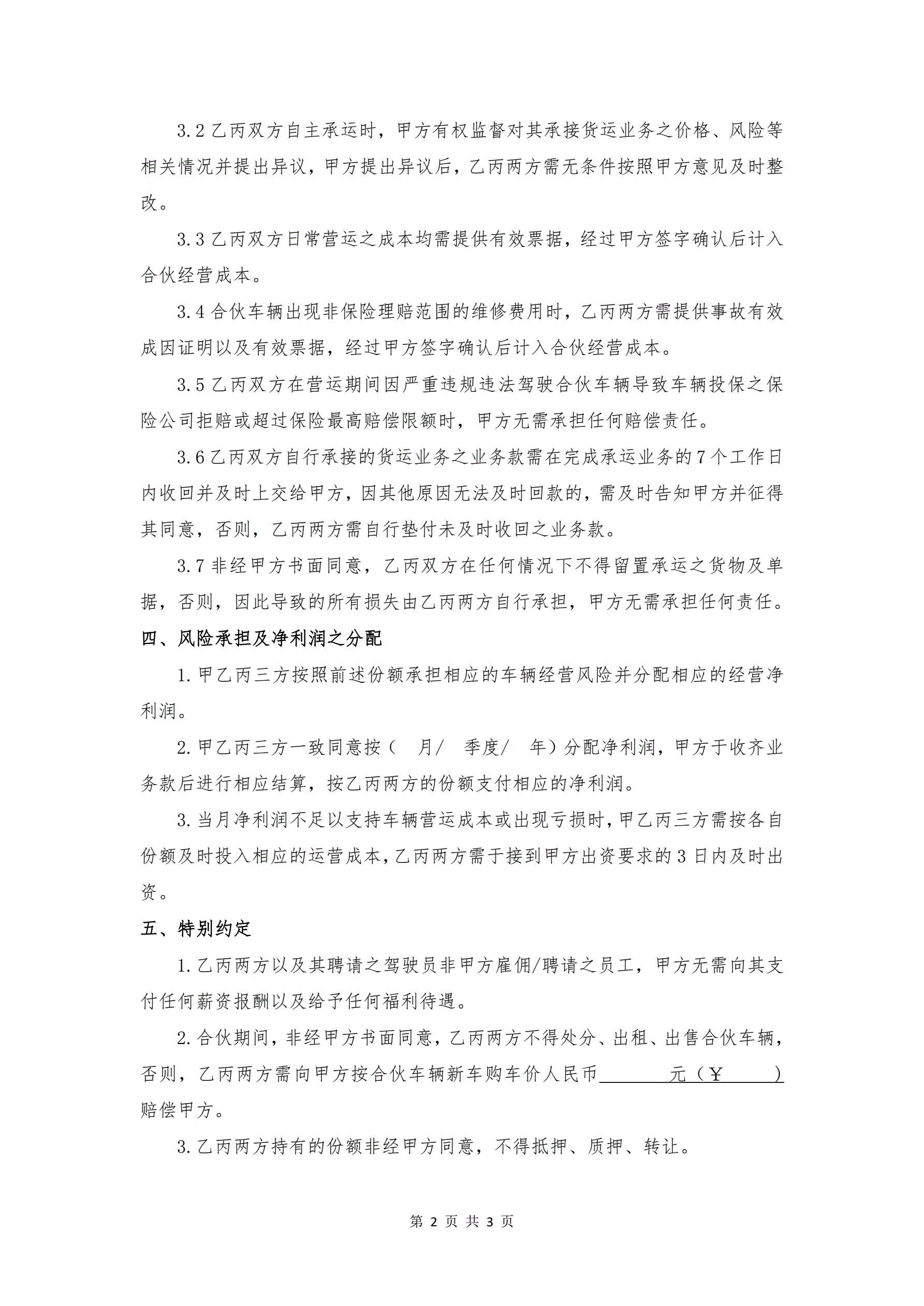 >车辆合伙经营协议