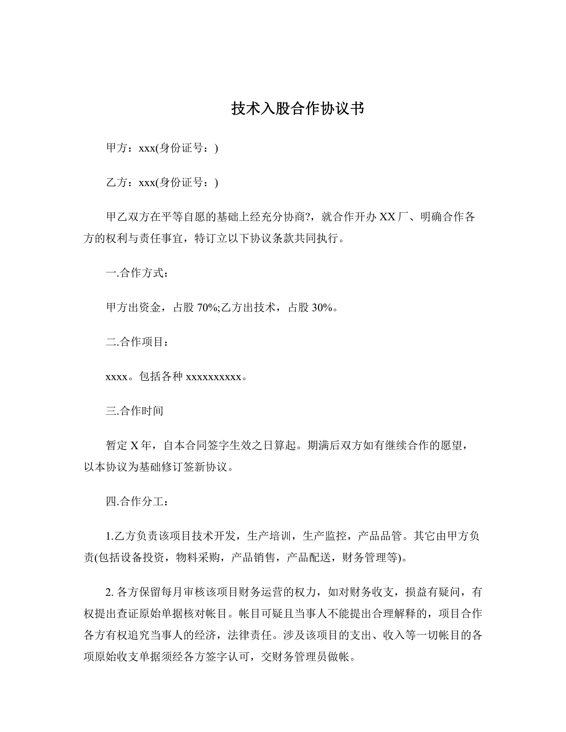 技术入股合作协议书
