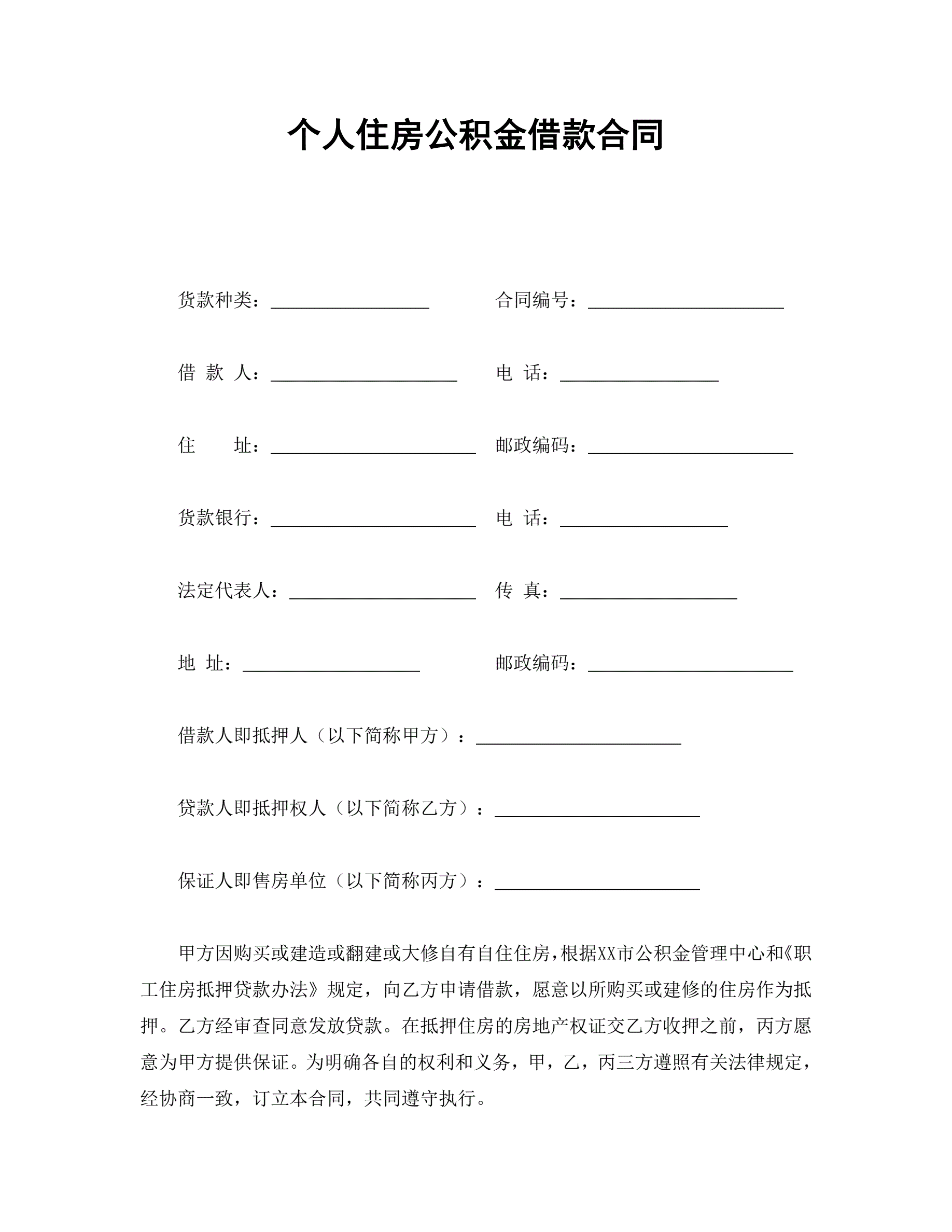 个人住房公积金借款合同