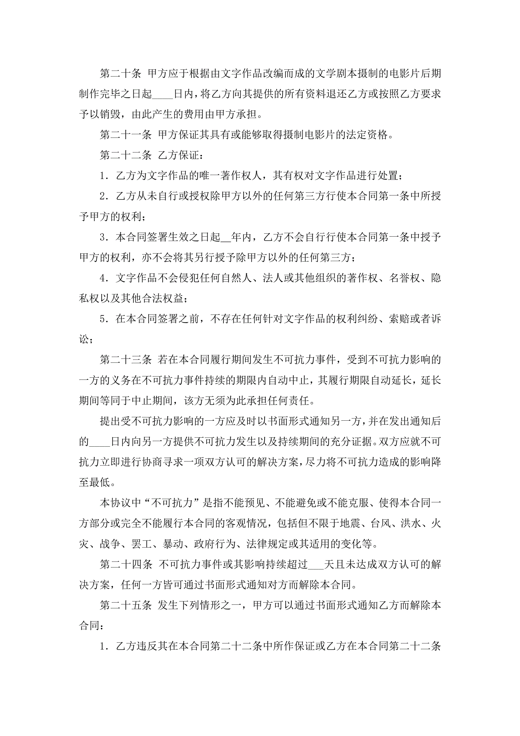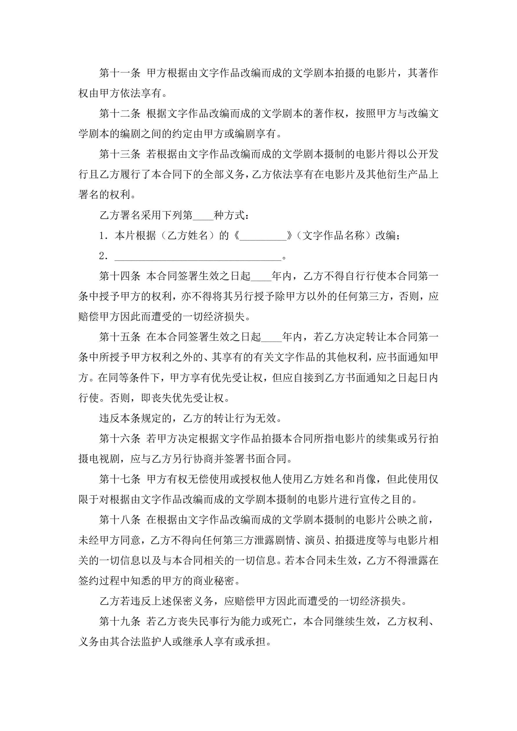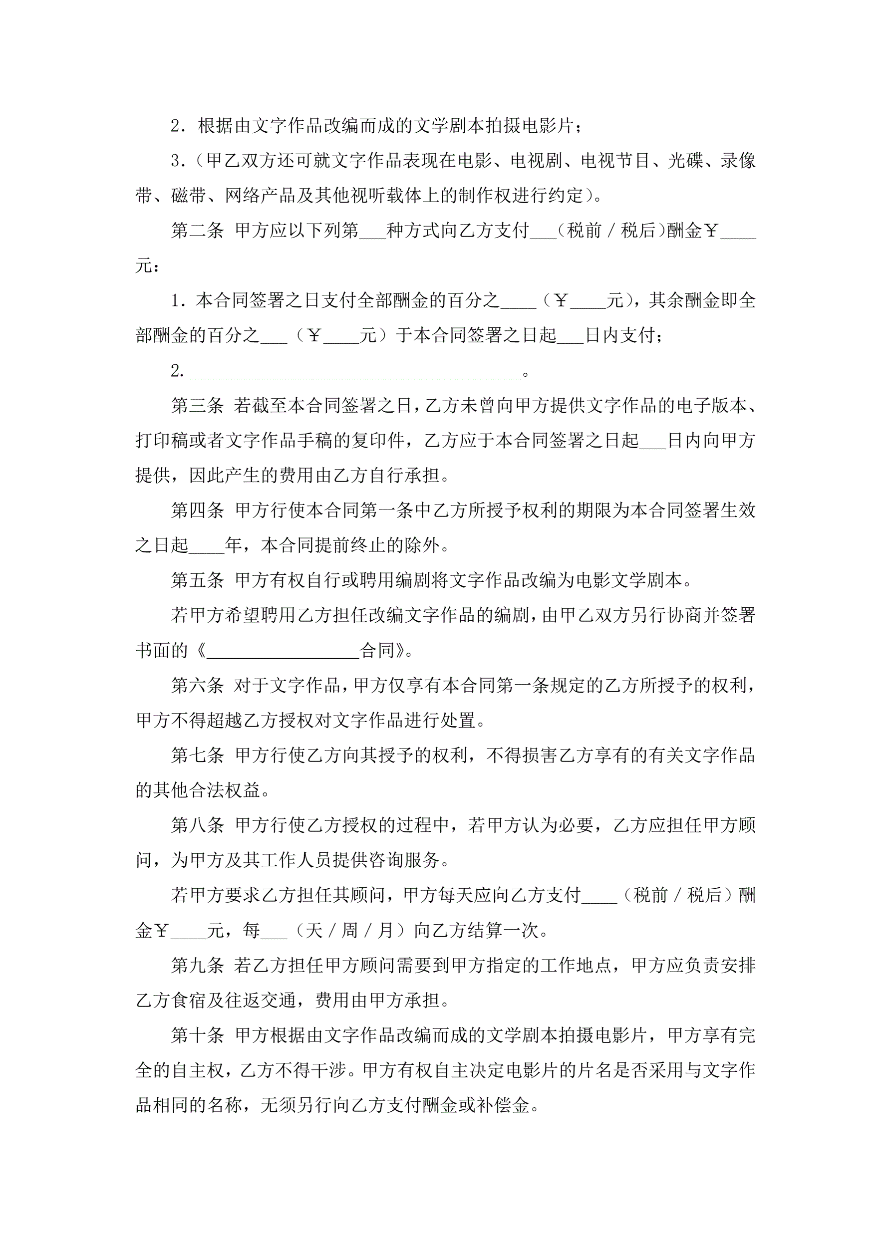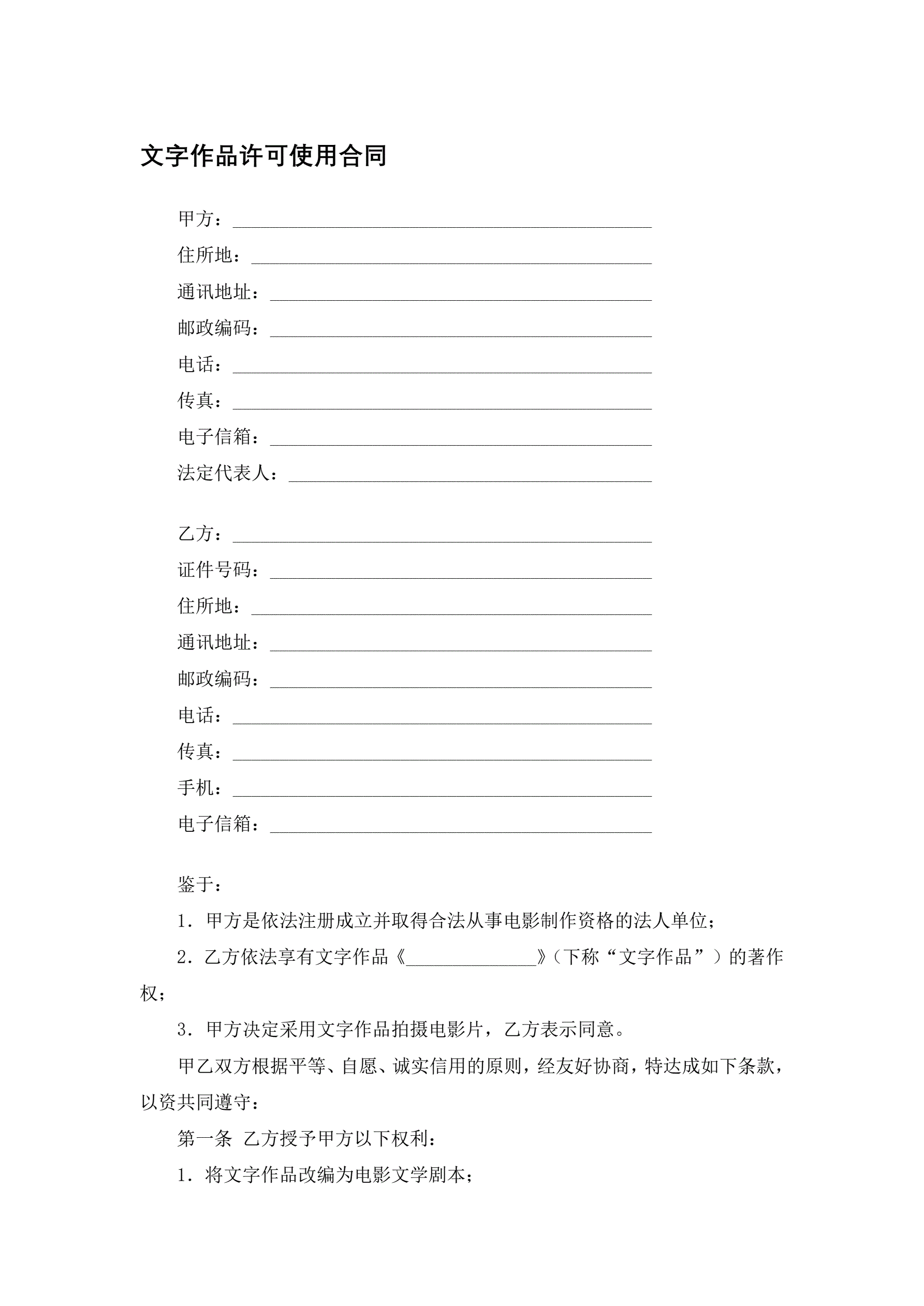 >文字作品许可使用合同
