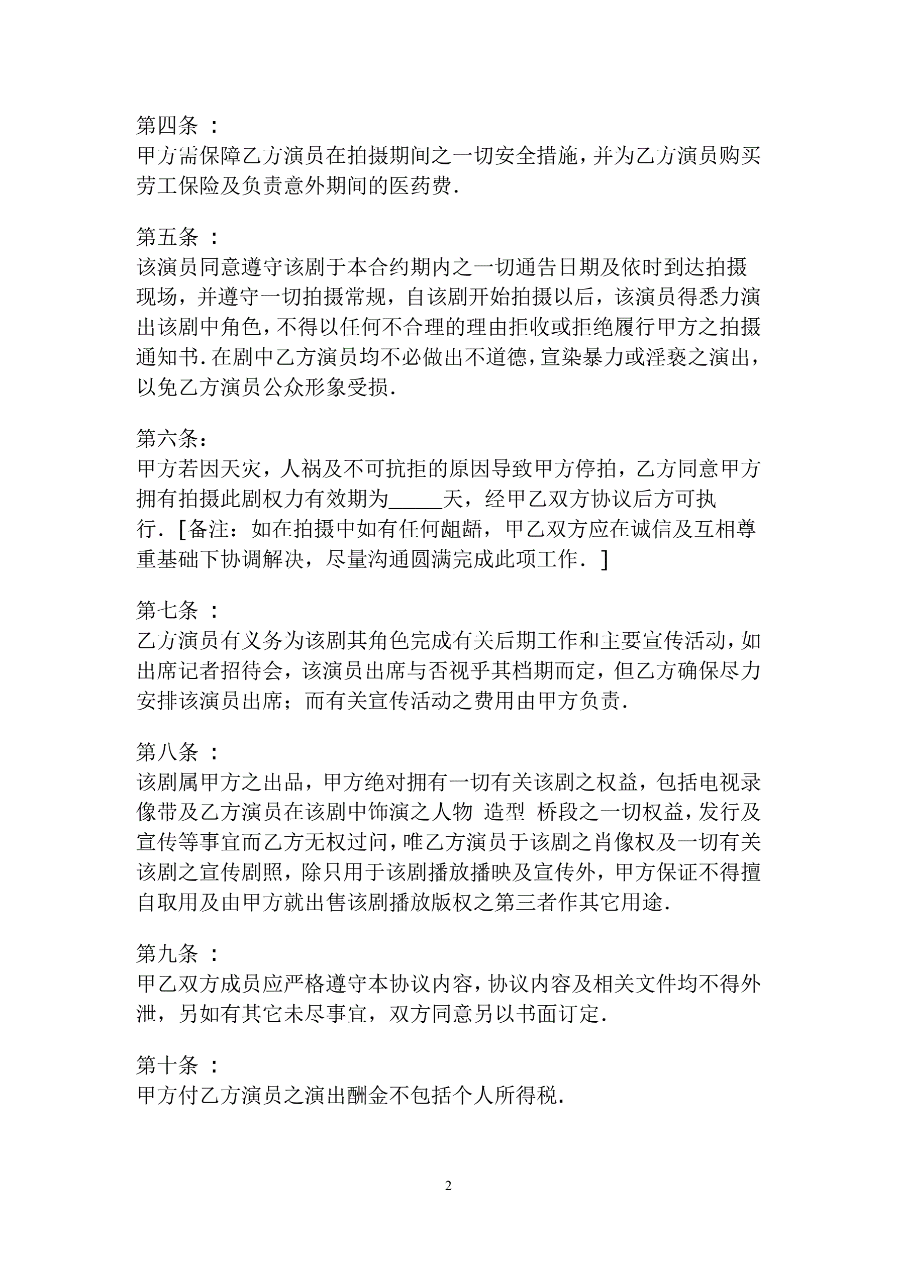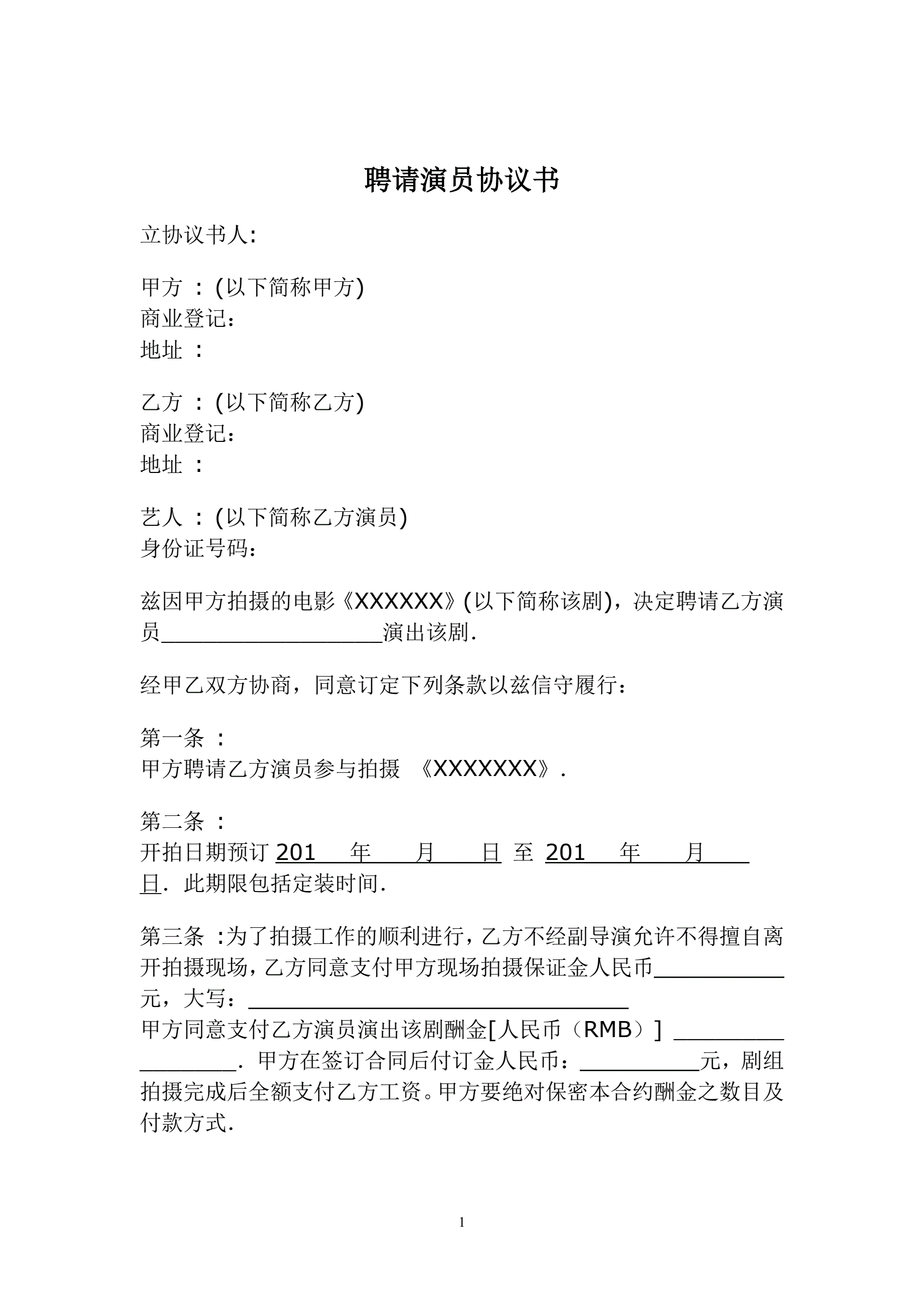 >聘请艺人协议书