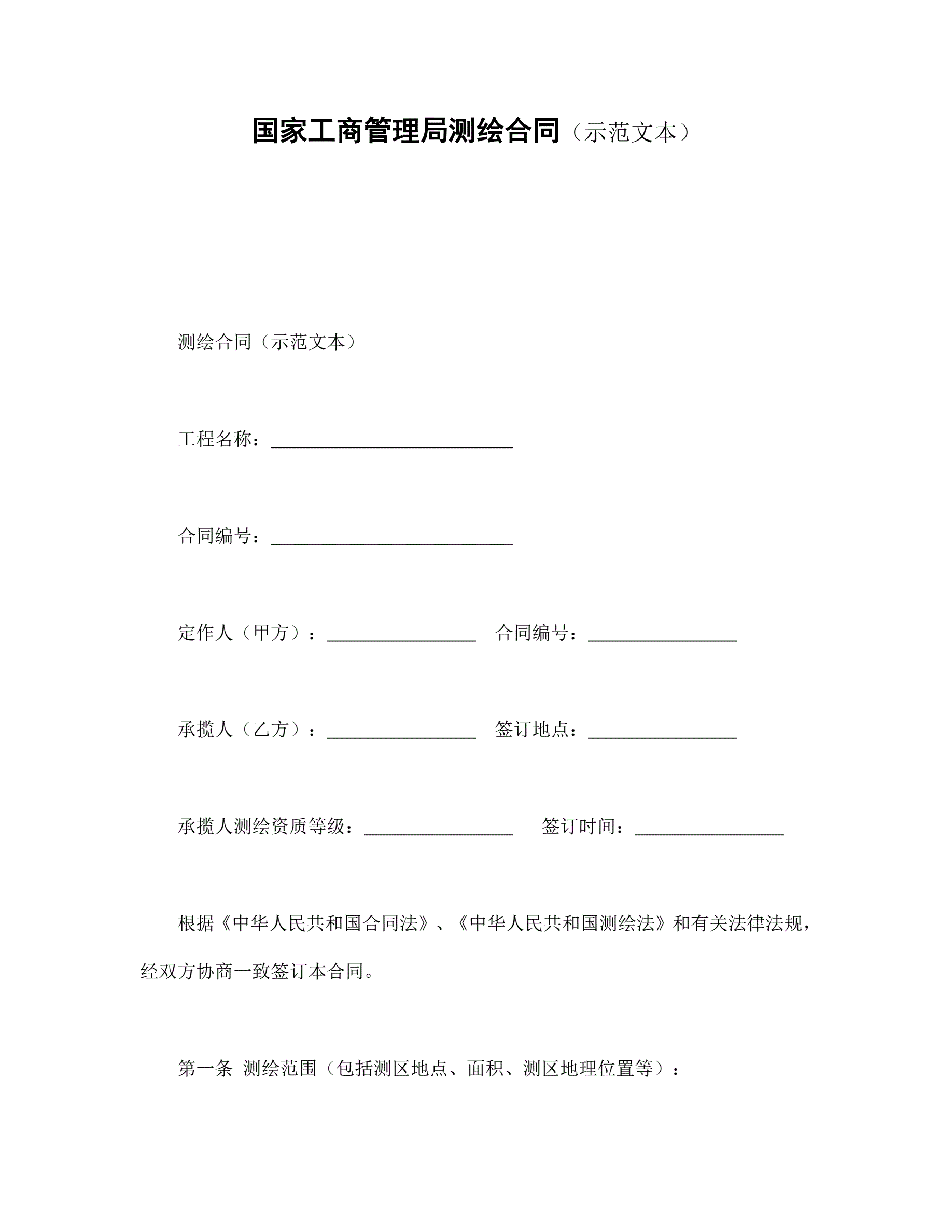 国家工商管理局测绘合同(示范文本)