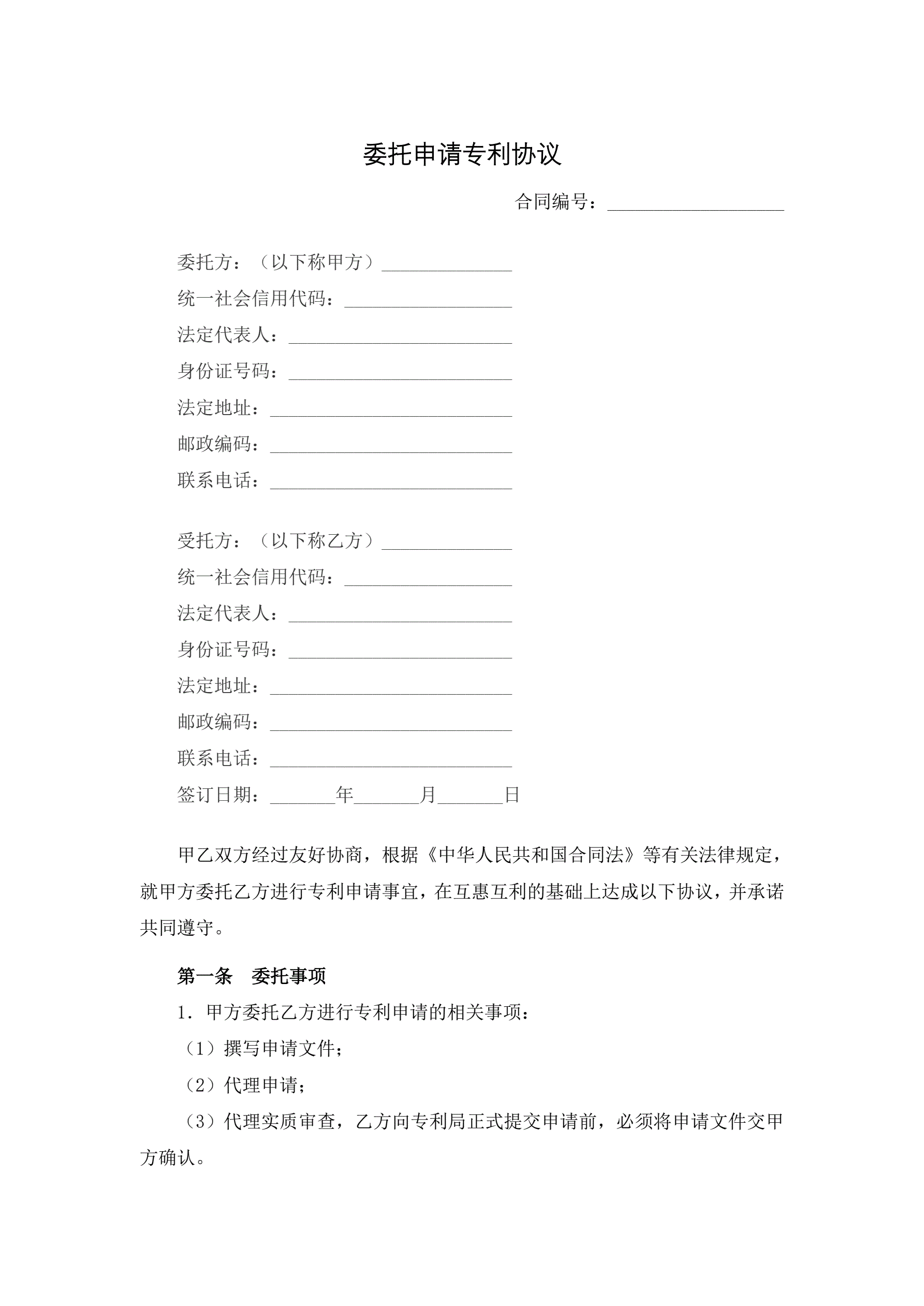 委托申请专利协议