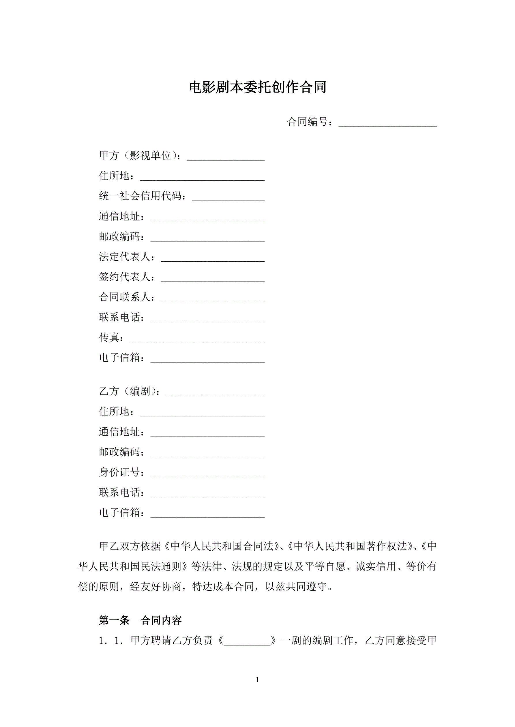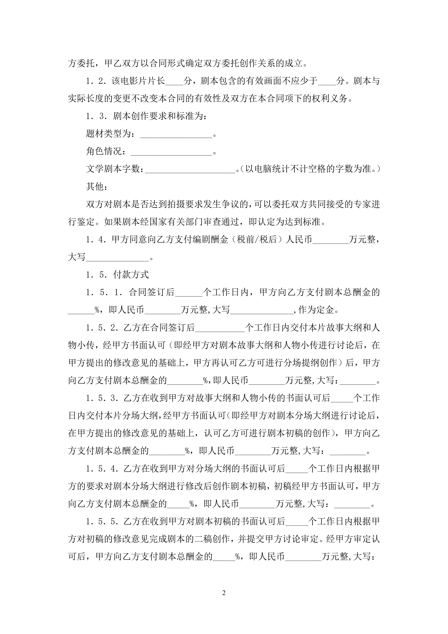 电影剧本委托创作合同