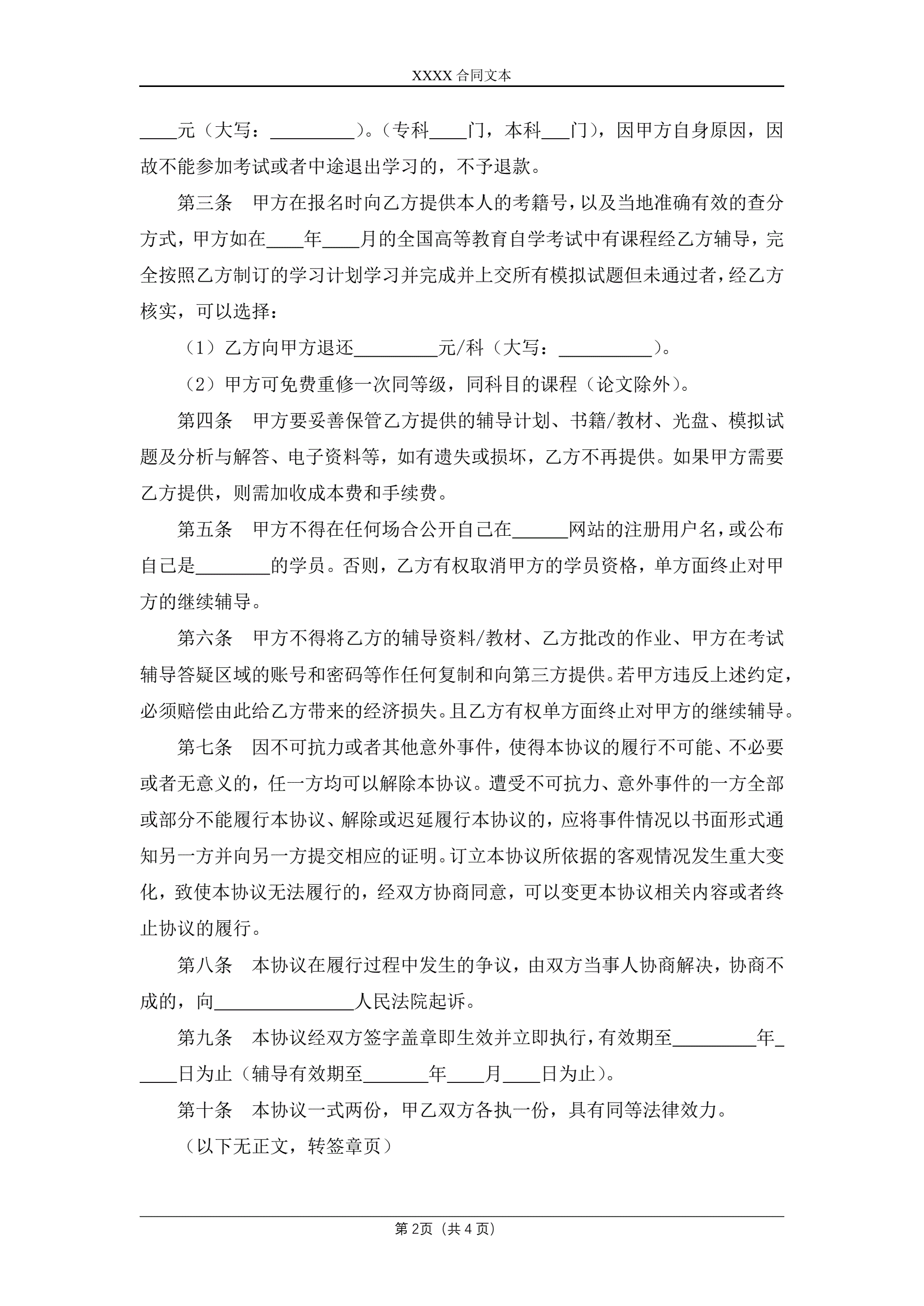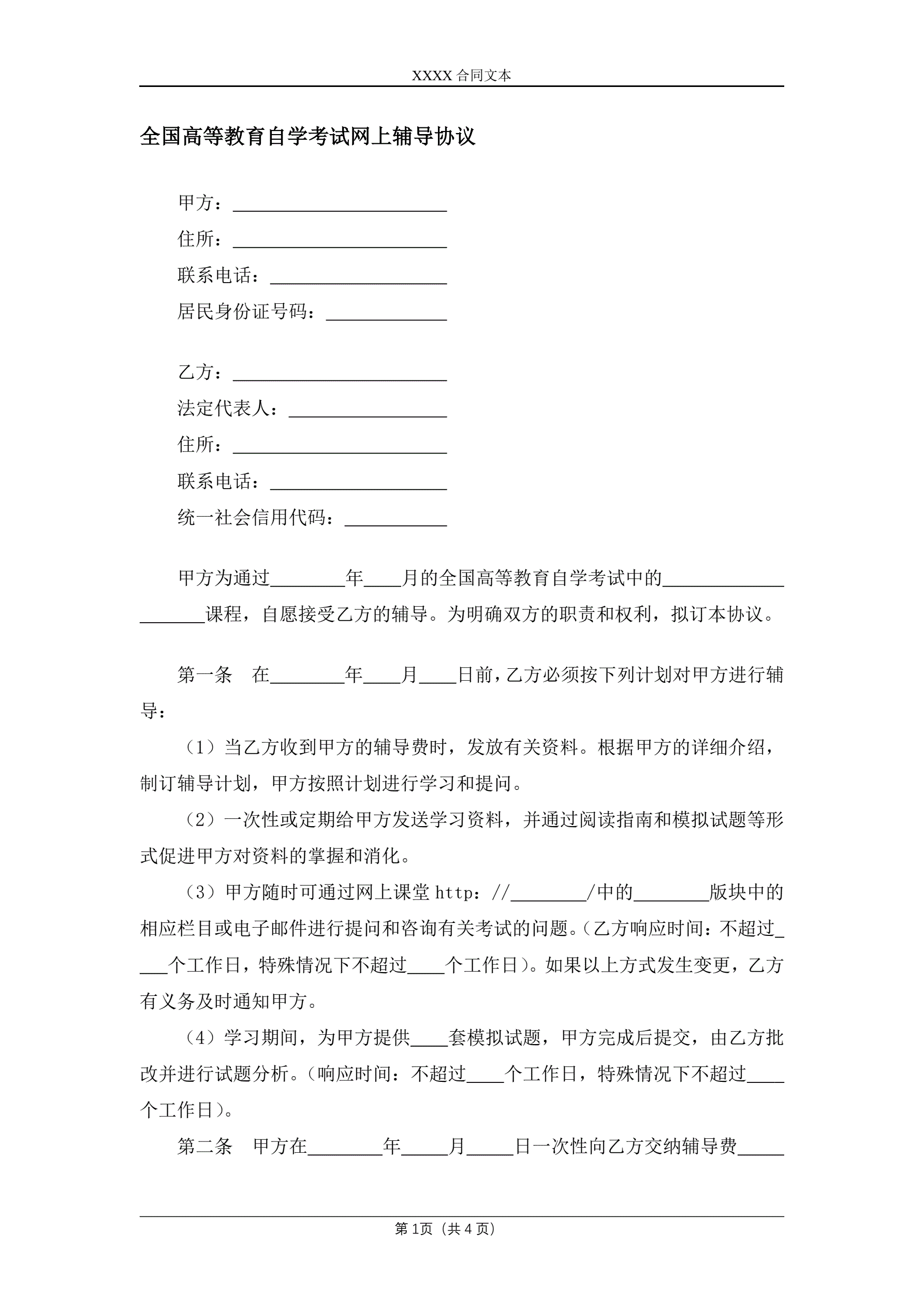 全国高等教育自学考试网上辅导协议