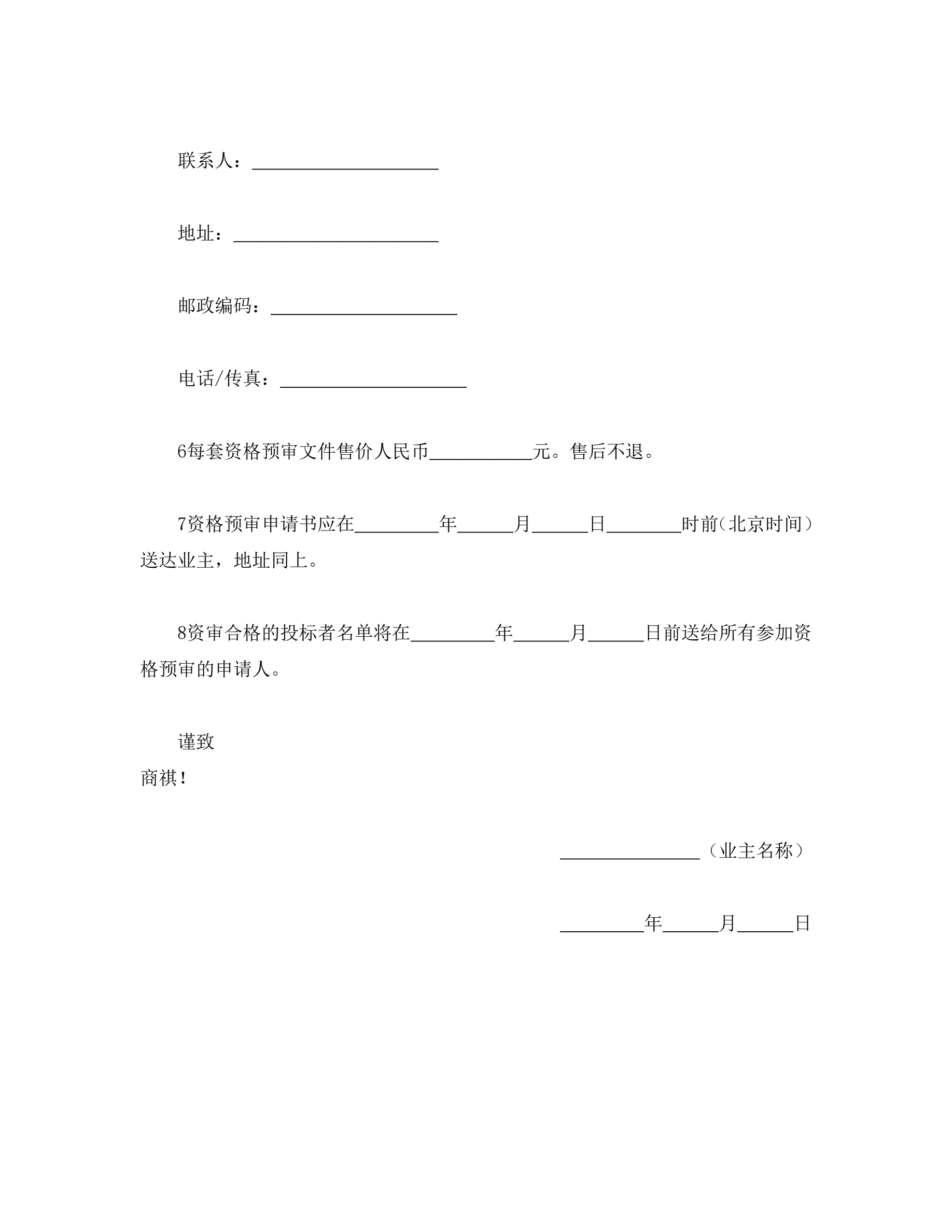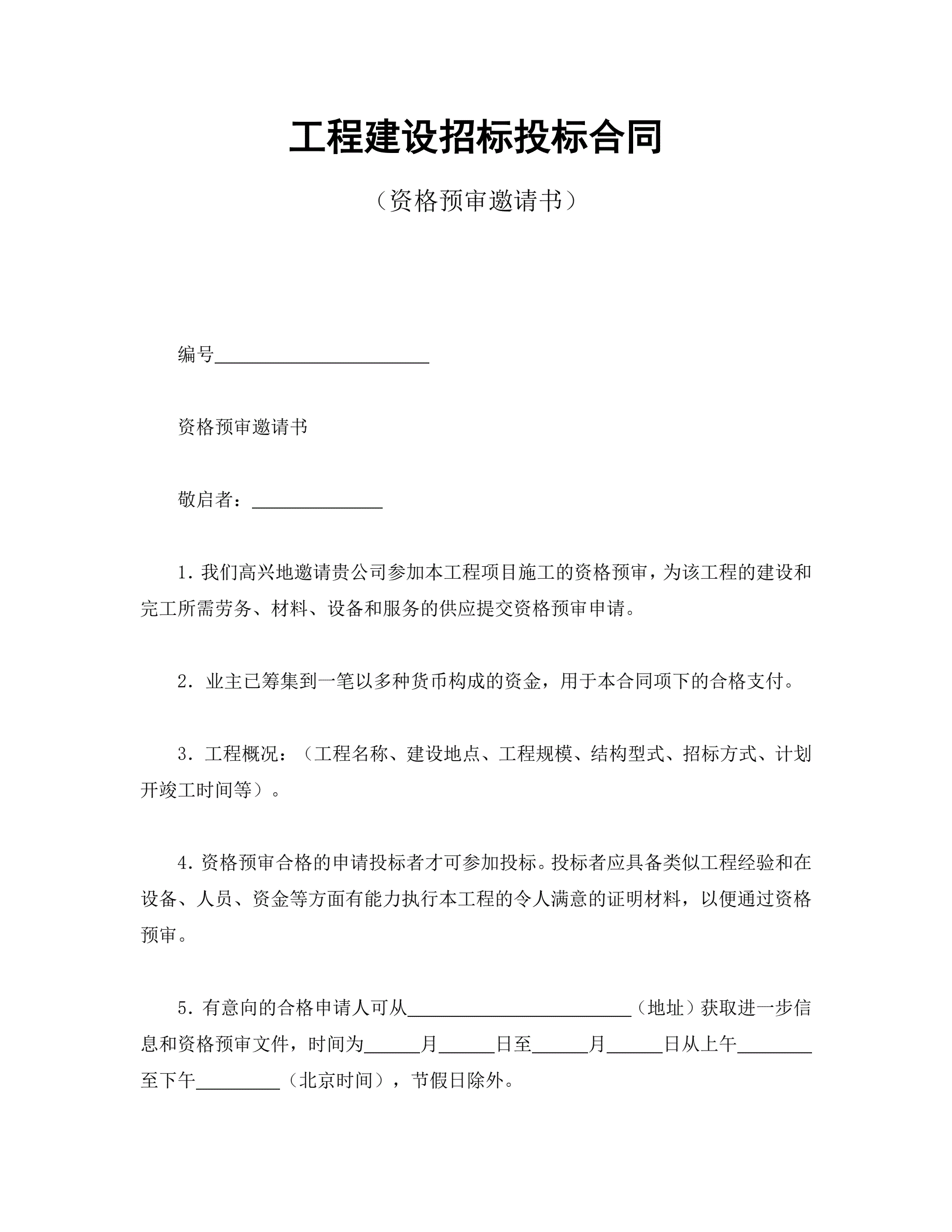 >工程建设招标投标合同(资格预审邀请书)