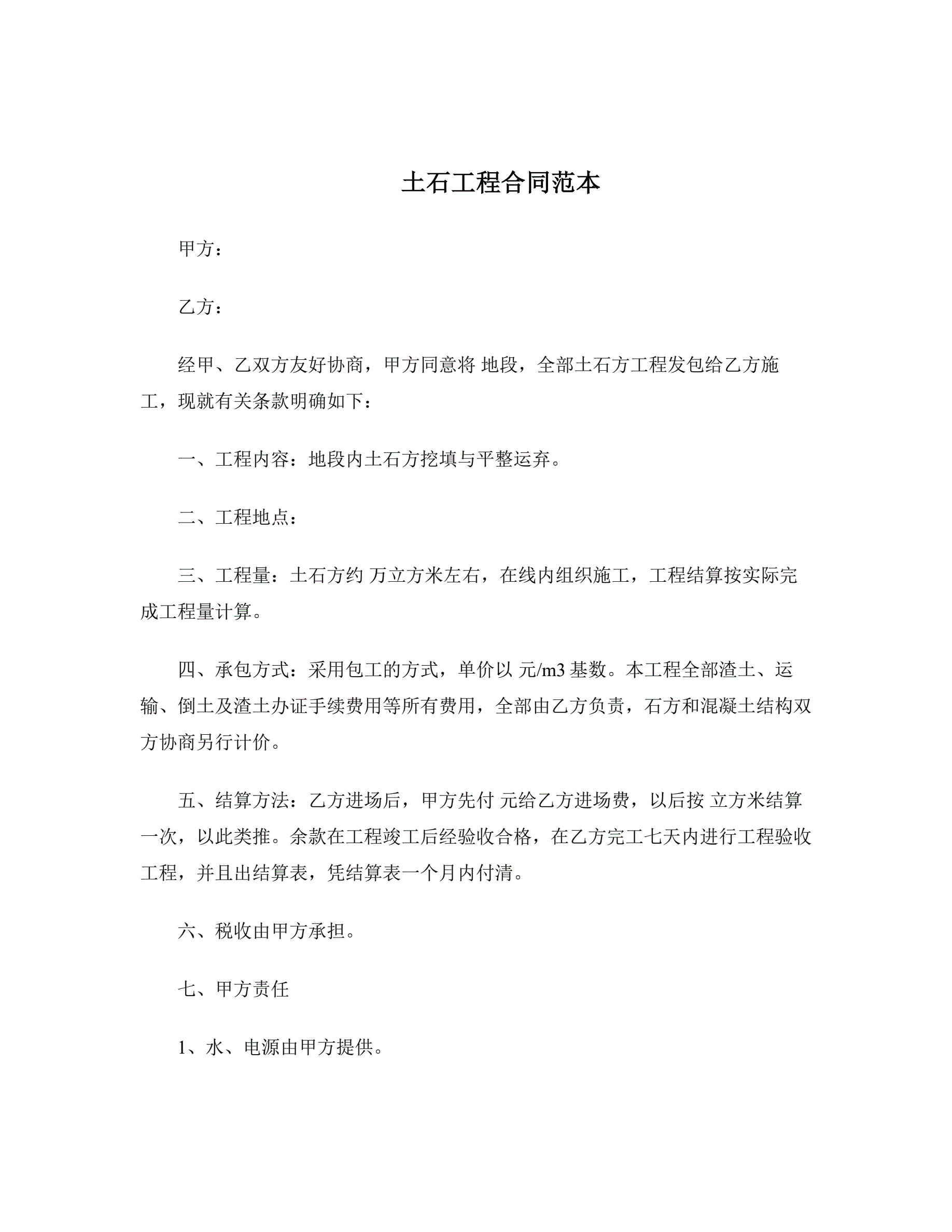 >土石工程合同范本