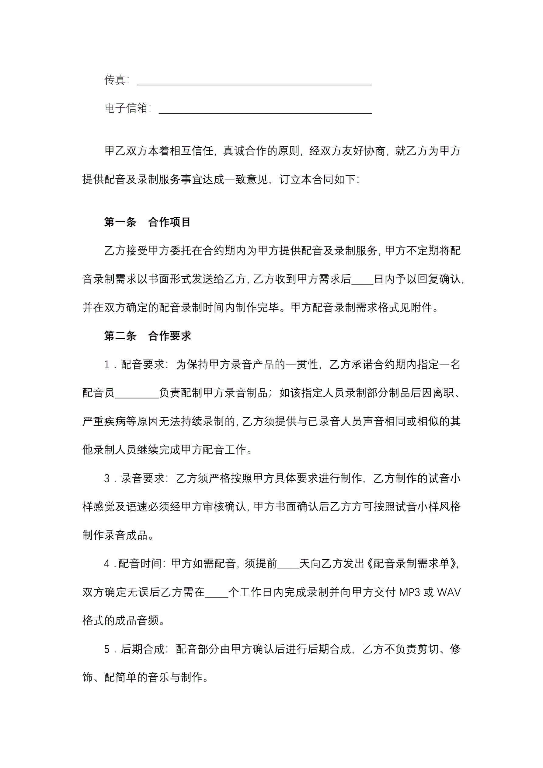 配音录制委托合同