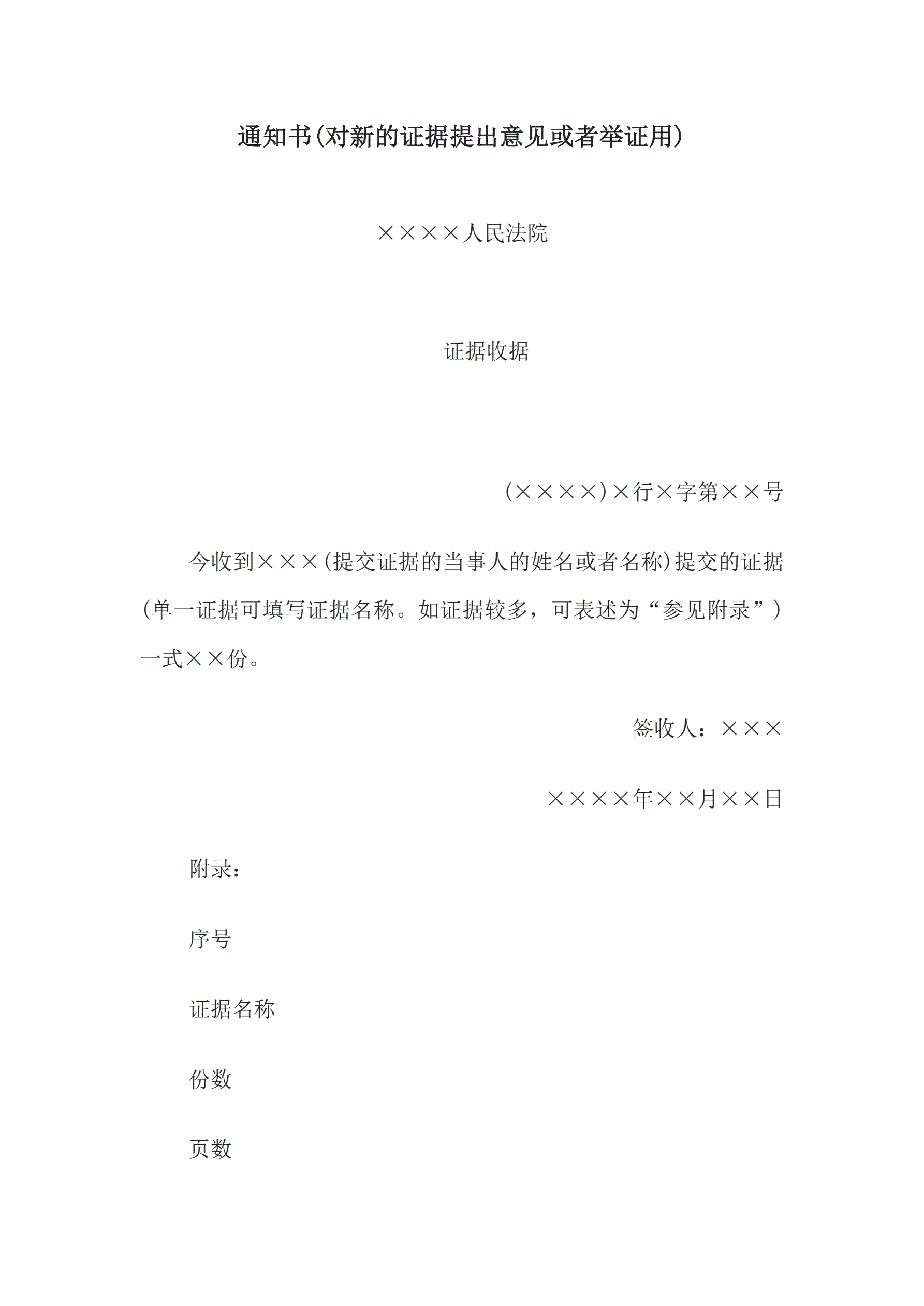 >通知书(对新的证据提出意见或者举证用)