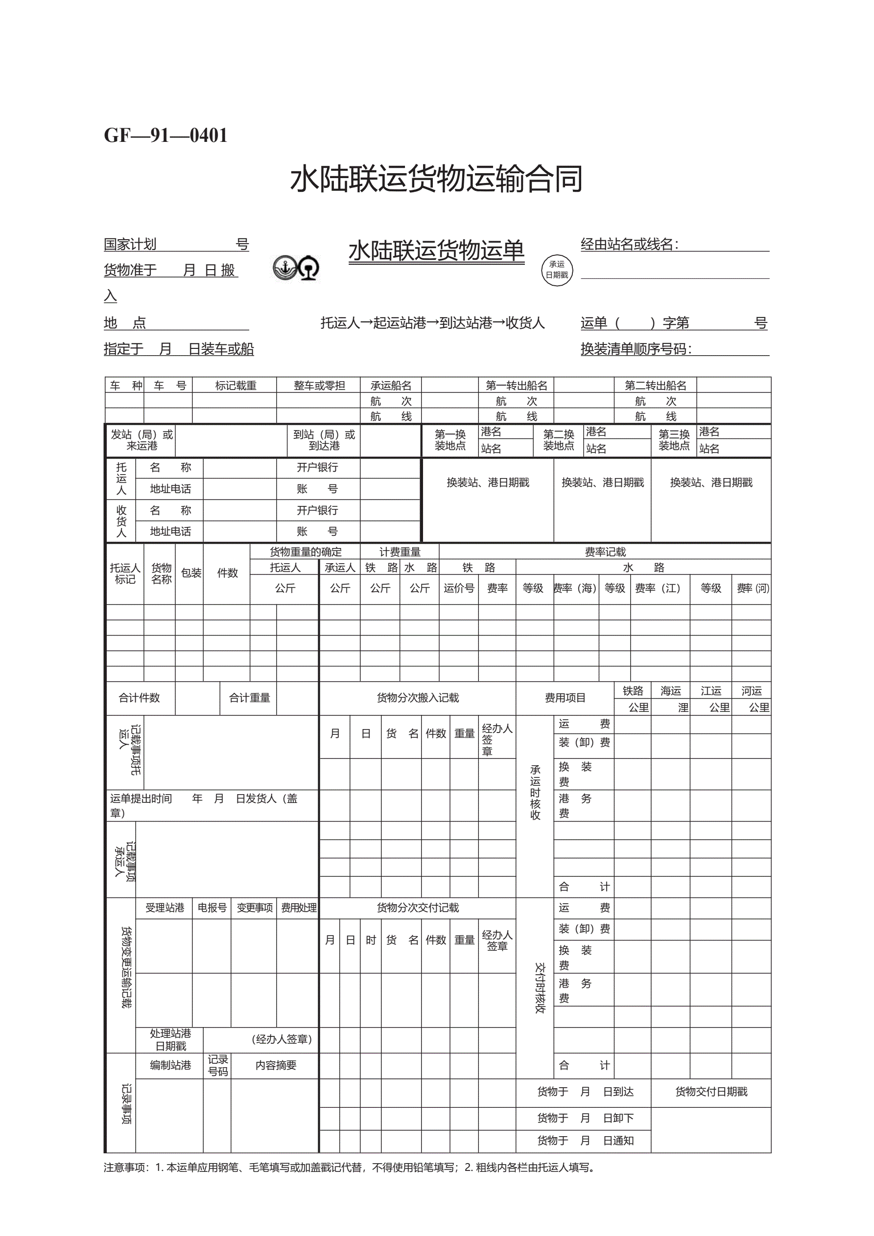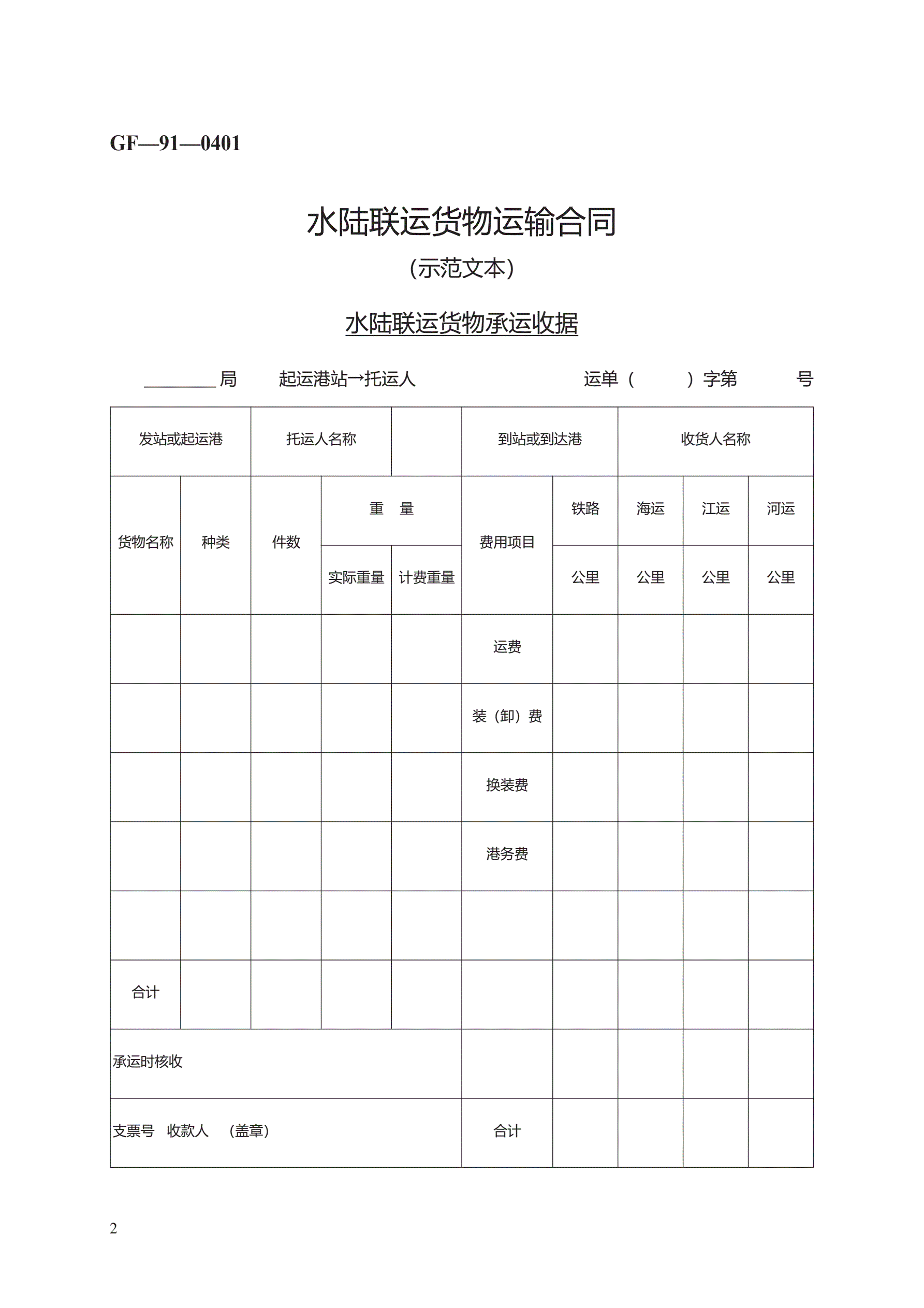 >水陆联运货物运输合同 GF—91—0401