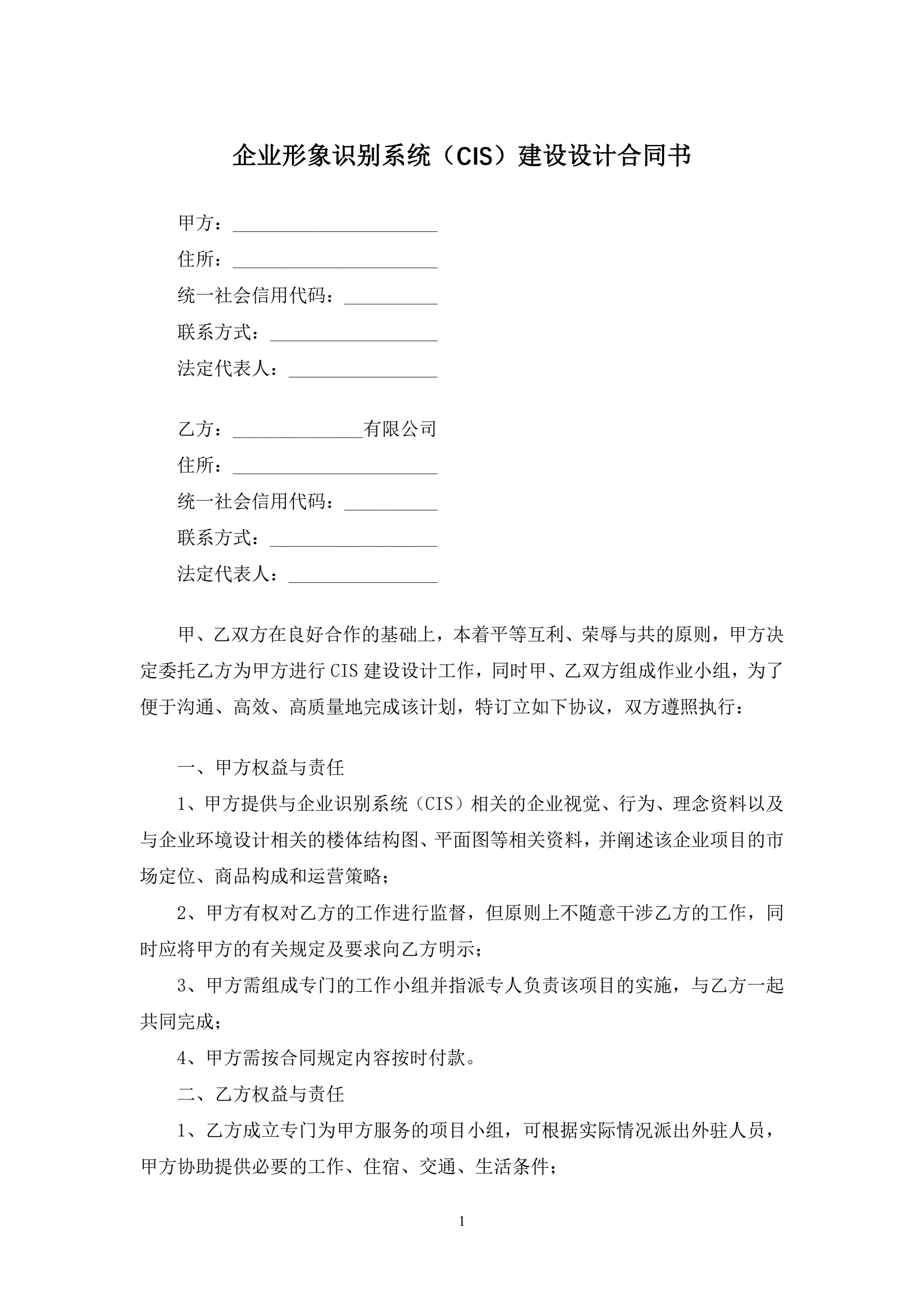 合同名称:企业形象识别系统(CIS)建设设计合同书