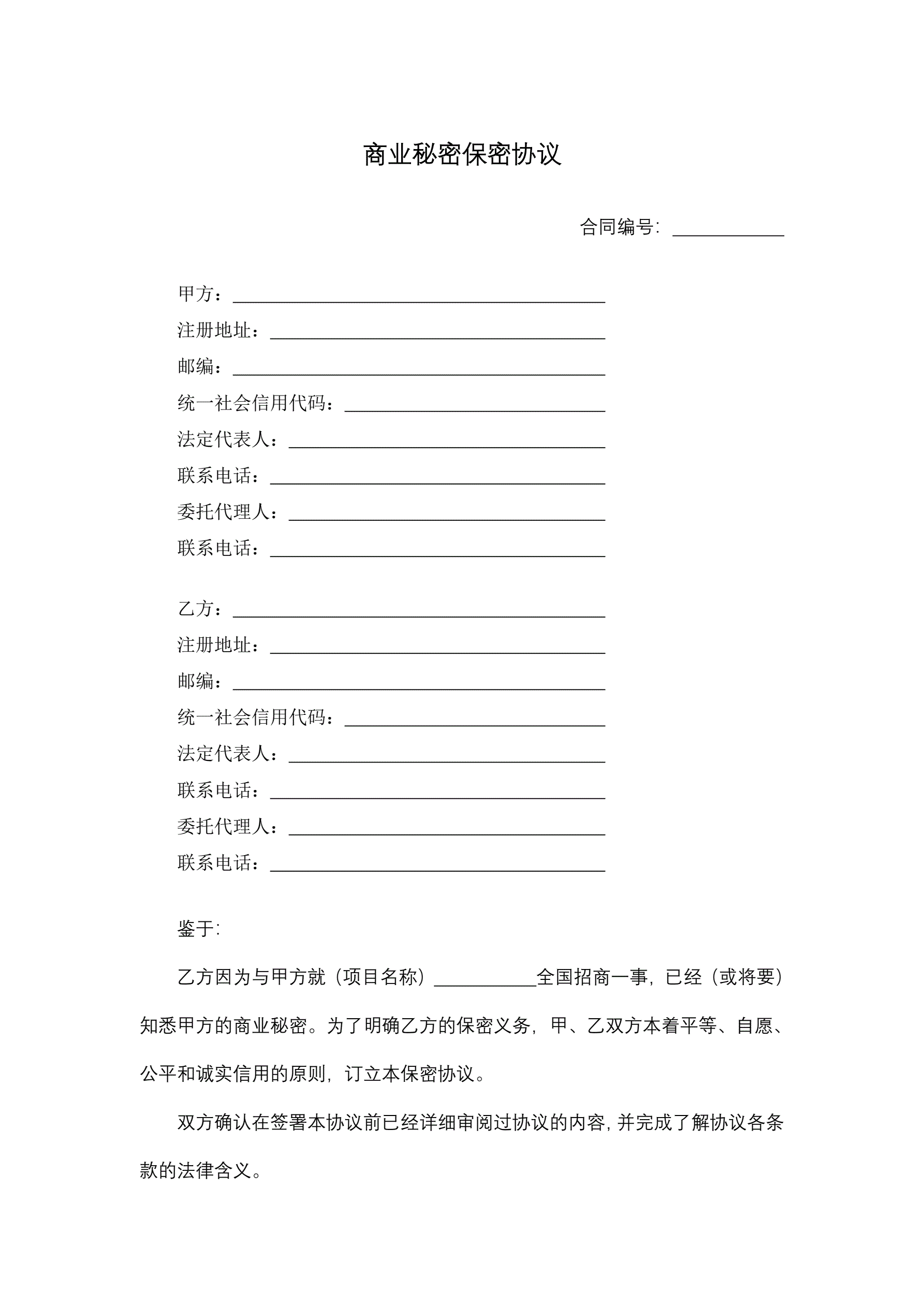 >商业秘密保密协议(招商合作)
