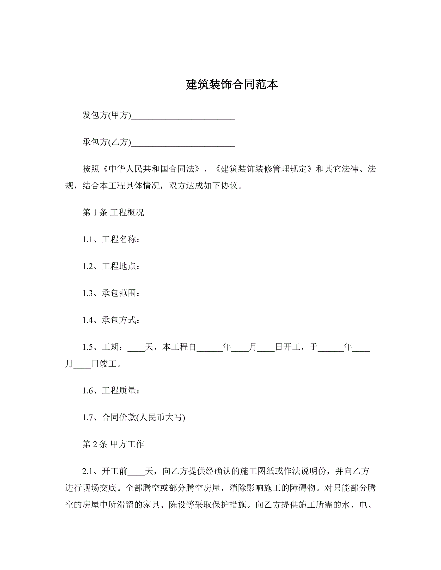 建筑装饰合同范本