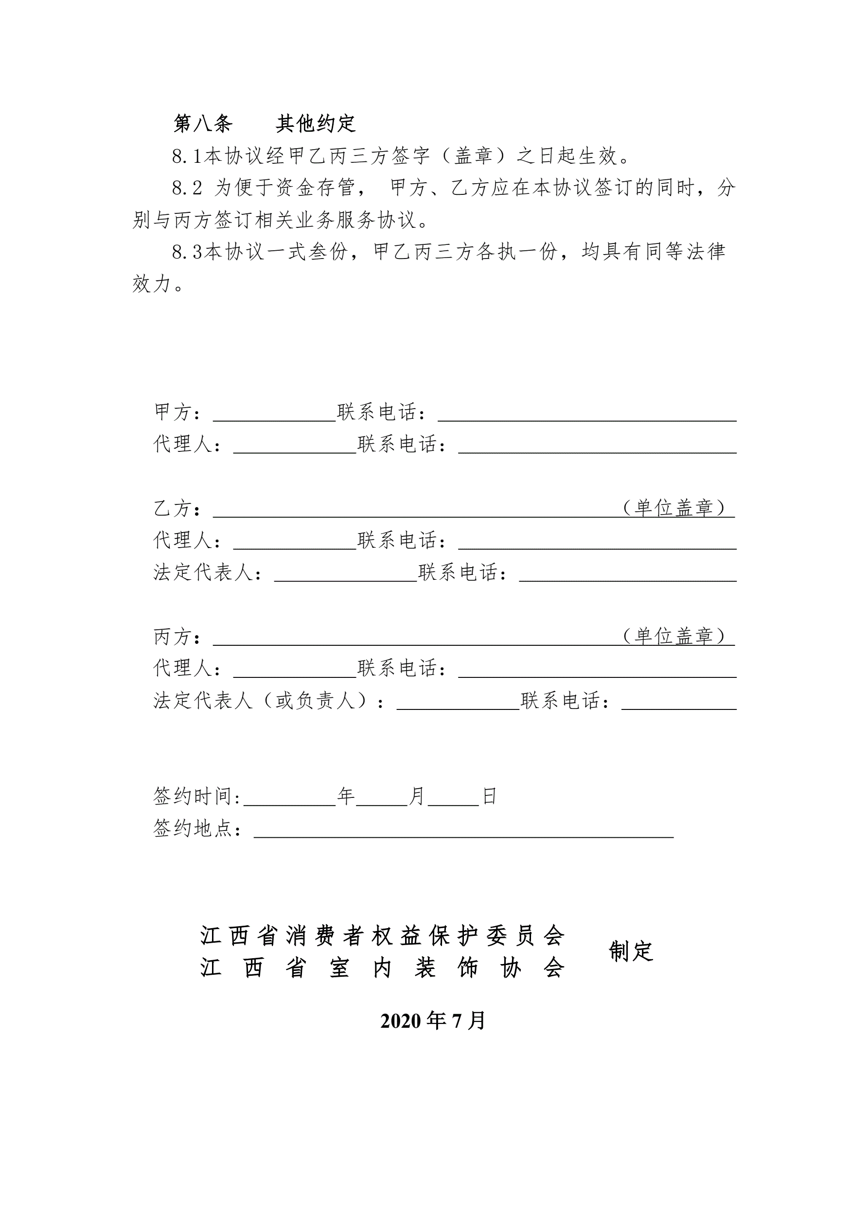 12江西省《家庭装饰装修资金存管协议》
