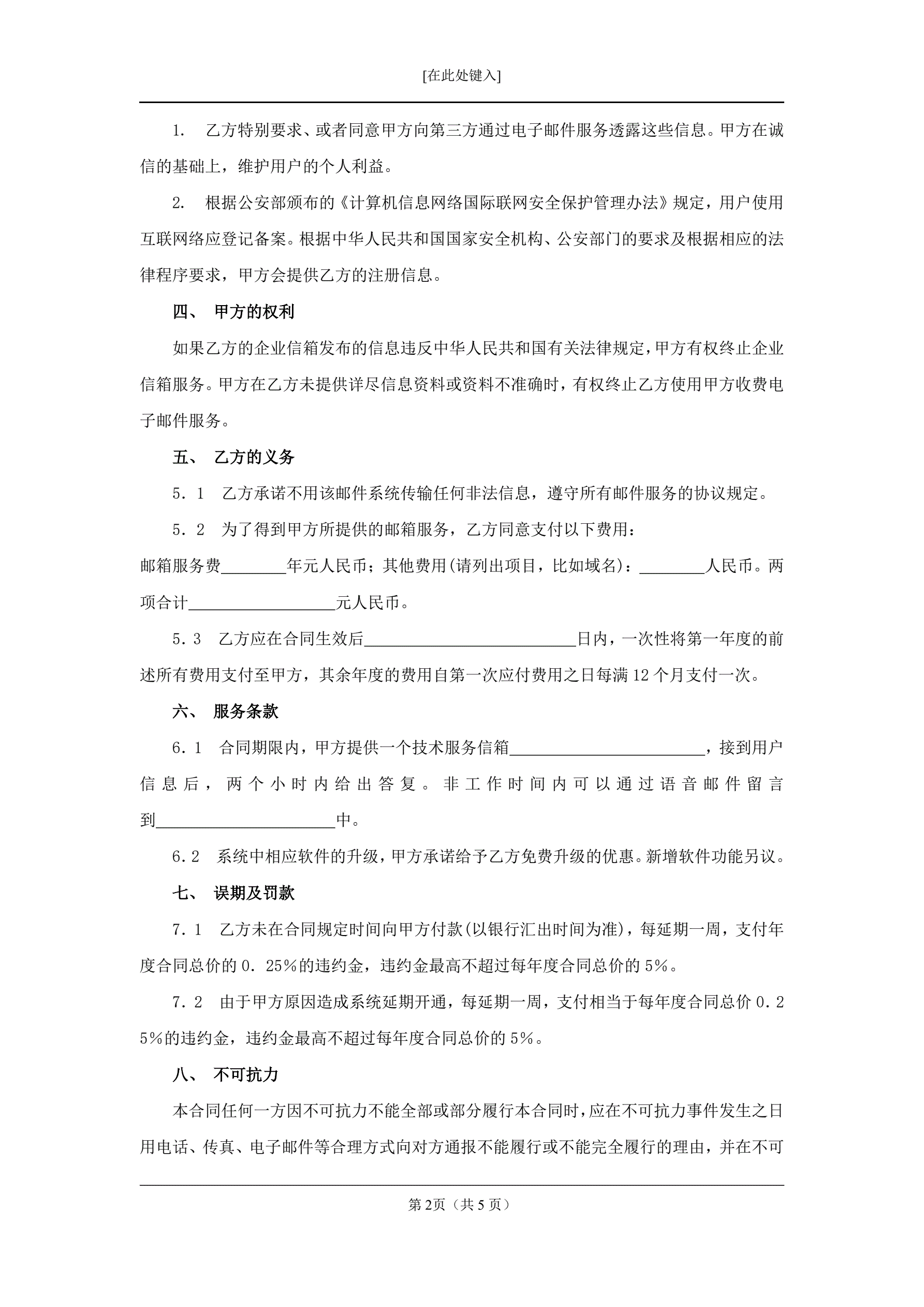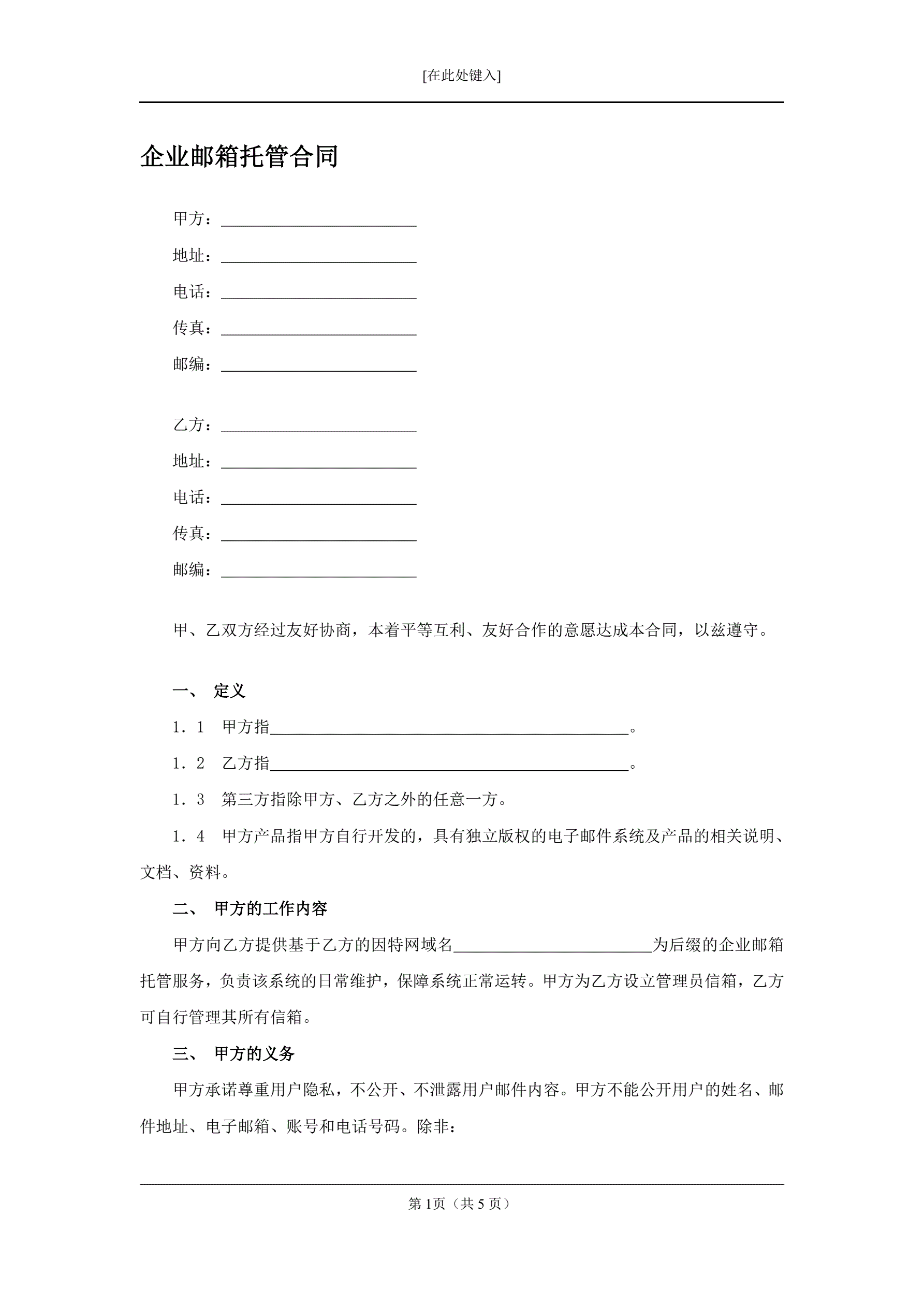>企业邮箱托管合同